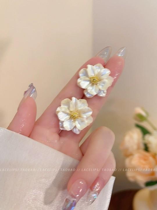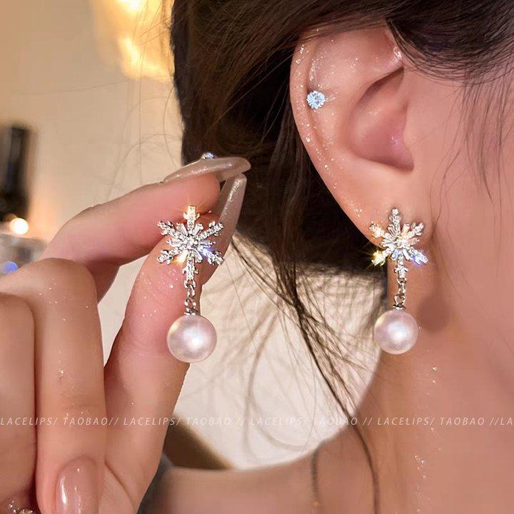 Elegantes pendientes de perlas para mujer 2025, nuevos pendientes de flores de lujo ligeros de alta gama, diseño de nicho, pendientes Joker al por mayor