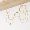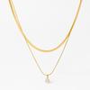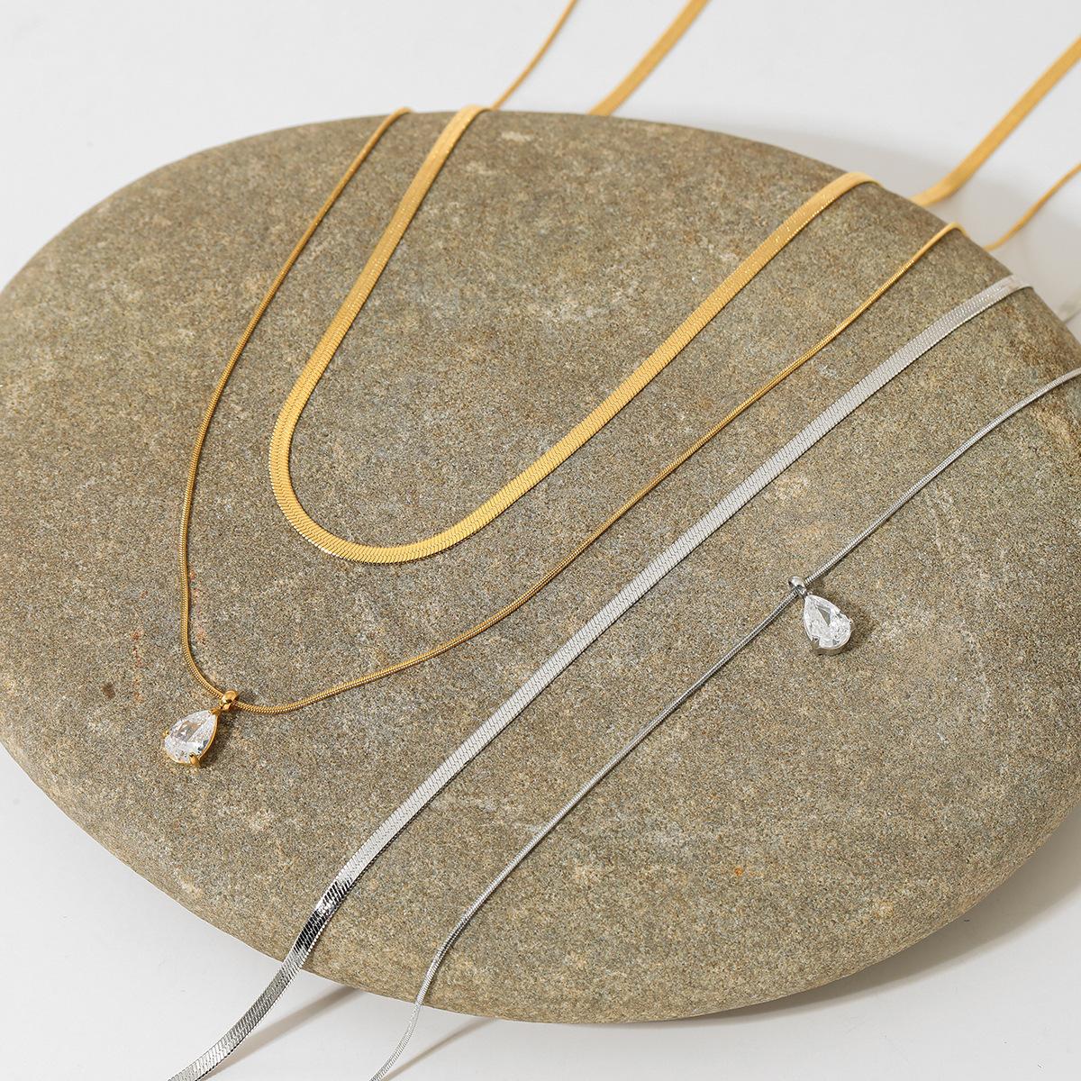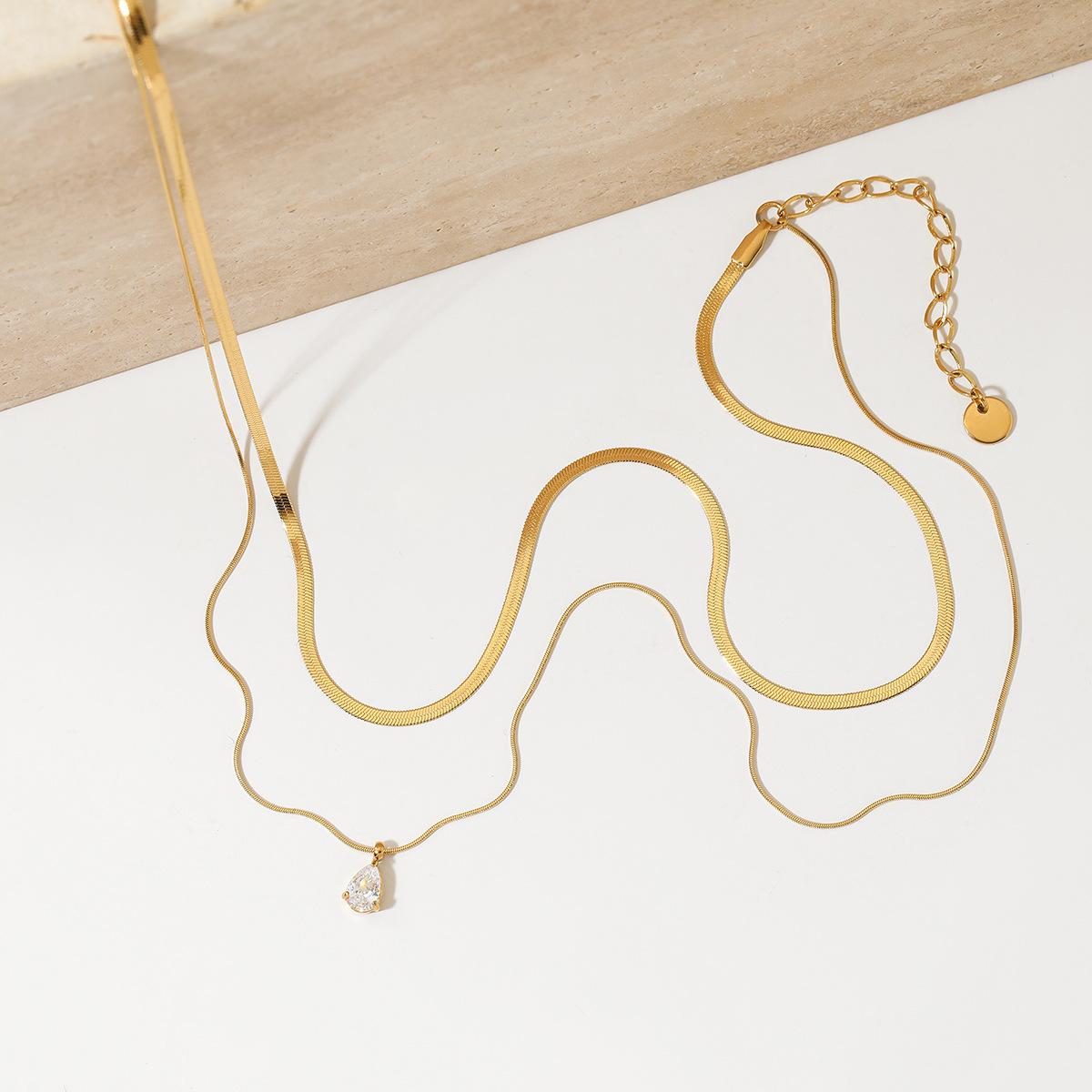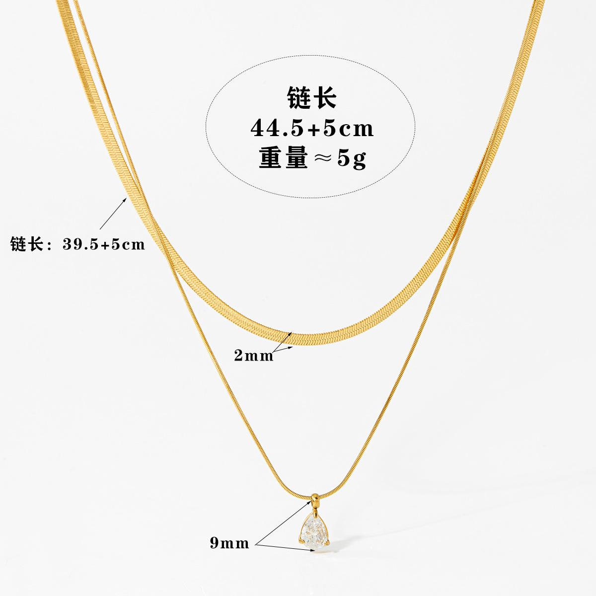 Nuevo collar transfronterizo de cadena de serpiente cuadrada de doble capa con colgante de circonita de gota de agua, diseño de acero inoxidable, temperamento, comodín, joyería para el día a día, lote
