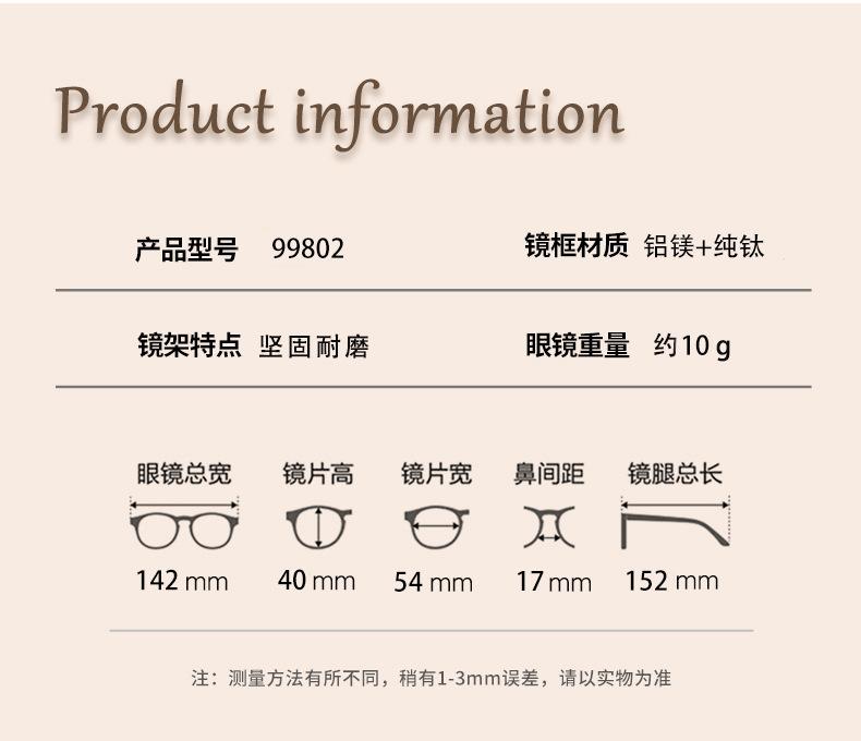 Nuevos Lentes Junda Danyang Montura de Titanio Puro Montura de Titanio Completa Cara Grande Lentes para Miopía con Luz Anti-Azul 99802