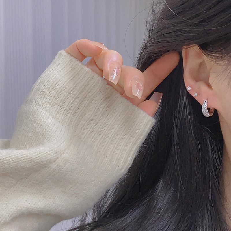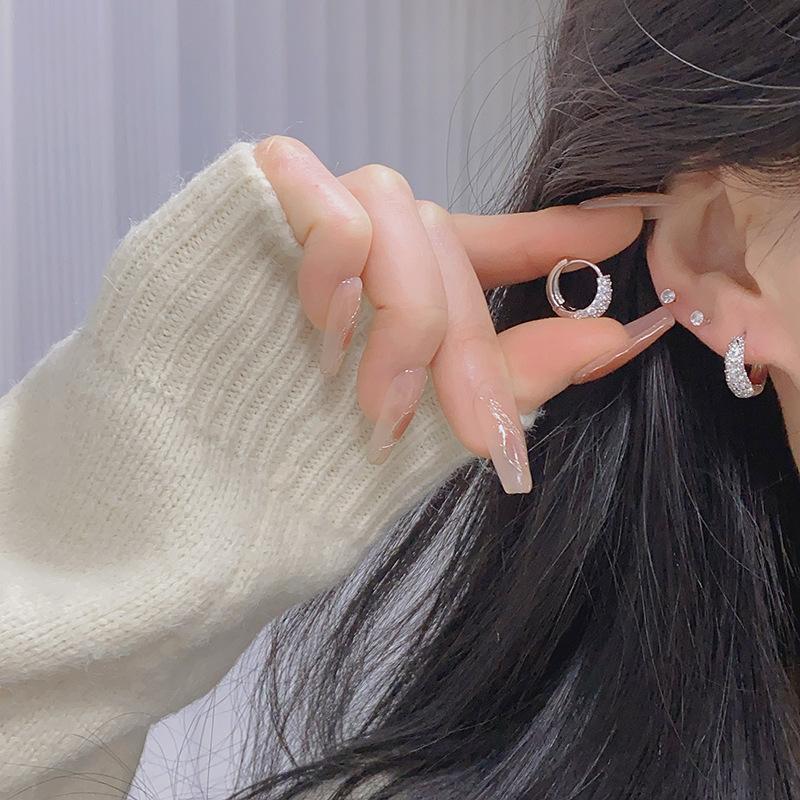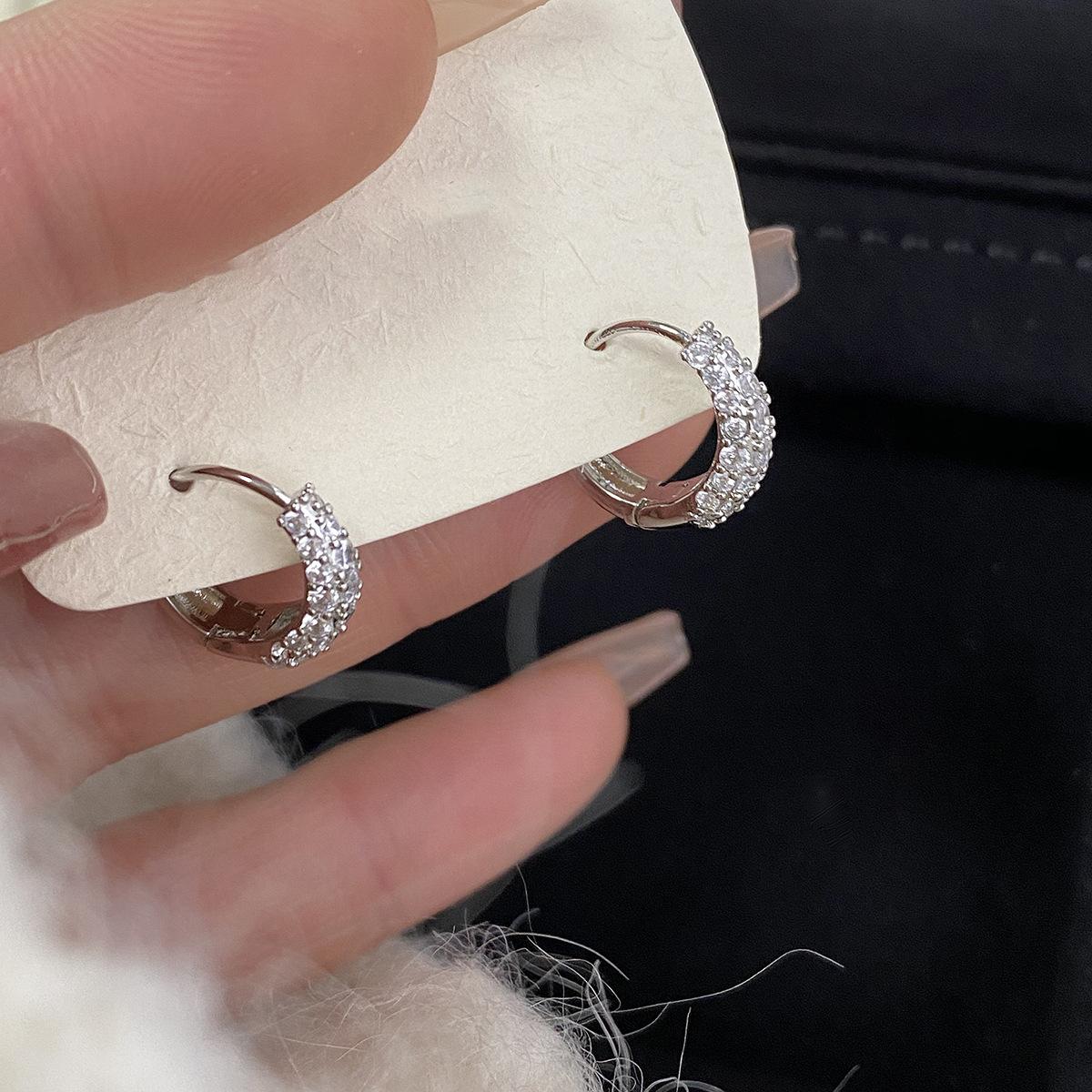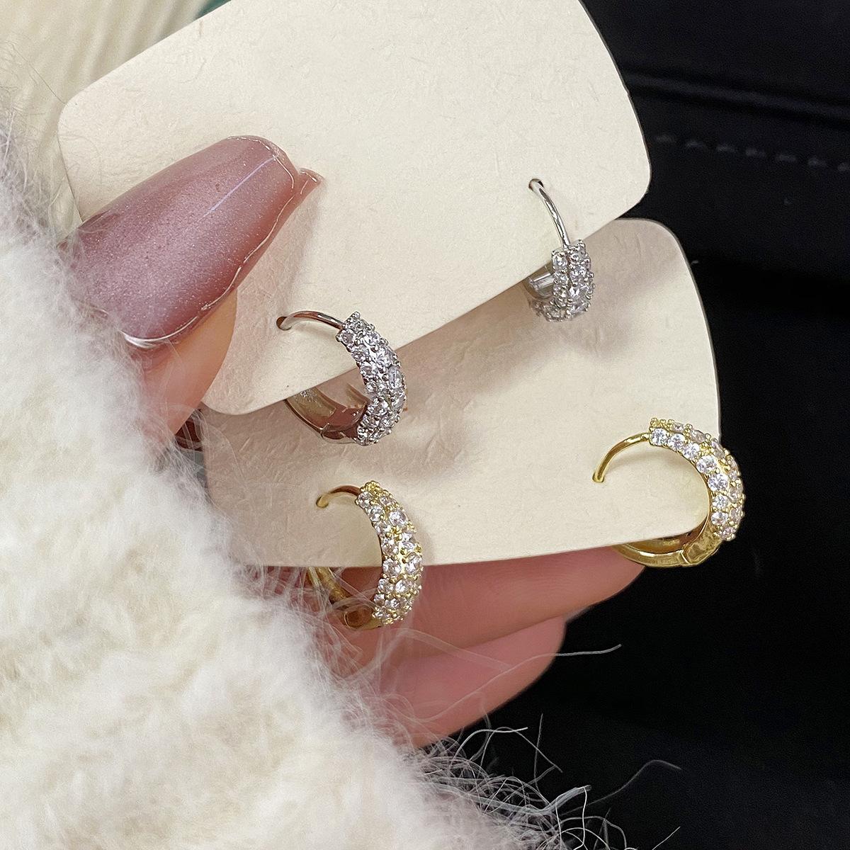 Pendientes redondos de circonita con costuras geométricas, hebilla de oreja, diseño de personalidad de nicho simple, estilo coreano, ligeros, elegantes y de lujo para mujer.