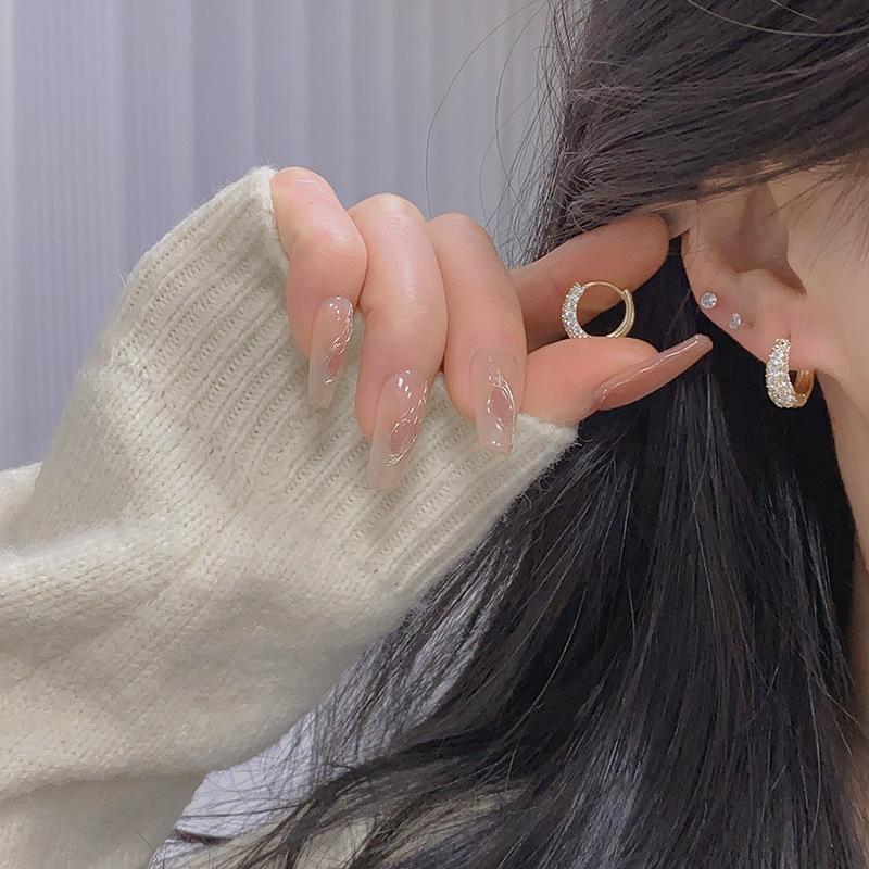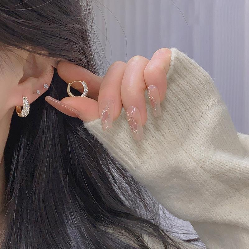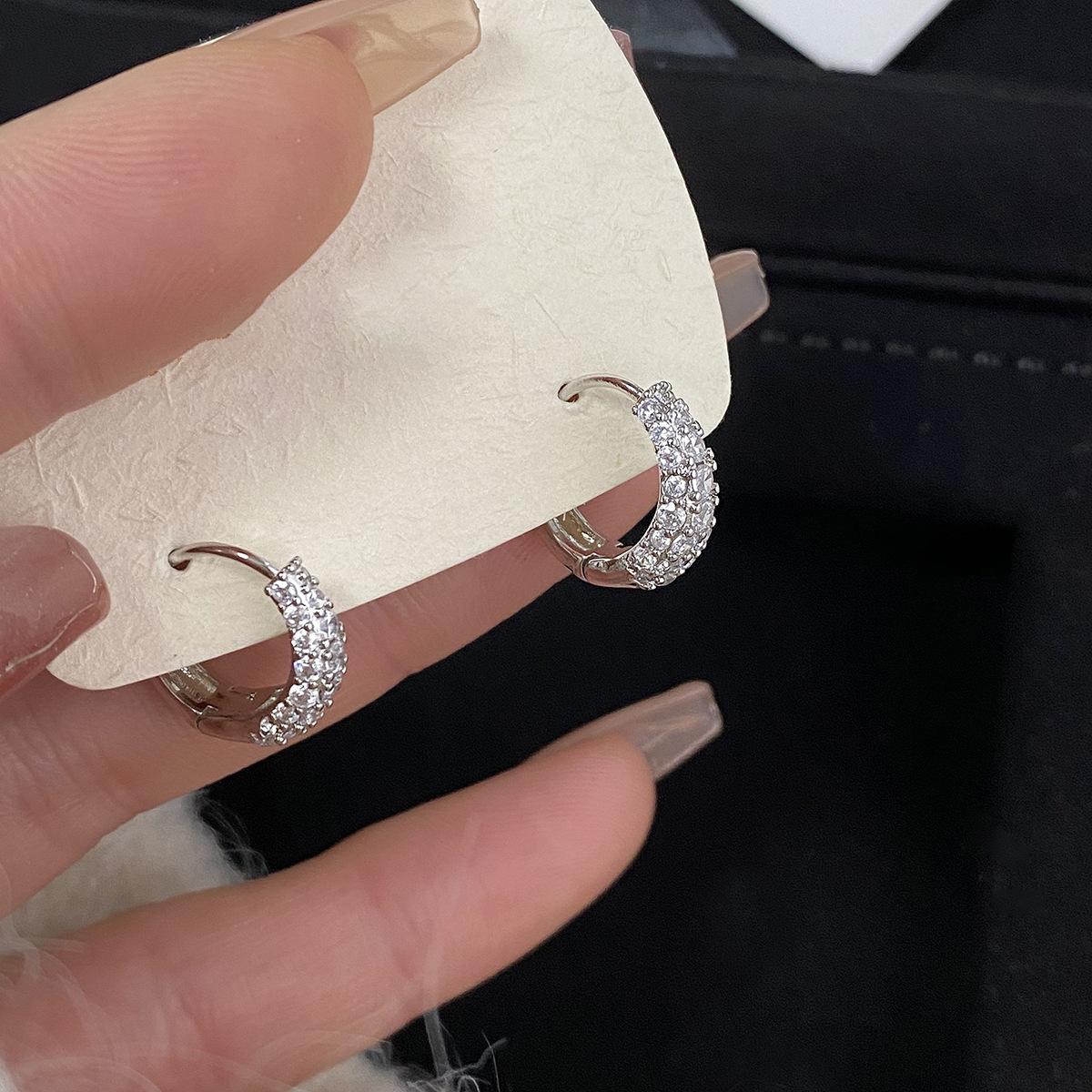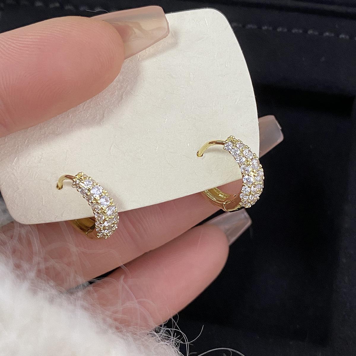 Pendientes redondos de circonita con costuras geométricas, hebilla de oreja, diseño de personalidad de nicho simple, estilo coreano, ligeros, elegantes y de lujo para mujer.