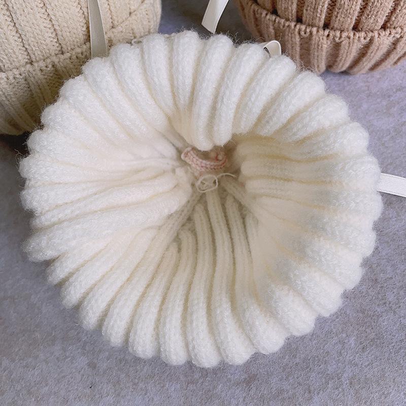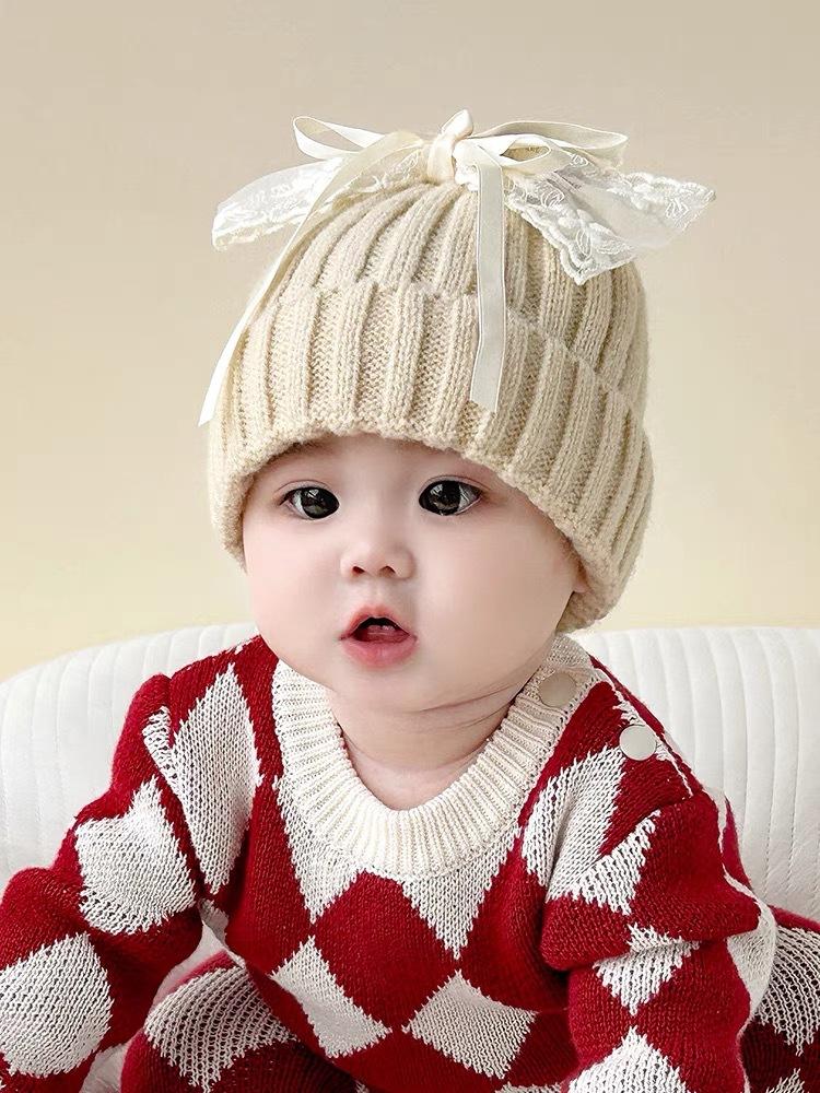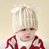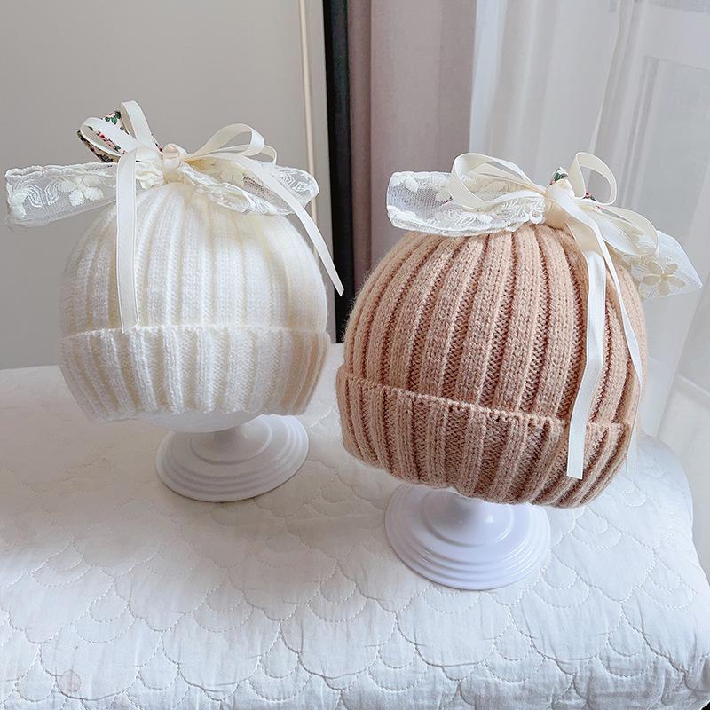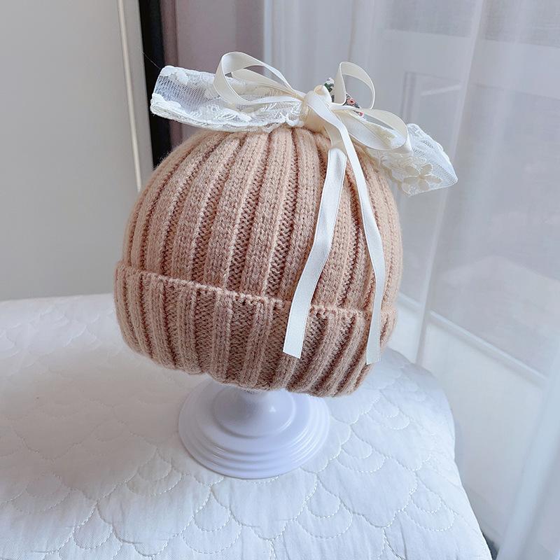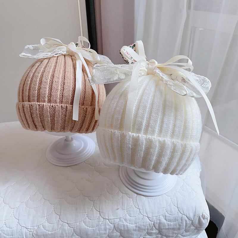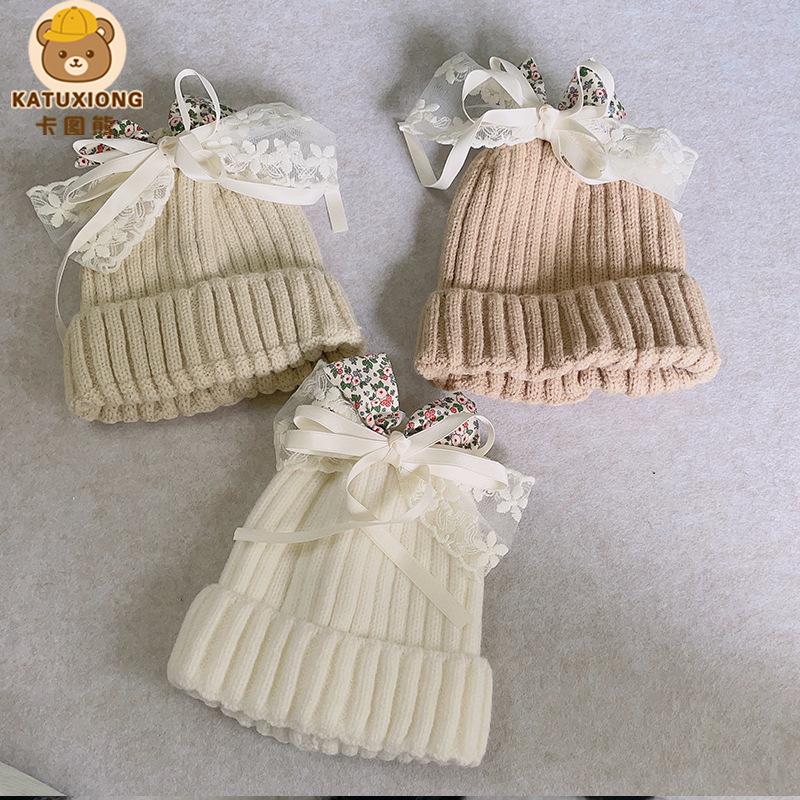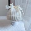 Gorro de lana de punto cálido para niñas, estilo coreano, con lazo, estilo extranjero, para otoño e invierno