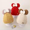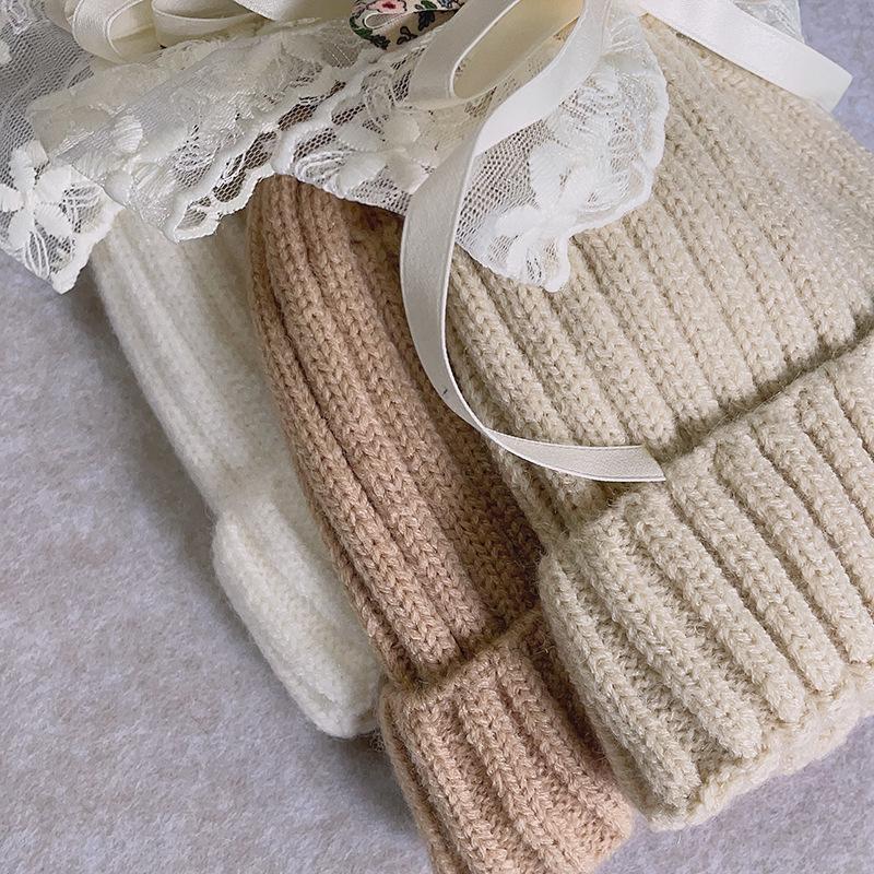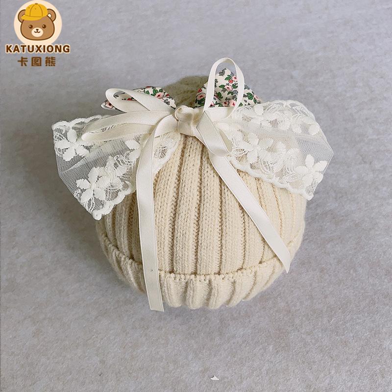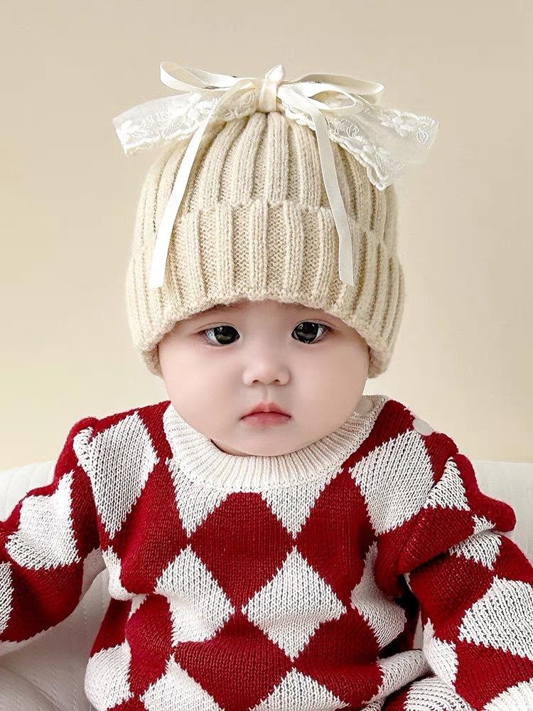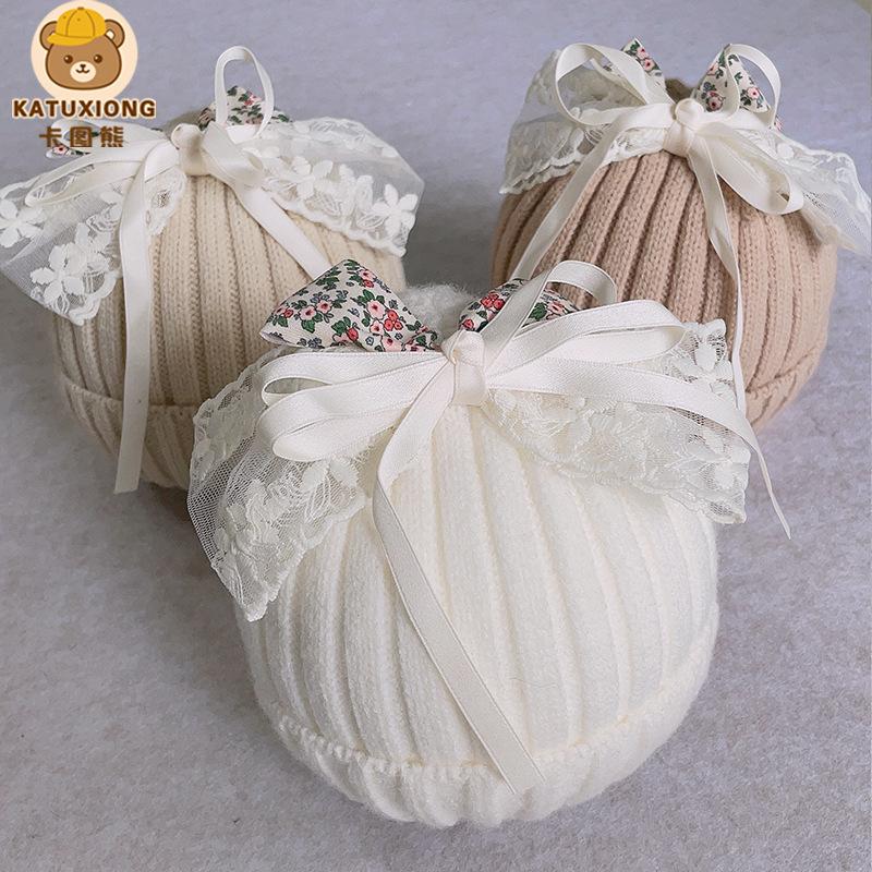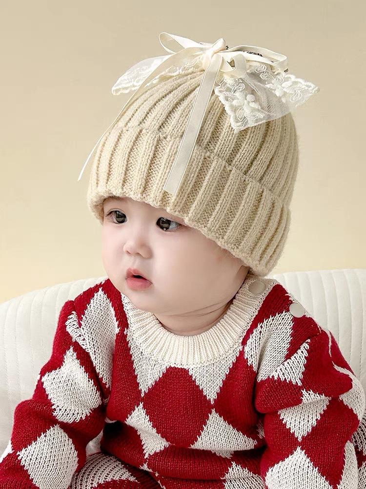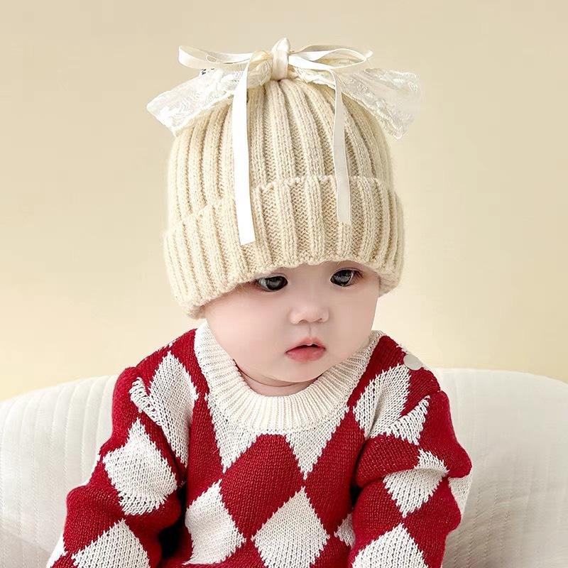 Gorro de lana de punto cálido para niñas, estilo coreano, con lazo, estilo extranjero, para otoño e invierno