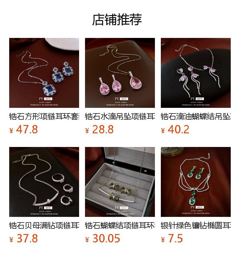 1#Necklace-color-water drops, 2#Silver needle-golden-water drop, 3#Necklace-silver-flower, 4#Bracelet-silver-f...