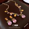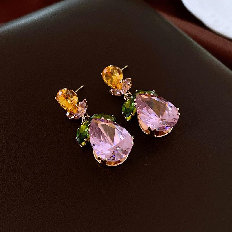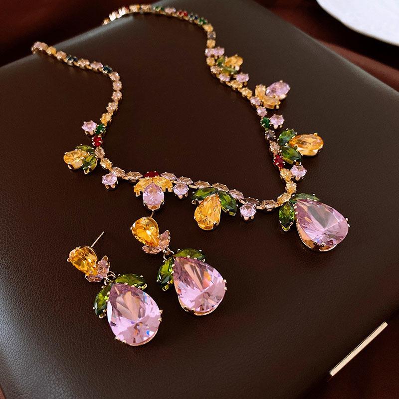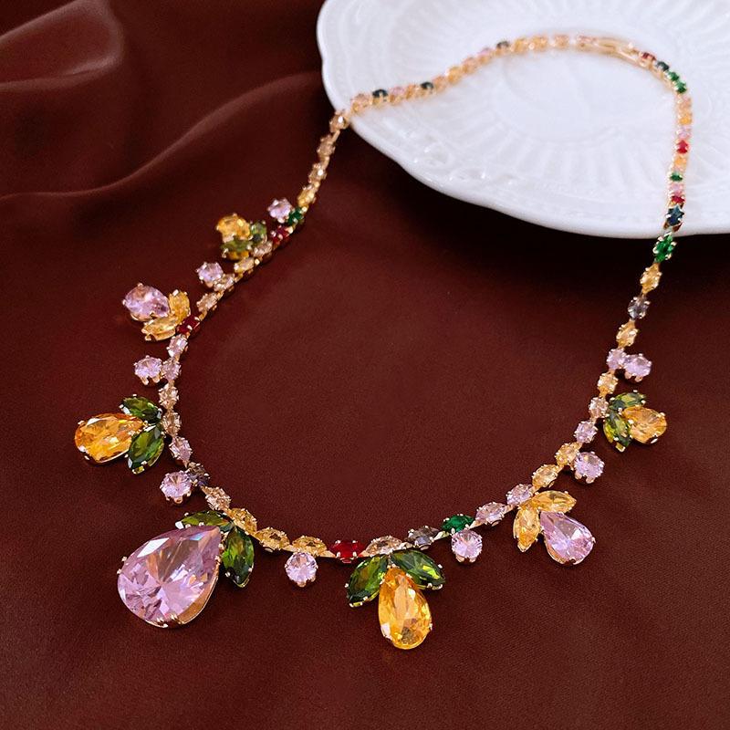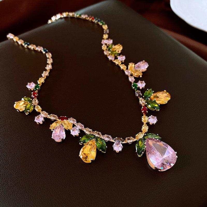 Collar de hoja de gota de agua con circonita europea y americana, cadena de clavícula alta de lujo ligera, pendientes de moda de nicho, joyería de traje al por mayor para mujer