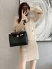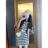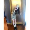 Cárdigan de punto a rayas para mujer, abrigo de manga corta, top de cintura alta y falda de cadera, traje de tres piezas para principios de invierno