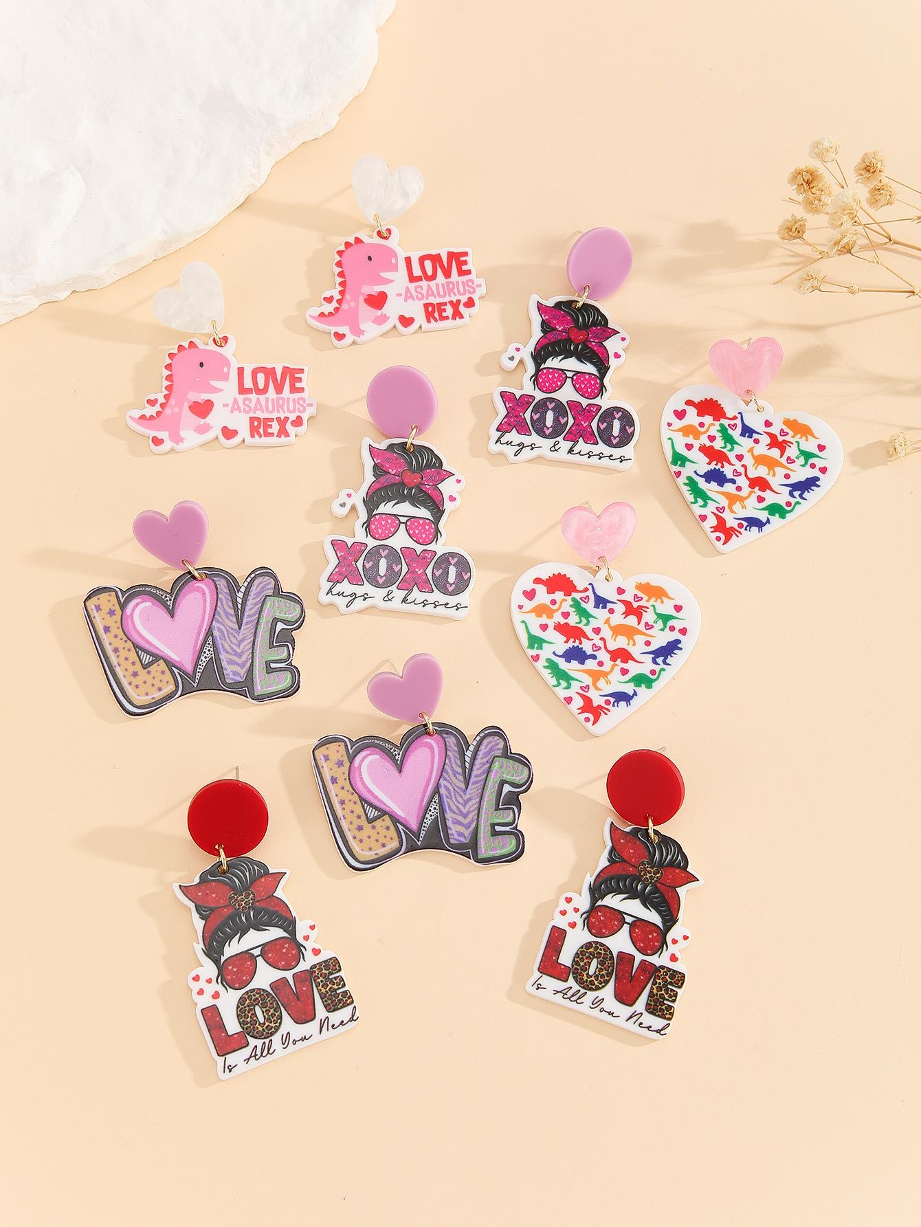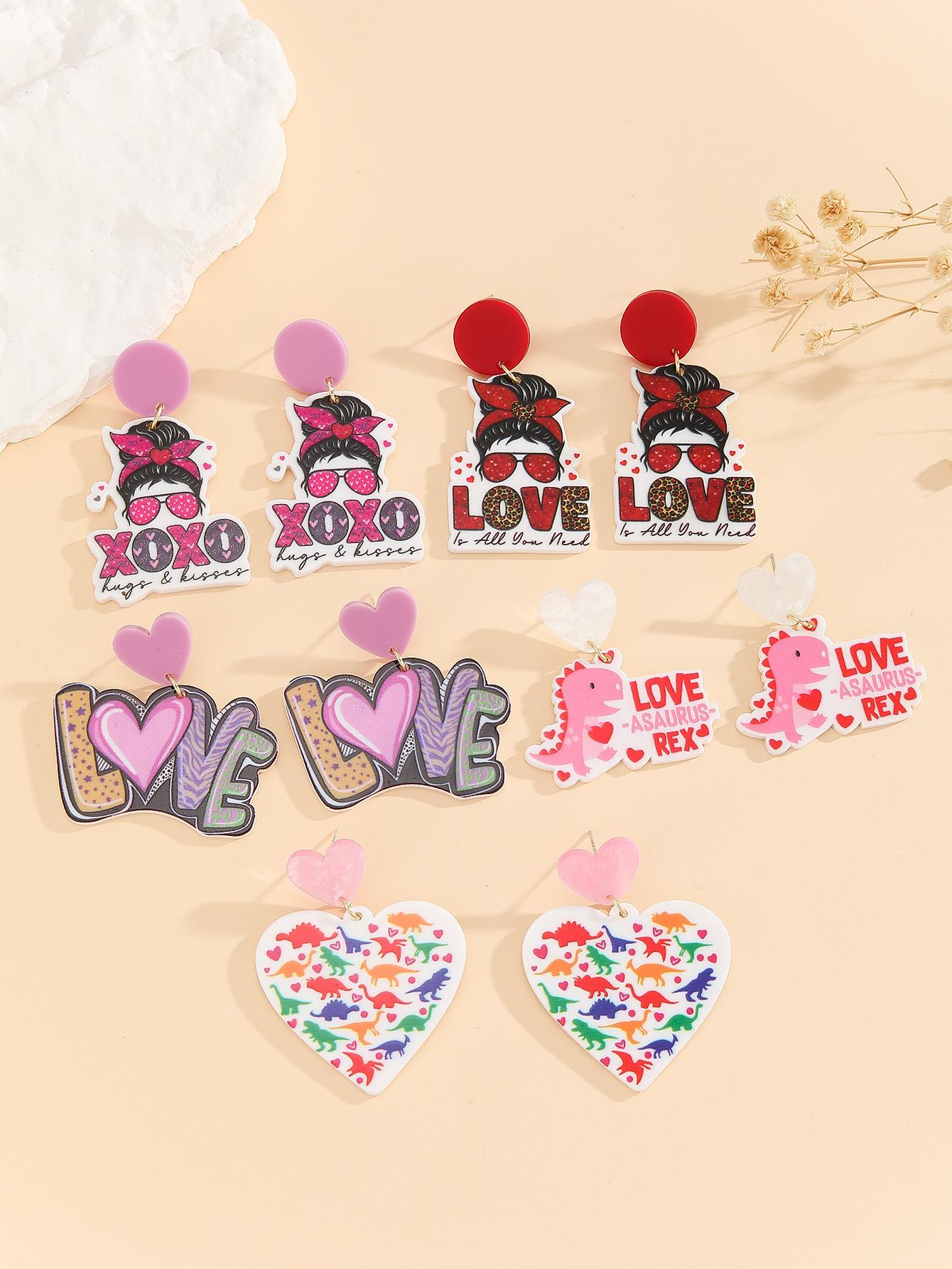 Pendientes transfronterizos de la nueva serie de San Valentín con letras de amor, sencillos, de colores irregulares, con personalidad creativa.
