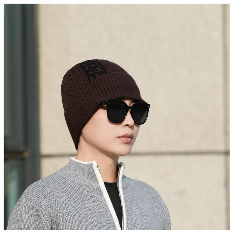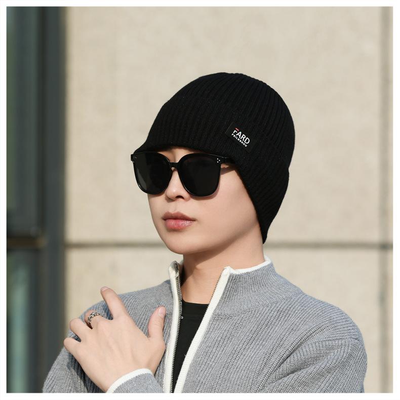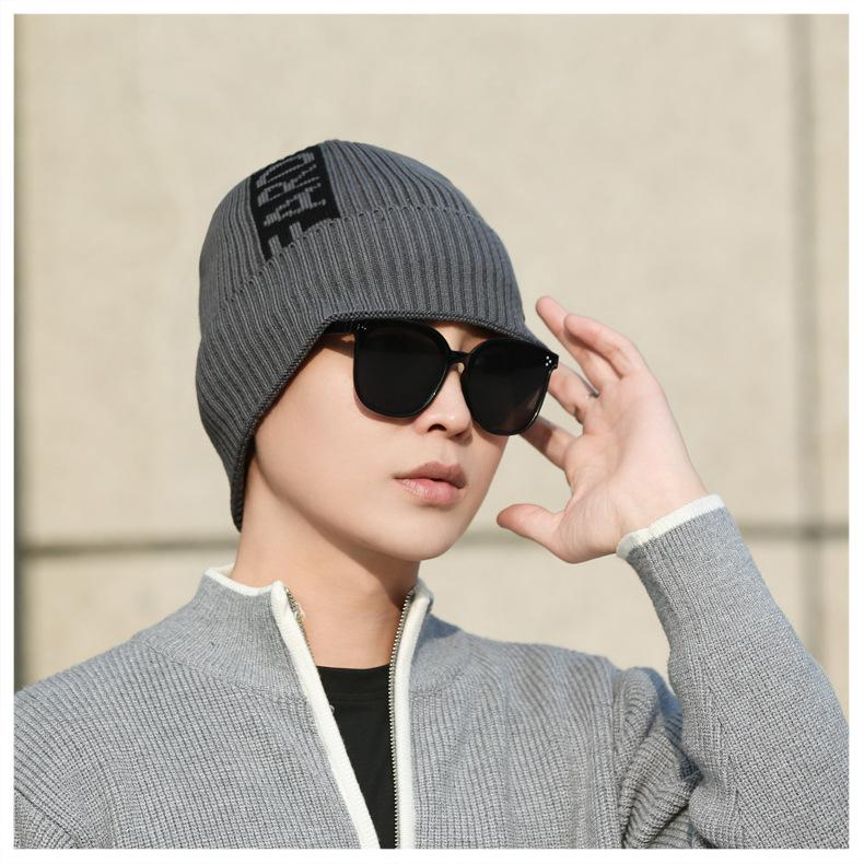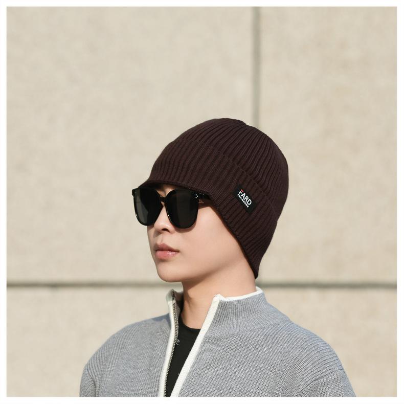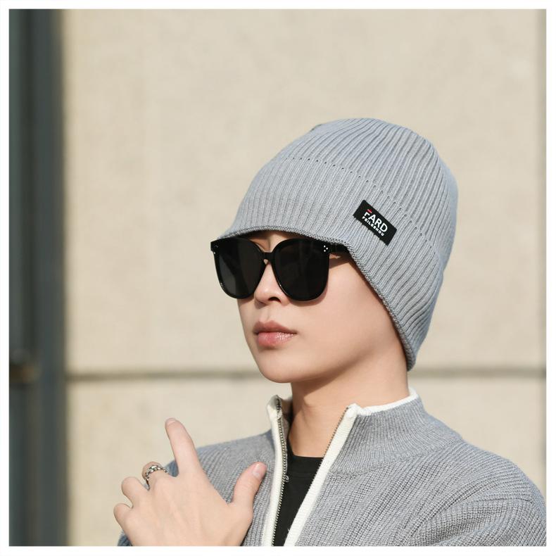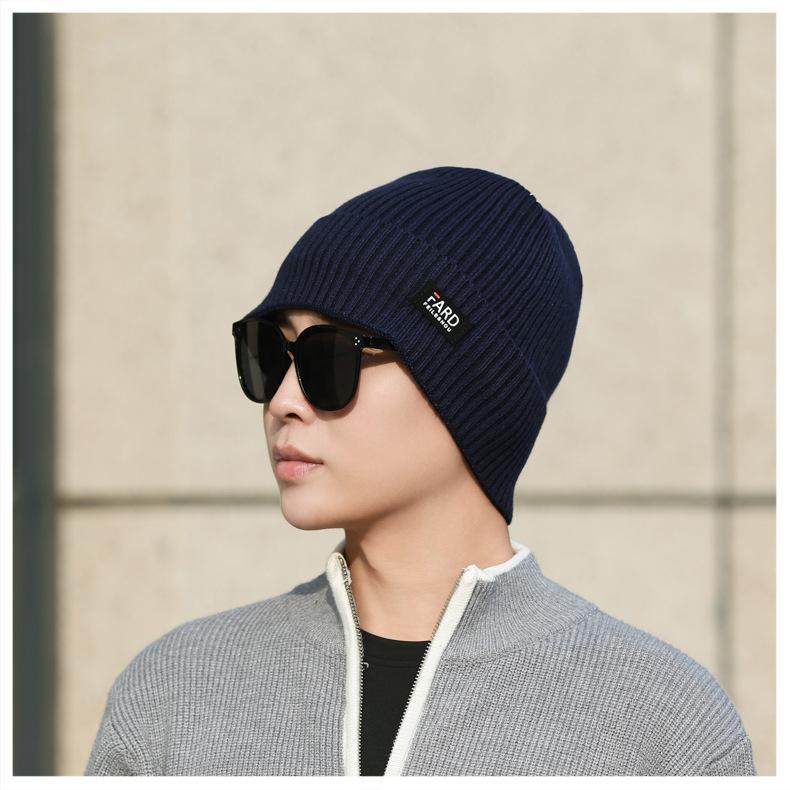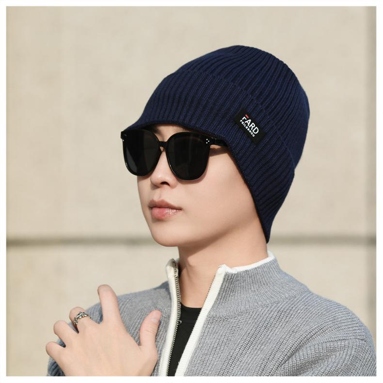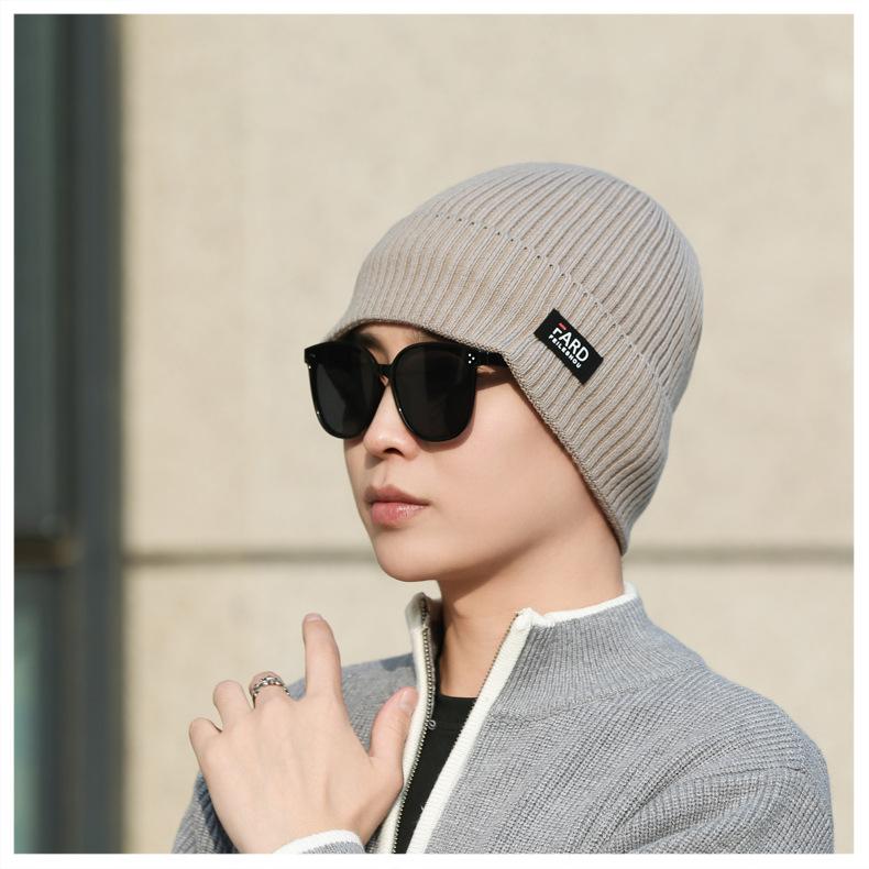 Gorro de lana de punto para hombre, cálido y resistente al frío, para otoño e invierno, estilo coreano, para montar a caballo al aire libre, gorro de lana, gorro para el frío