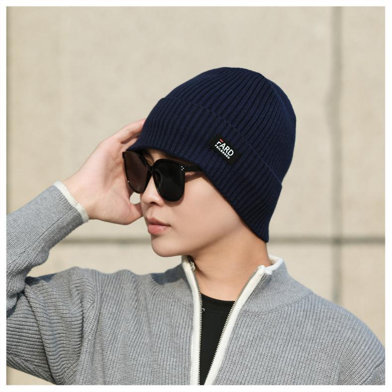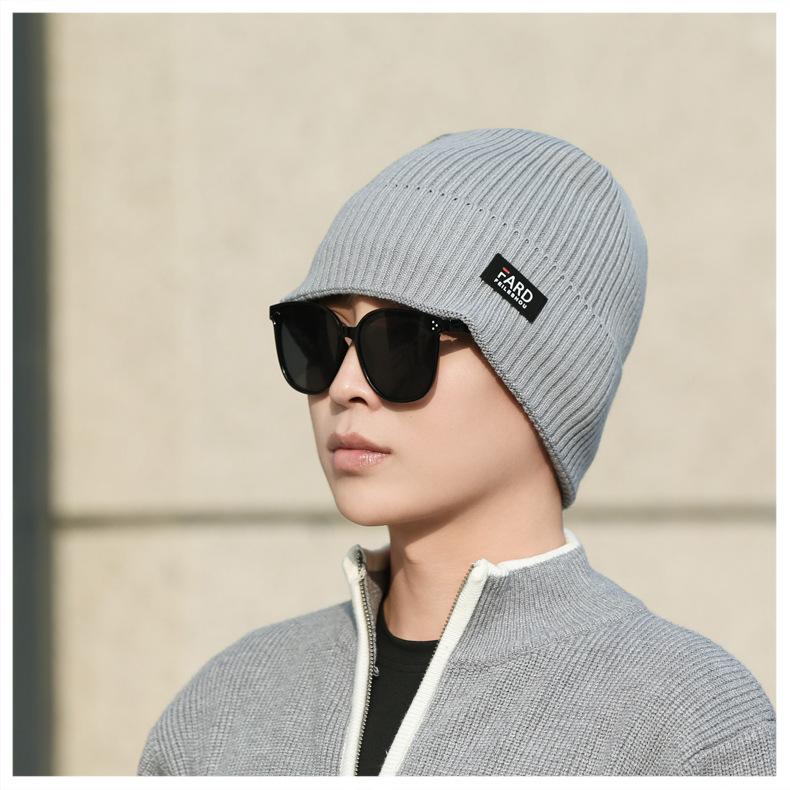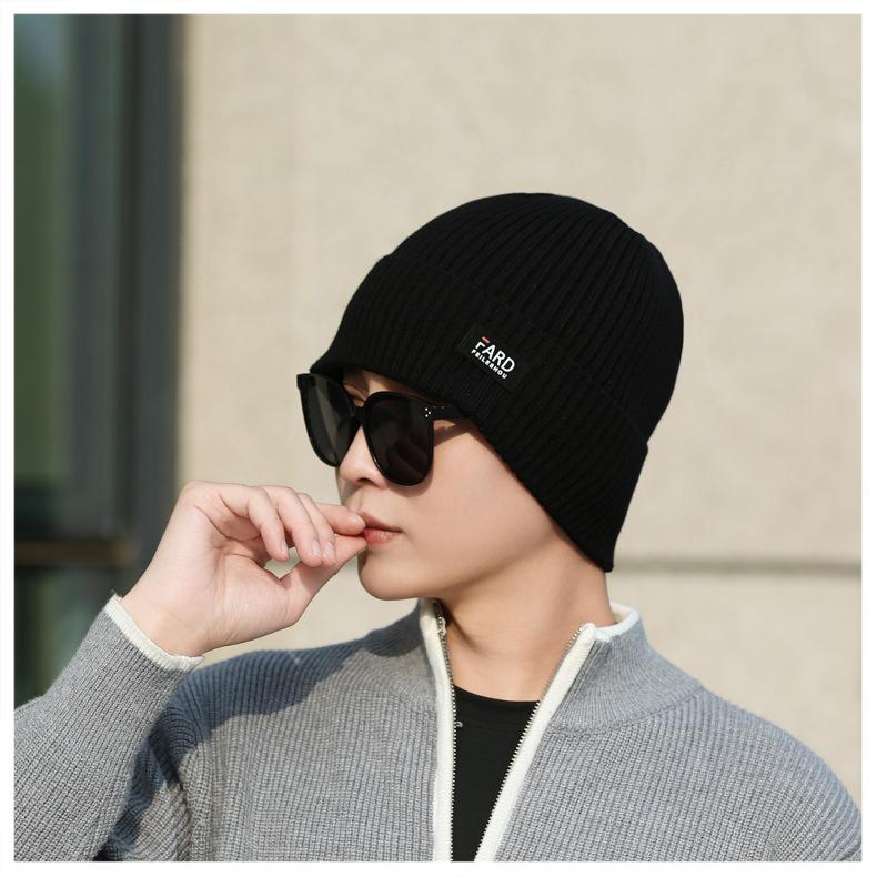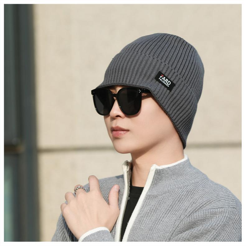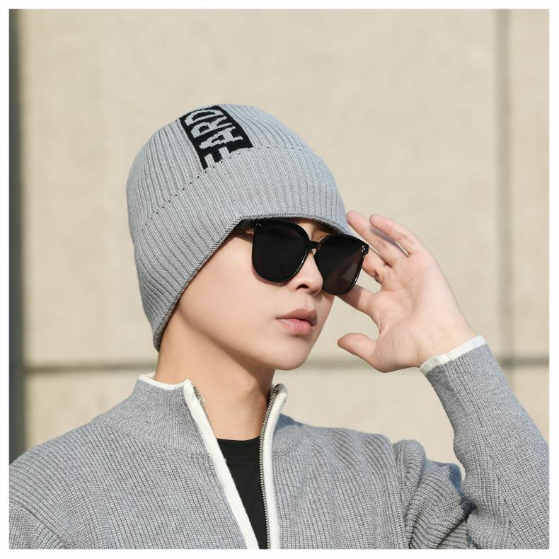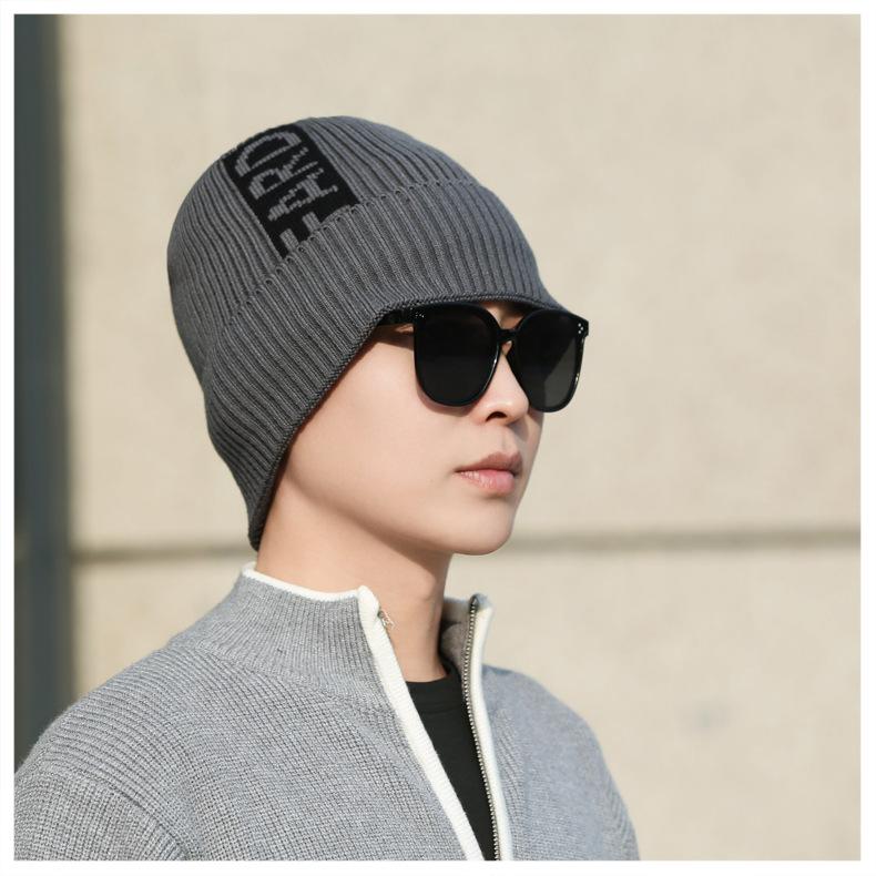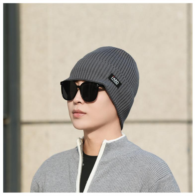 Gorro de lana de punto para hombre, cálido y resistente al frío, para otoño e invierno, estilo coreano, para montar a caballo al aire libre, gorro de lana, gorro para el frío
