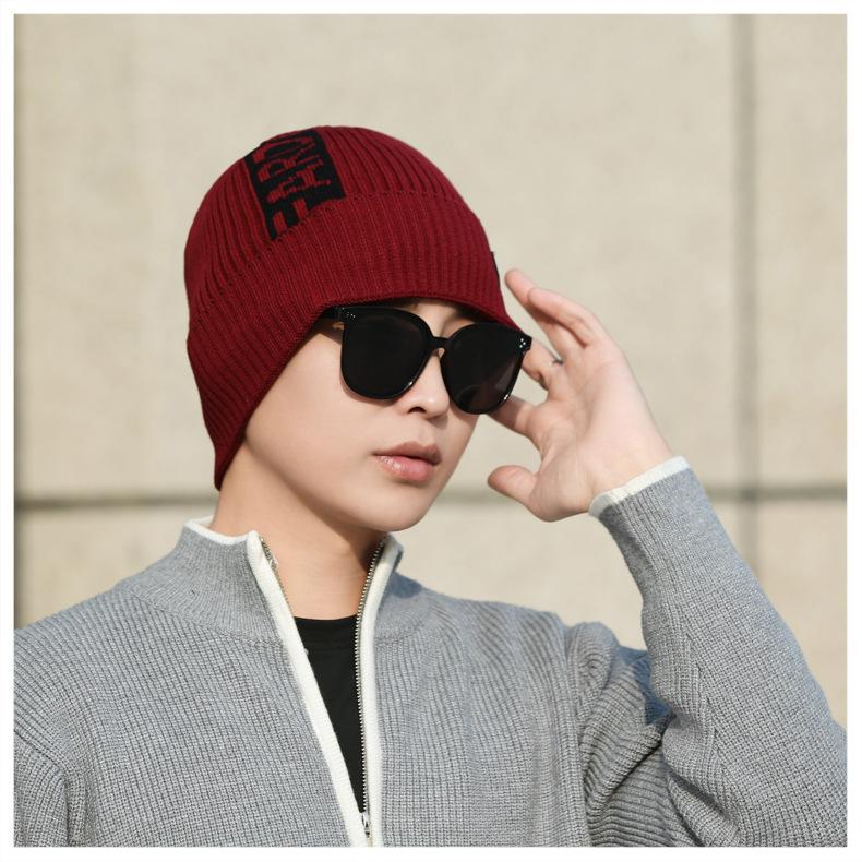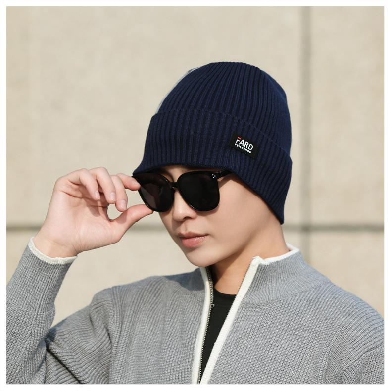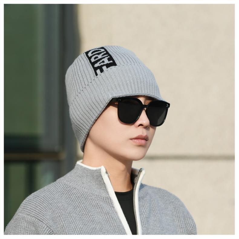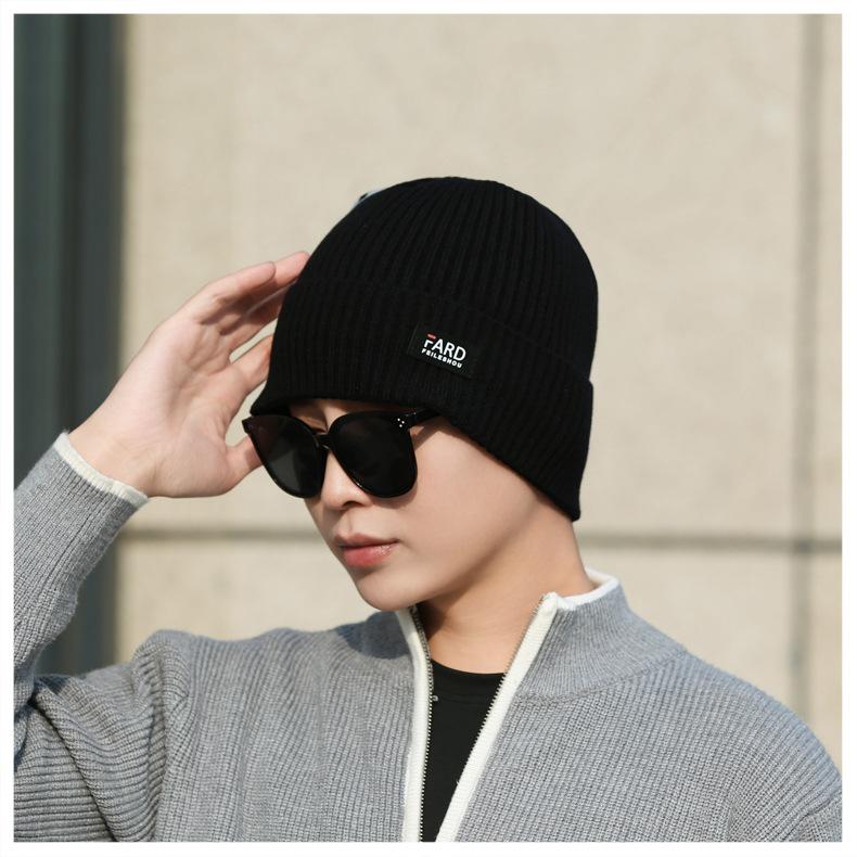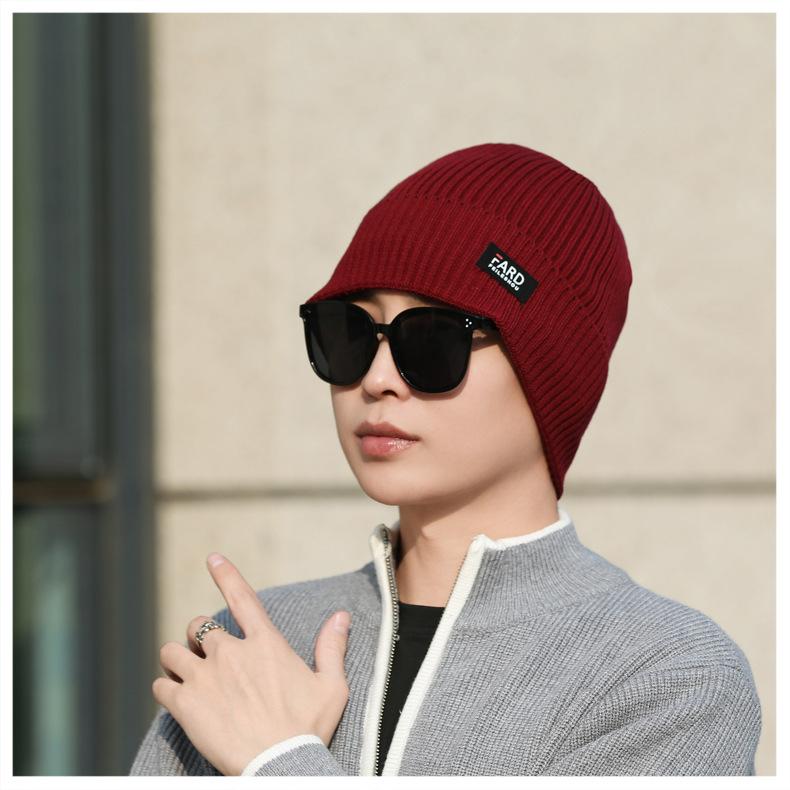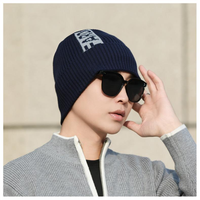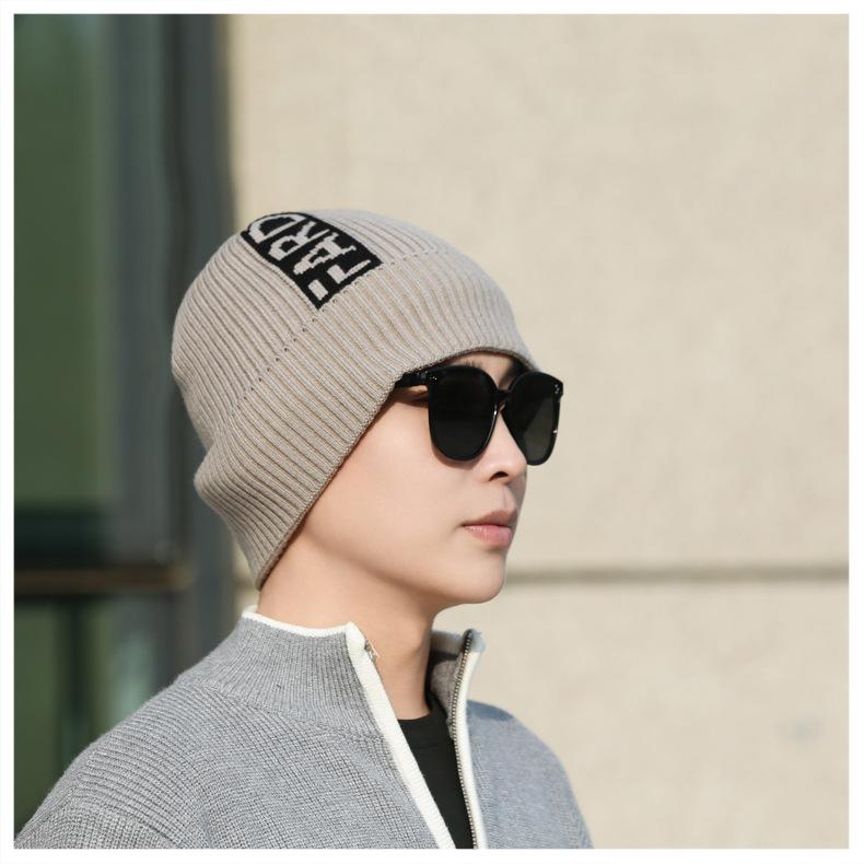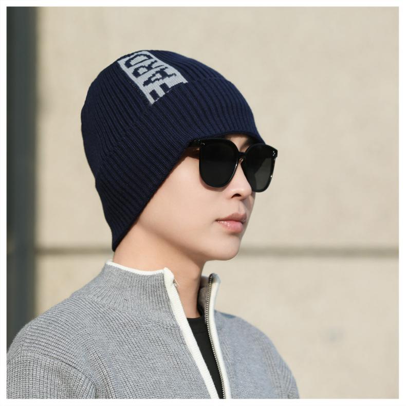 Gorro de lana de punto para hombre, cálido y resistente al frío, para otoño e invierno, estilo coreano, para montar a caballo al aire libre, gorro de lana, gorro para el frío