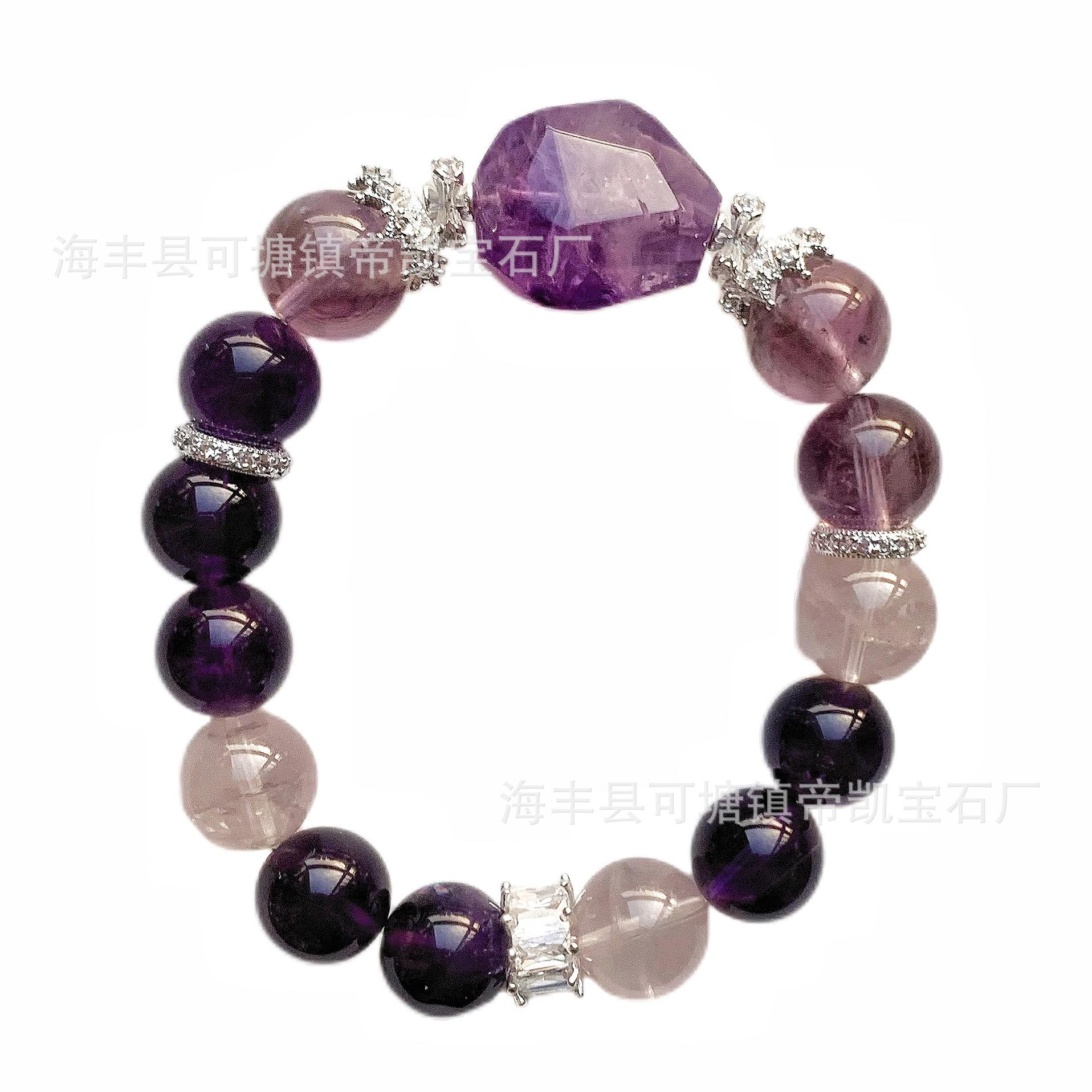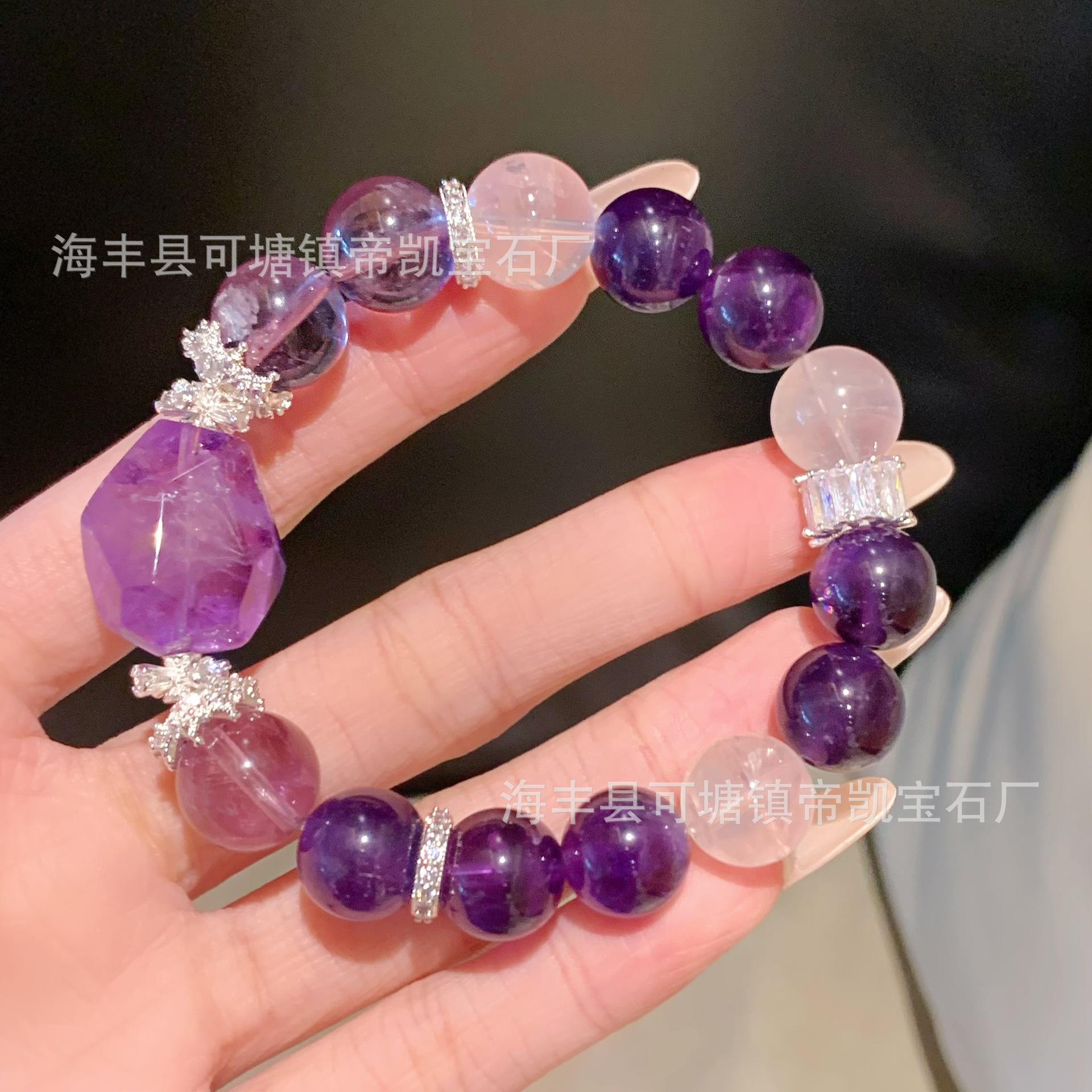 Pulsera de Amatista DIY Hecha a Mano Cuentas Redondas Venta al por Mayor Pulsera de Cristal Natural Joyería Popular Pulsera de Joyería