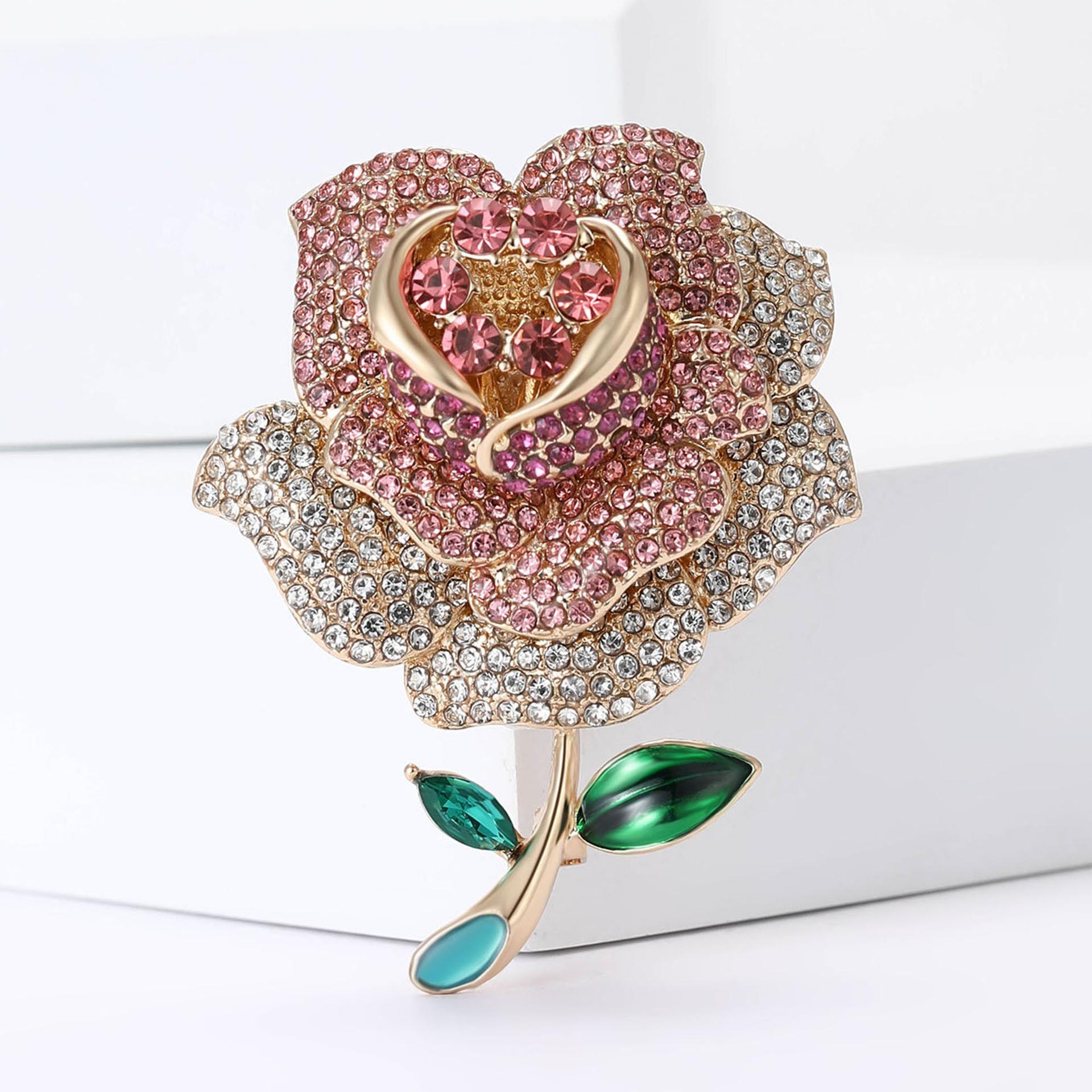 Nuevo y exquisito broche de rosa con diamantes de imitación de aleación para industria pesada, temperamento que combina con todo, ropa de mujer, ramillete, alfiler de joyería
