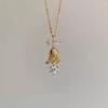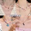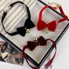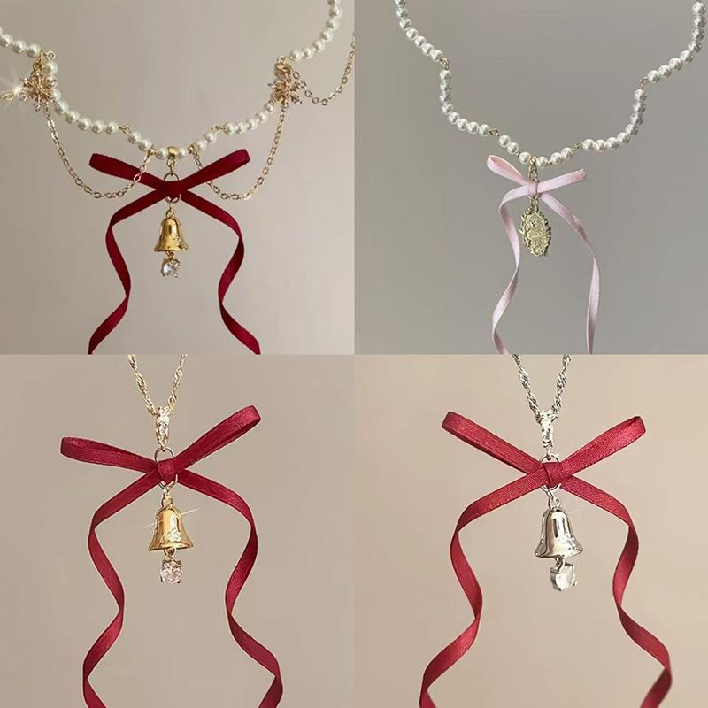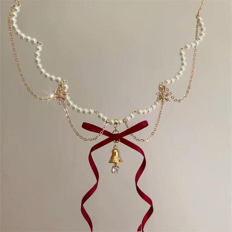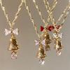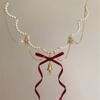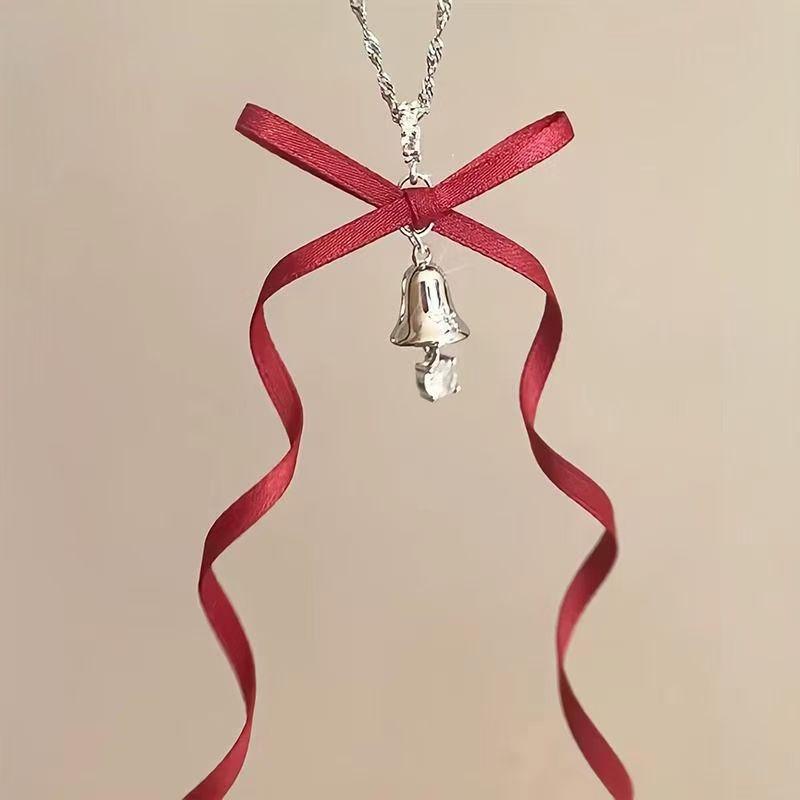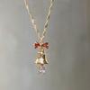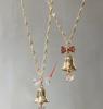 Collar con lazo de cinta de hada súper atmosférica y campana navideña, cadena de clavícula con forma de corazón de niña dulce y soñadora.