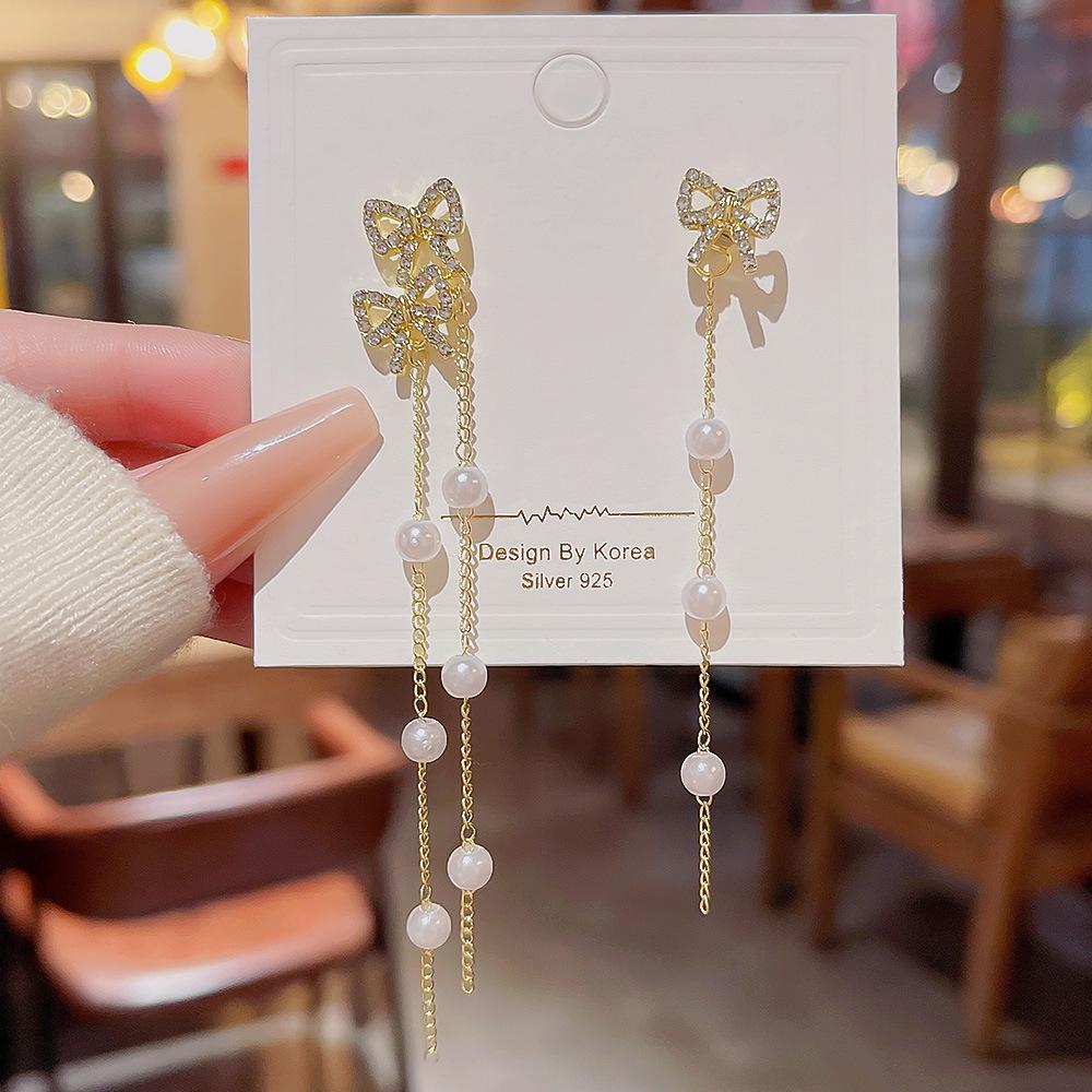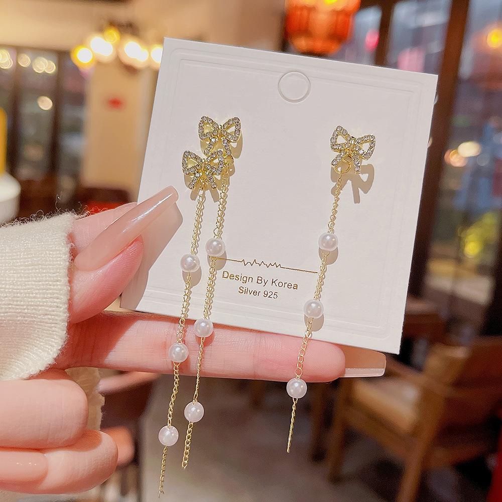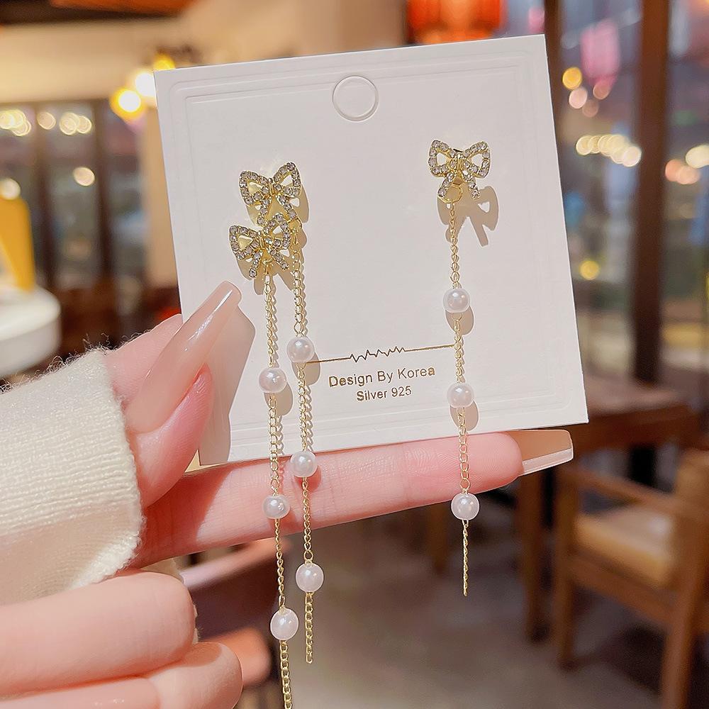 Pendientes elegantes de moda con aguja de plata 925 que combinan con todo, ligeros, de lujo, de alta gama, con diseño de nicho y borlas de lazo.
