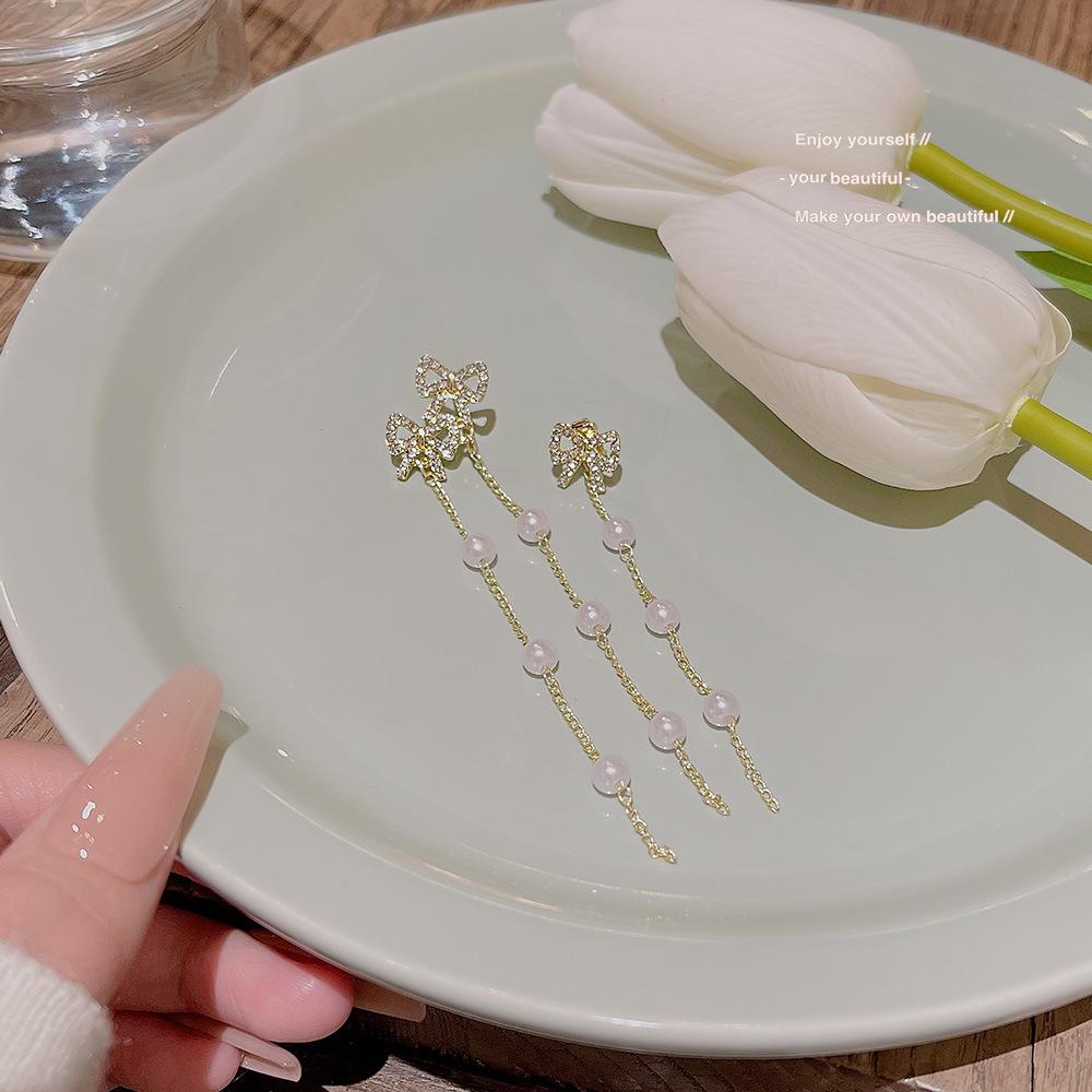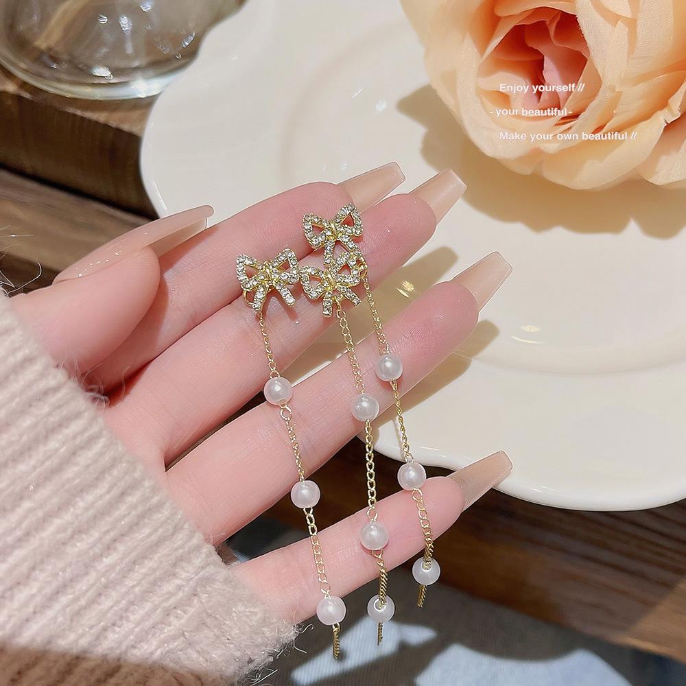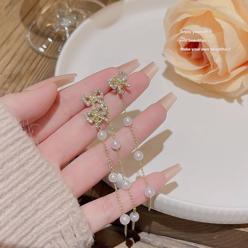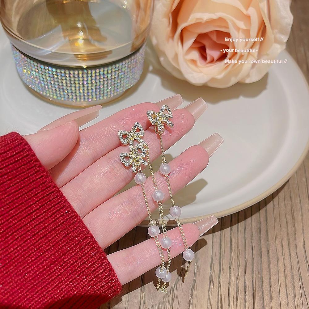 Pendientes elegantes de moda con aguja de plata 925 que combinan con todo, ligeros, de lujo, de alta gama, con diseño de nicho y borlas de lazo.