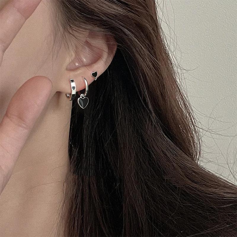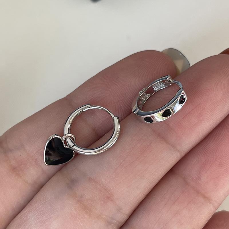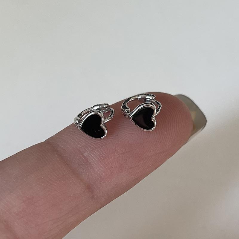 Pendientes negros oscuros con diseño de nicho, ligeros y lujosos, combinables con todo, exquisitos mini pendientes en forma de corazón para mujer, recién llegados.