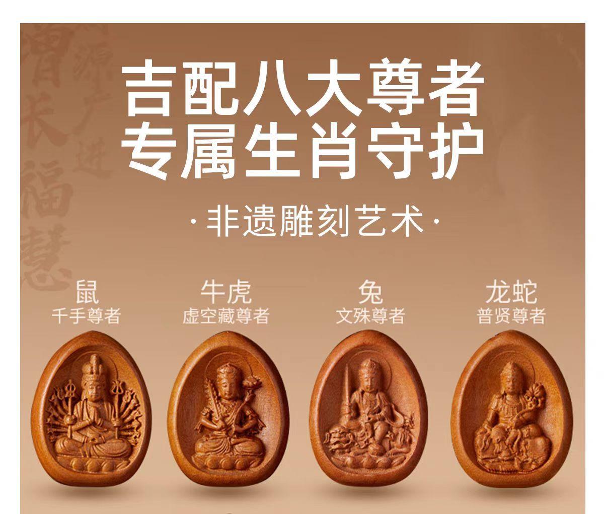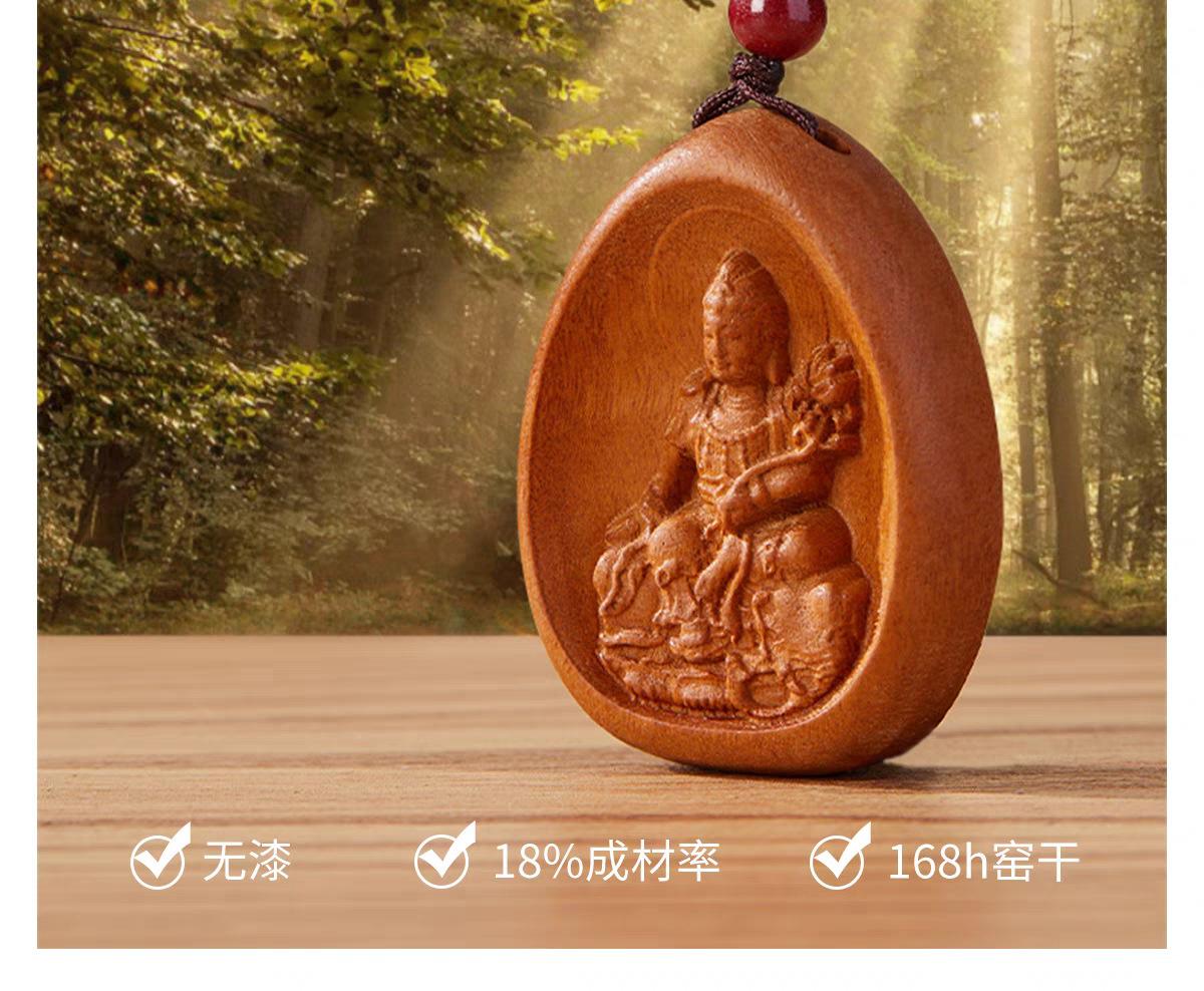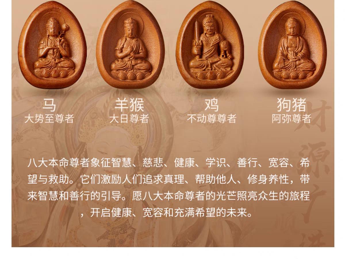 Colgante Buda del Zodíaco de Madera de Durazno Real para Mujer Collar Santo Patrón de los 12 Signos del Zodíaco Samantabhadra Bodhisattva Paz Colgante Collar para Hombre
