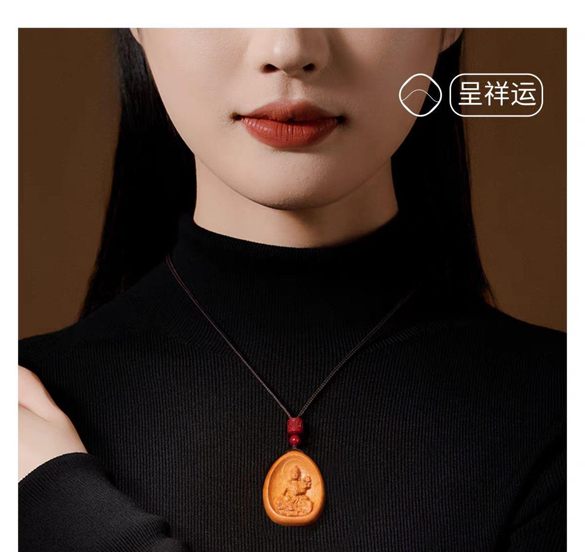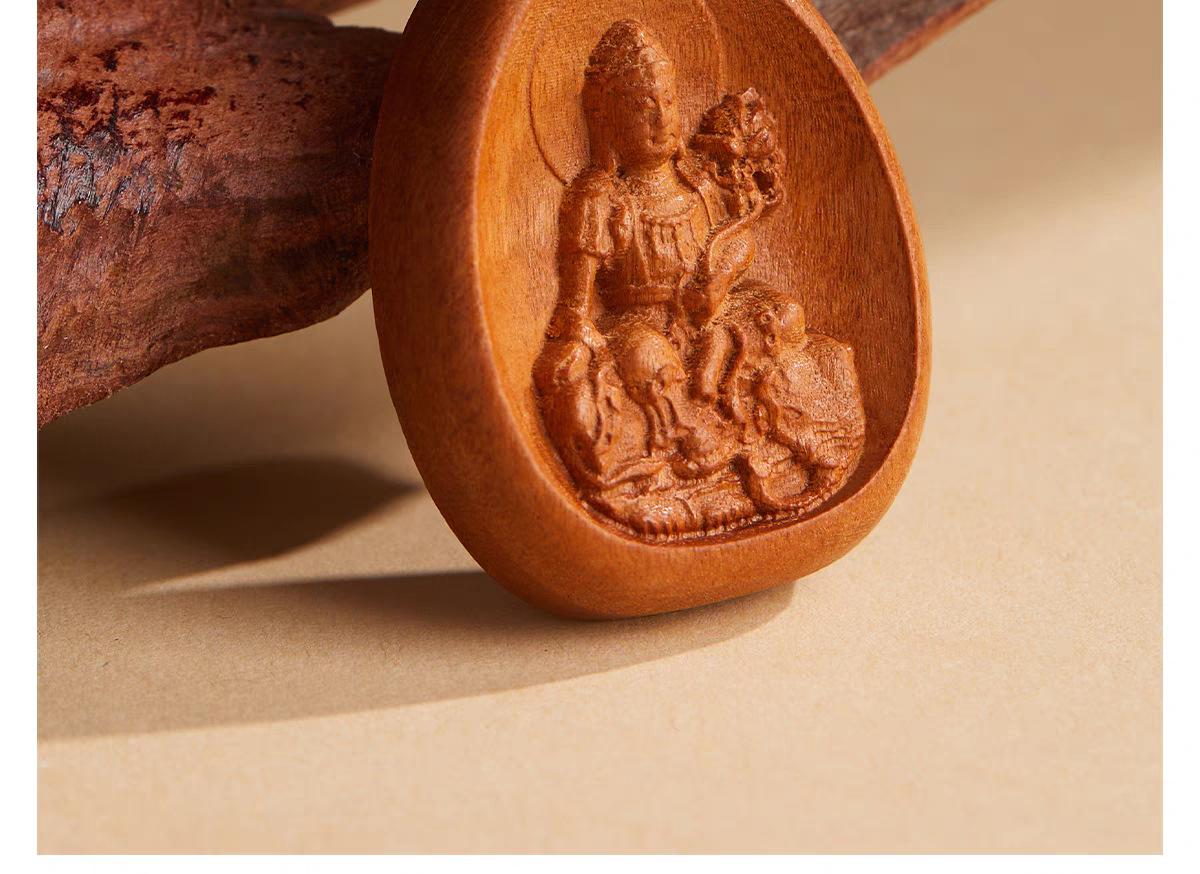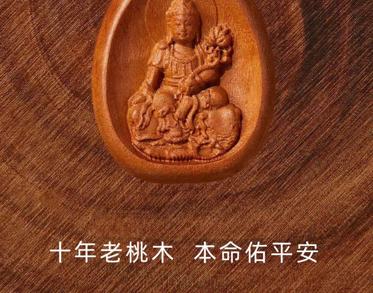 Colgante Buda del Zodíaco de Madera de Durazno Real para Mujer Collar Santo Patrón de los 12 Signos del Zodíaco Samantabhadra Bodhisattva Paz Colgante Collar para Hombre