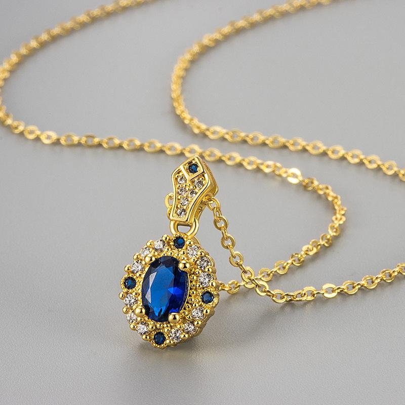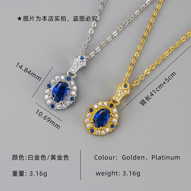 Oval Blue Zircon Necklace/White Gold, Oval Blue Zircon Necklace/Gold