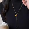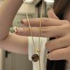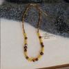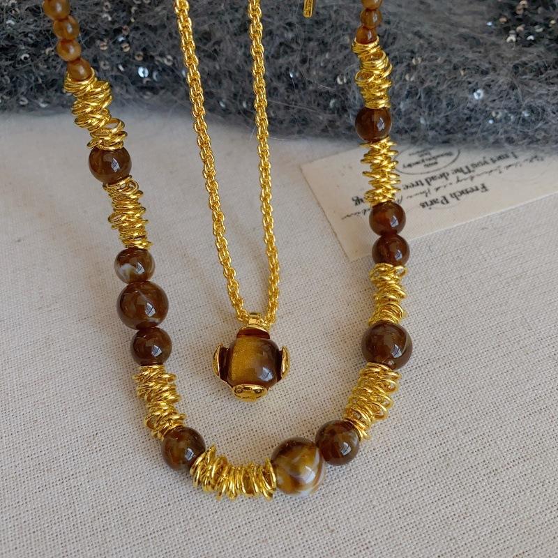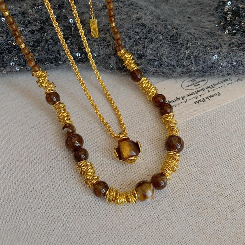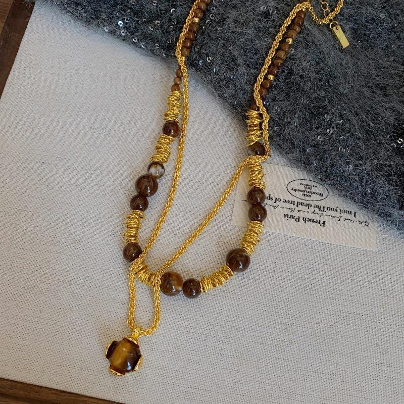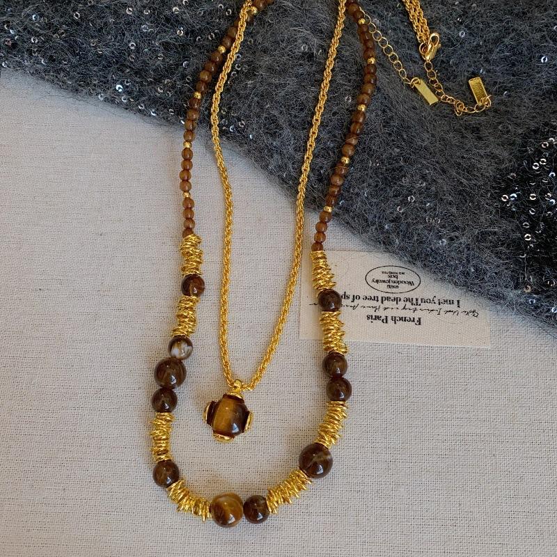 Collar largo de lana estilo Maillard con piedra de ojo de tigre natural para mujer, de otoño e invierno, de lujo, de alta gama, de doble capa apilada.