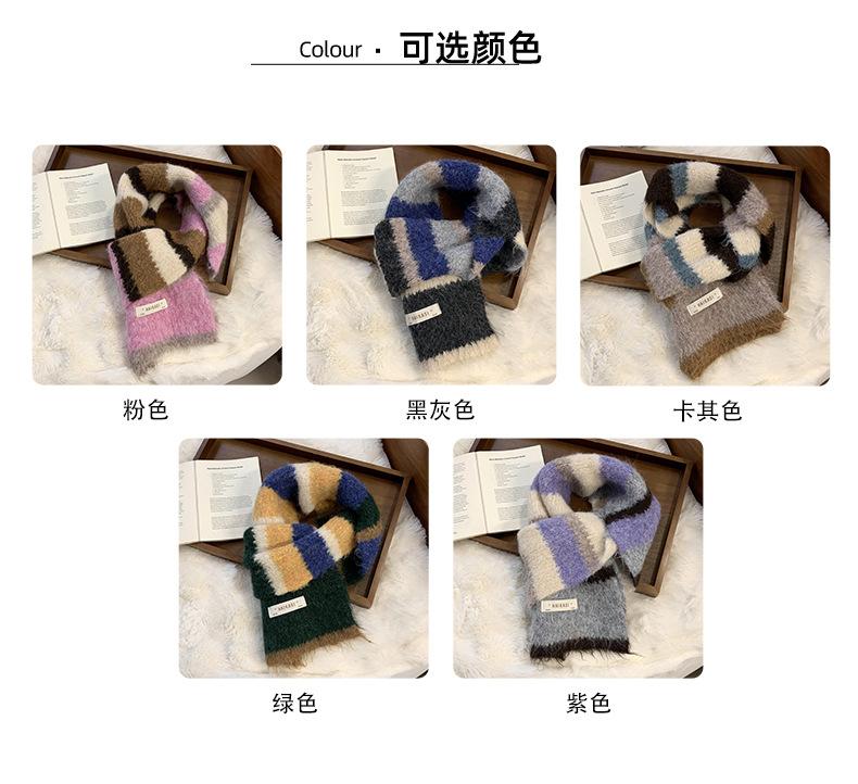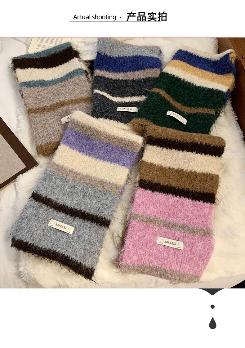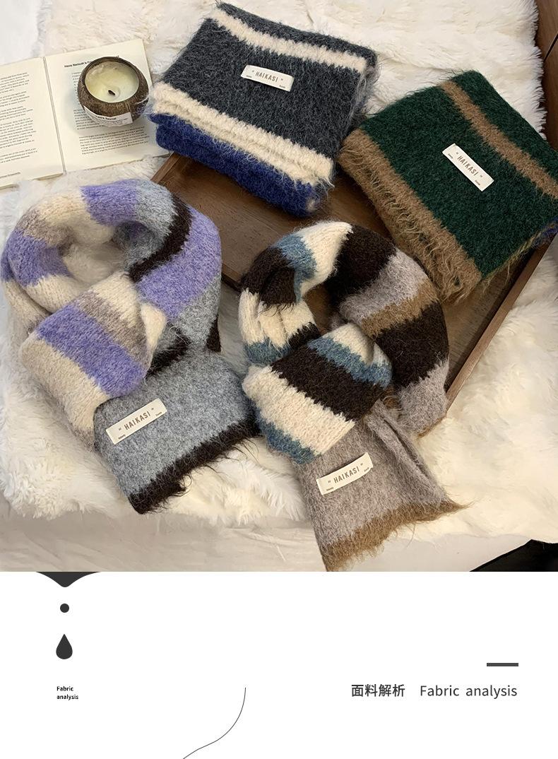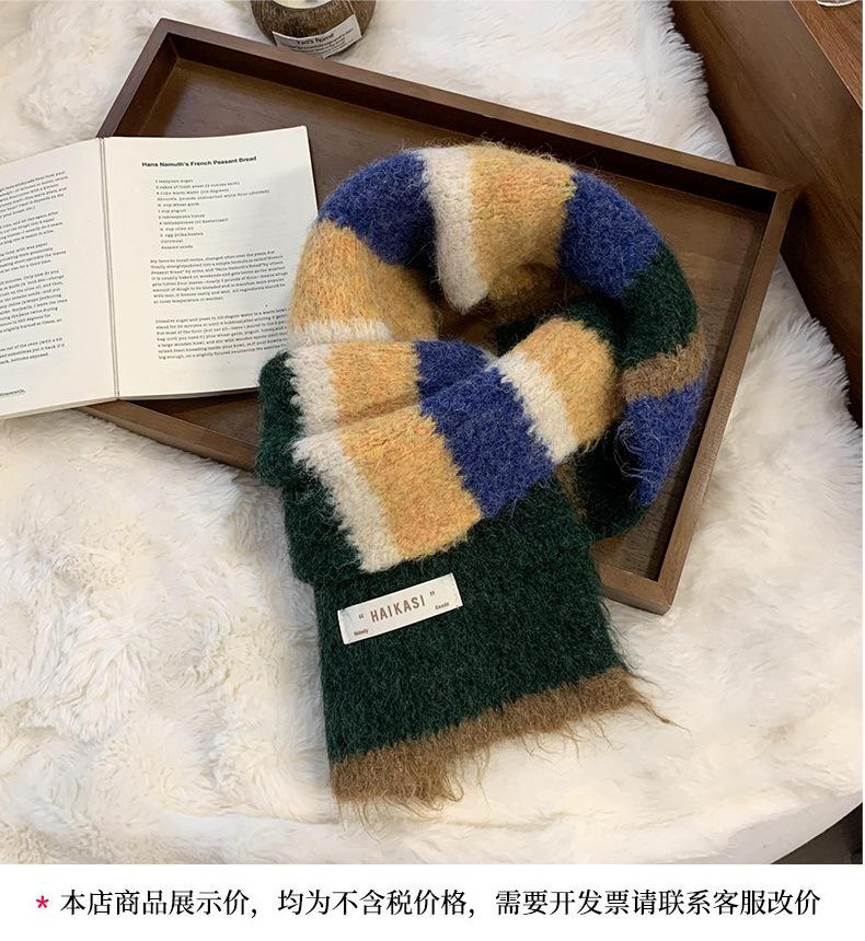 Bufanda de Lana Tejida para Mujer Invierno Nueva Estilo Coreano Sentido de Alta Gama Lana Imitación Bufanda de Estudiante Cálida Chal a Rayas