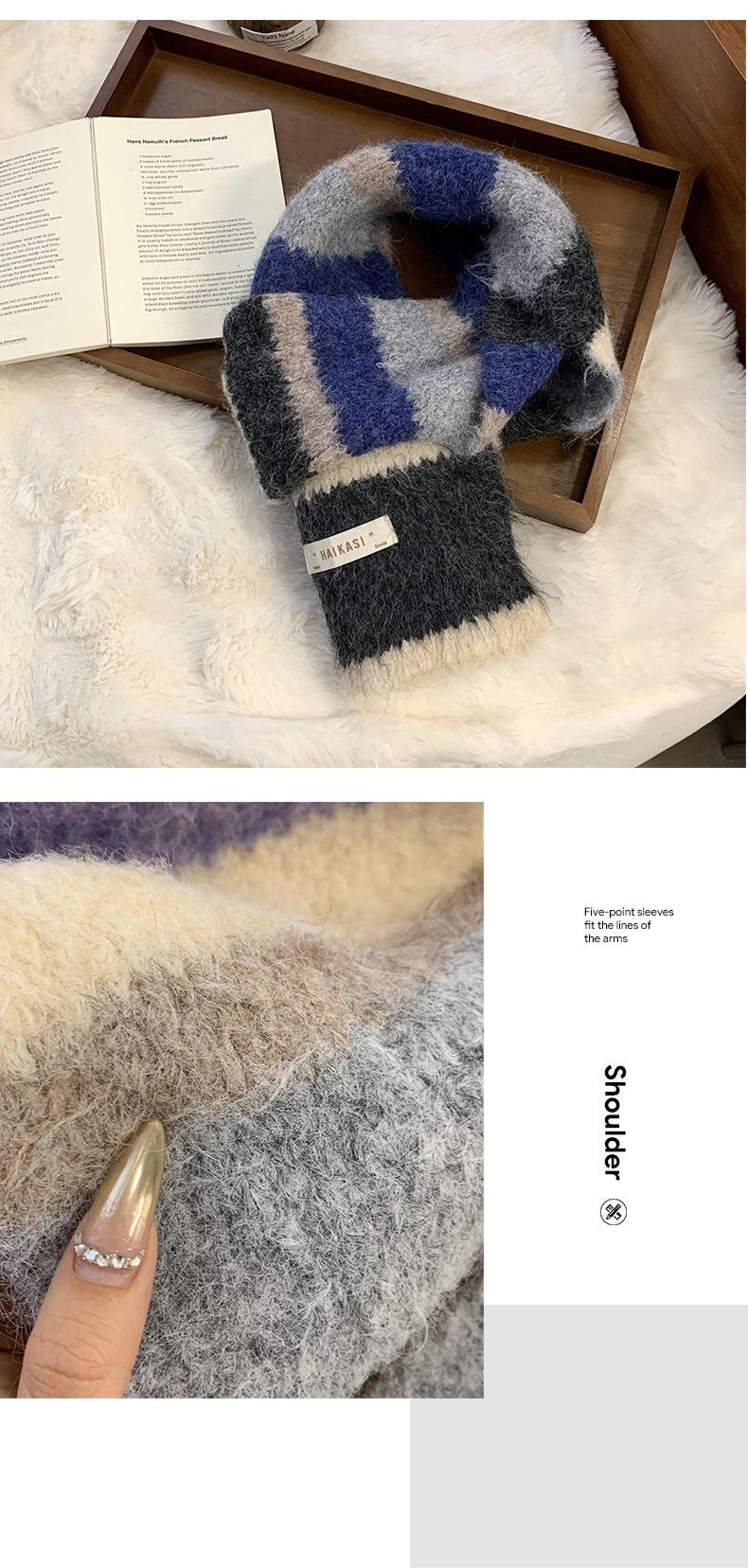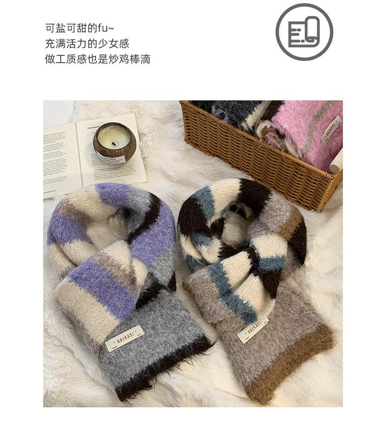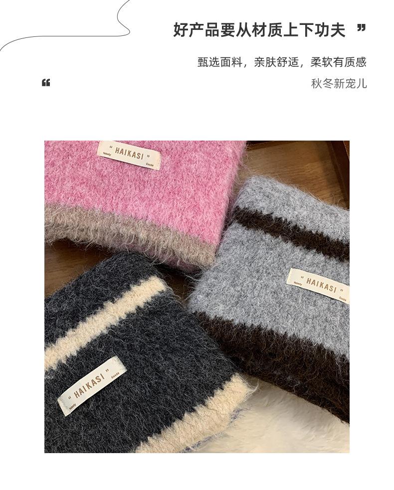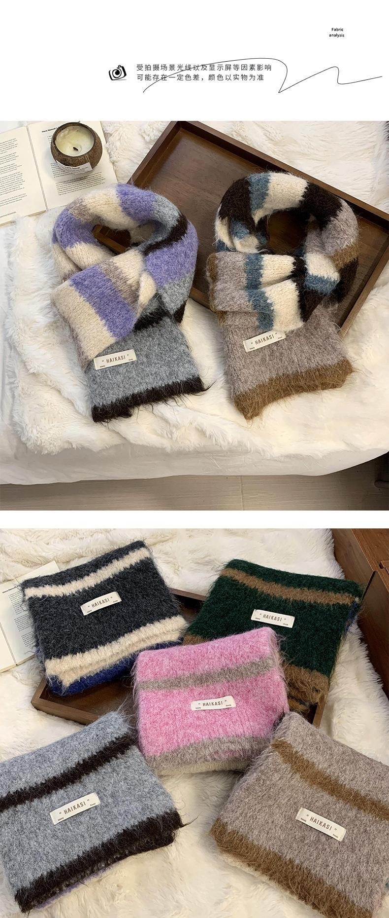 Bufanda de Lana Tejida para Mujer Invierno Nueva Estilo Coreano Sentido de Alta Gama Lana Imitación Bufanda de Estudiante Cálida Chal a Rayas