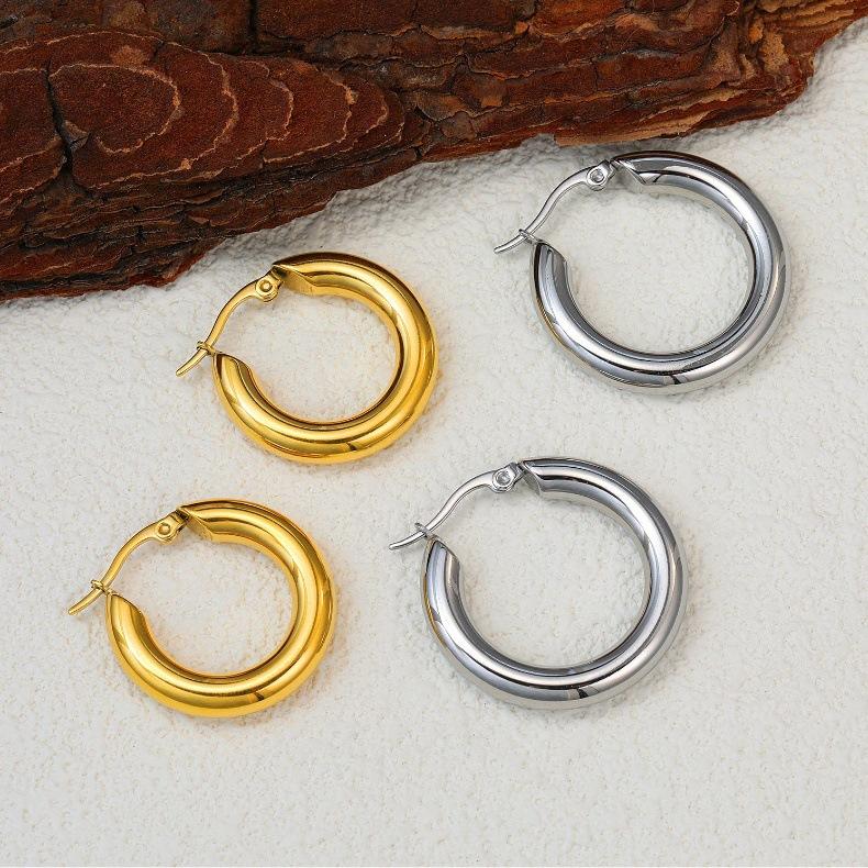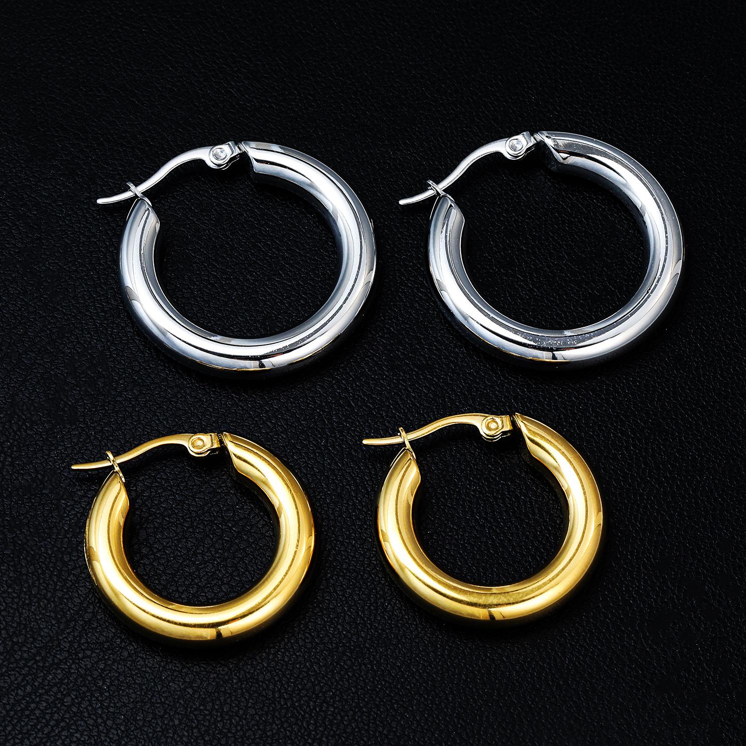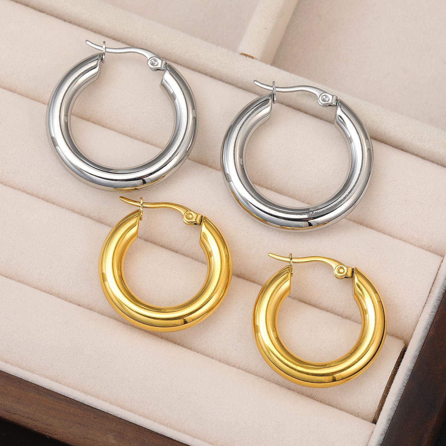 Pendientes de acero inoxidable estilo INS europeo y americano con revestimiento de oro de 18 quilates, superficie engrosada y exagerada, grandes círculos, pendientes, pendientes, pendientes, pendientes