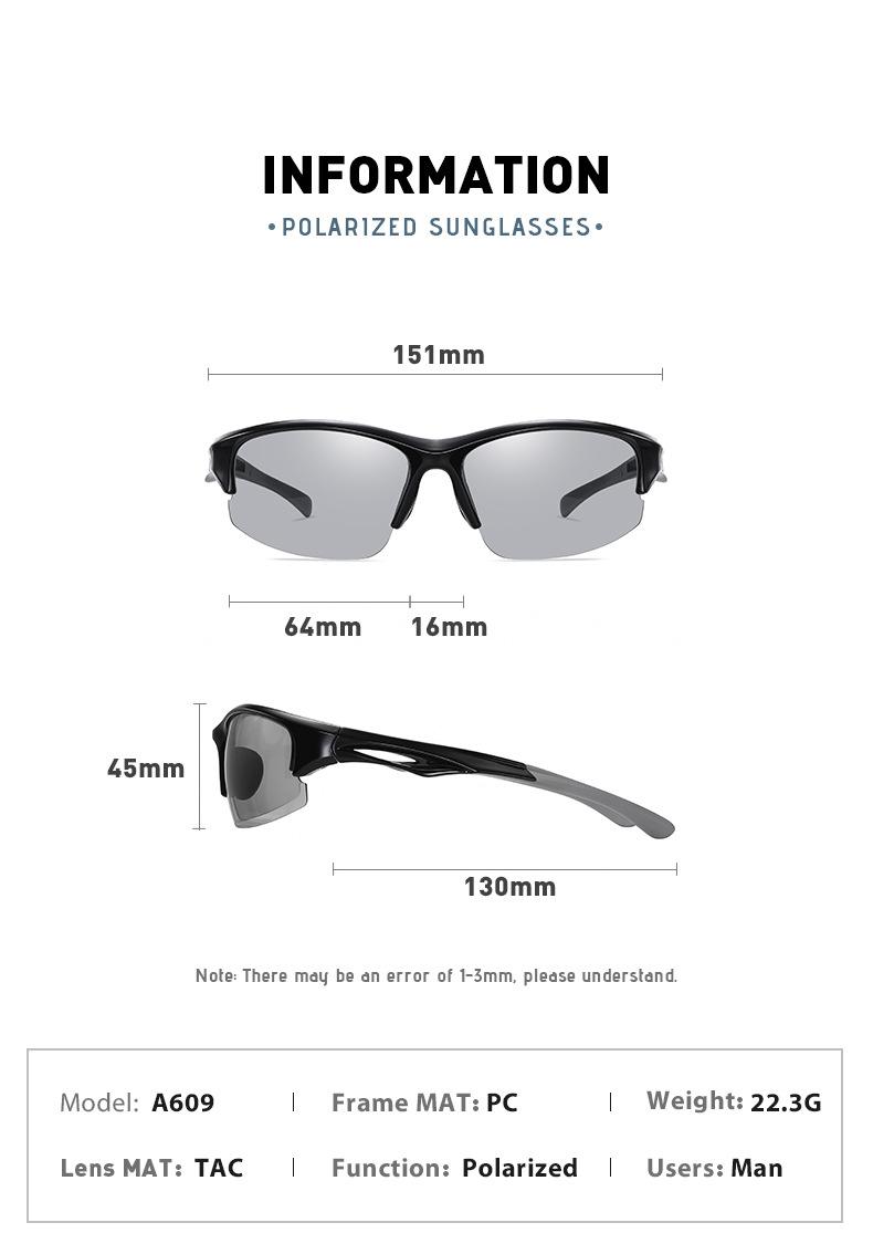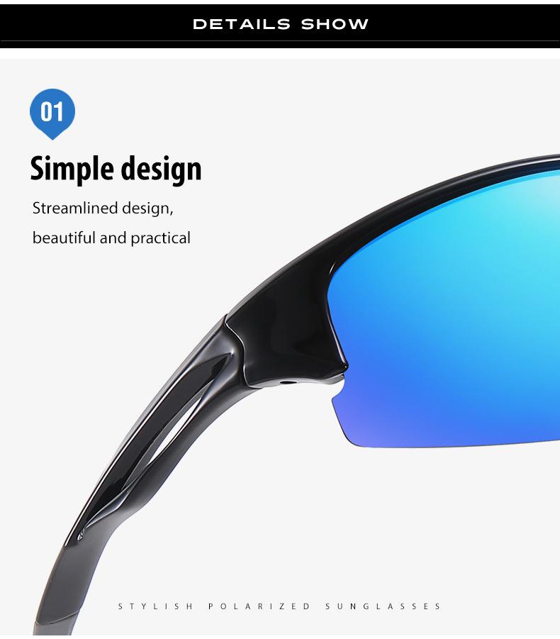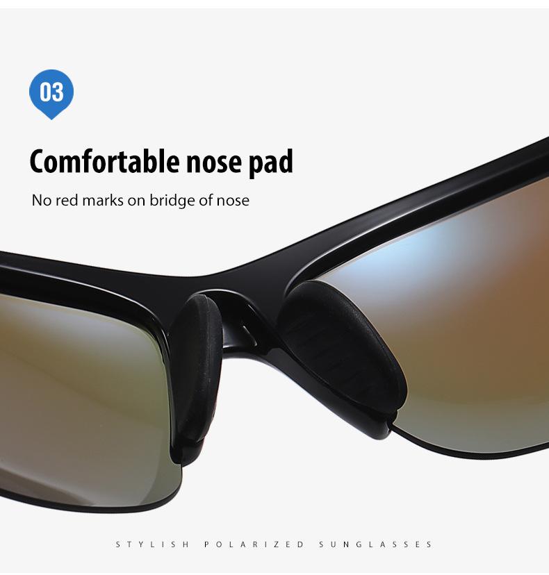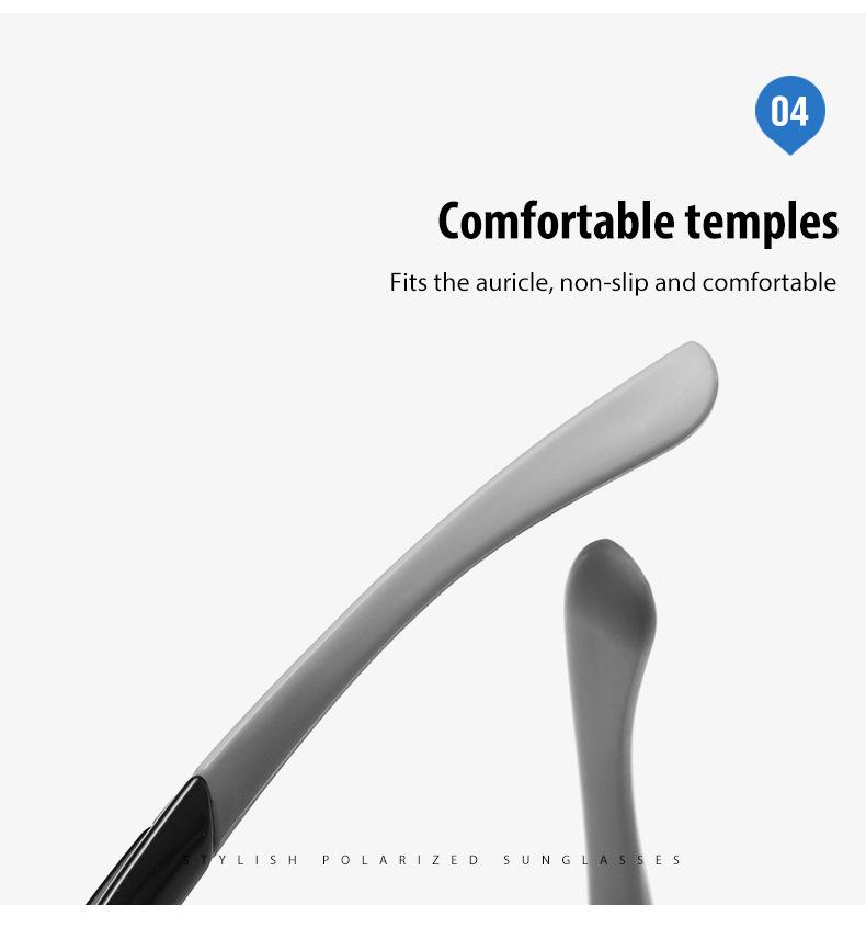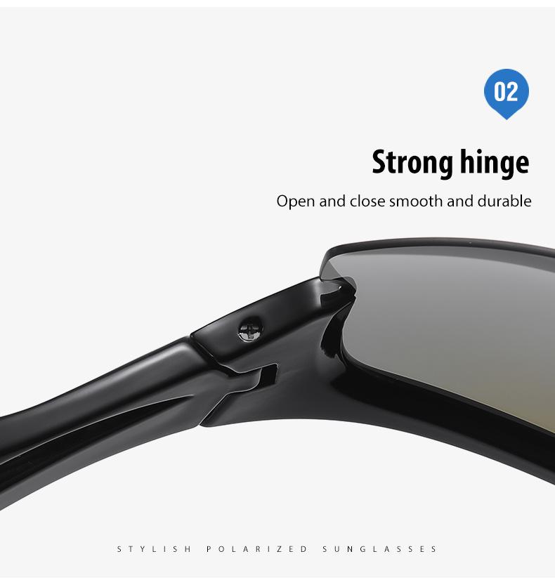 Estas gafas de sol polarizadas utilizan lentes reforzadas y engrosadas. Sus ventajas son la resistencia al desgaste, la buena flexibilidad, la alta resistencia a los impactos, la visión nítida y un buen efecto antideslumbrante.