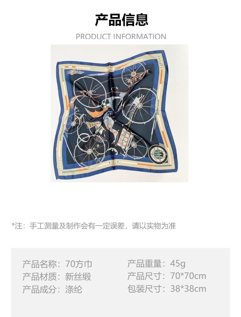 Primavera y verano 70cm nueva cadena de carruaje señoras sarga seda decorativa pequeña bufanda cuadrada bufanda pequeña bufanda bufanda al por mayor
