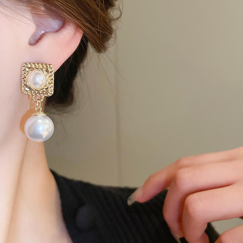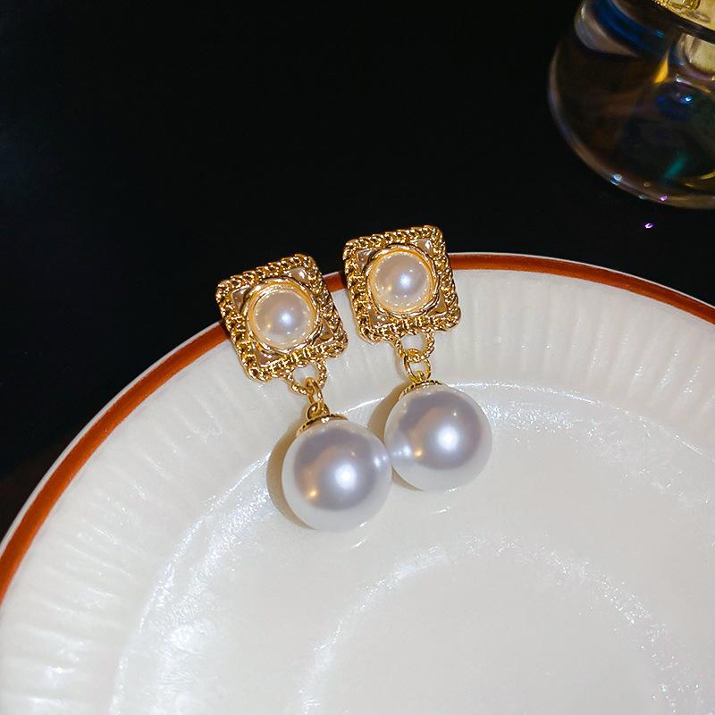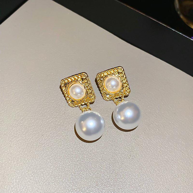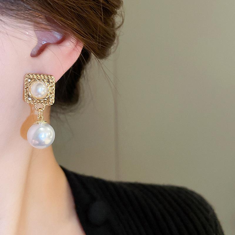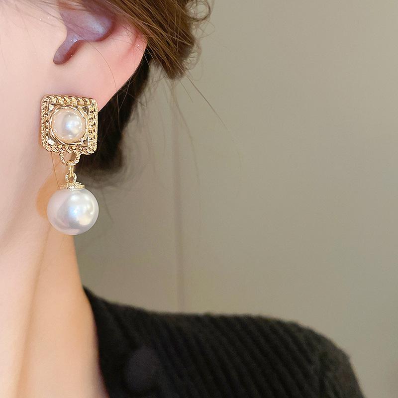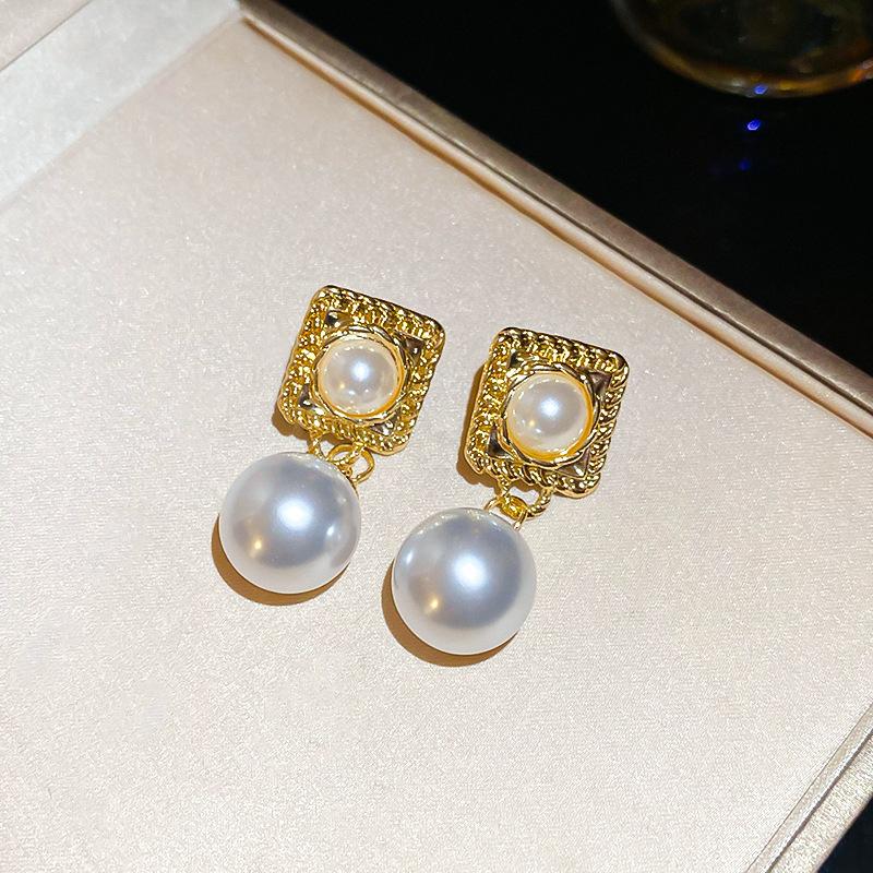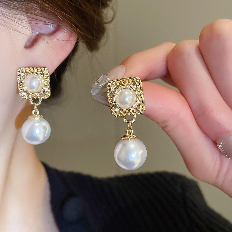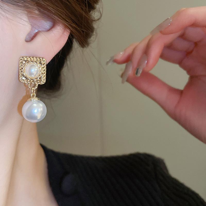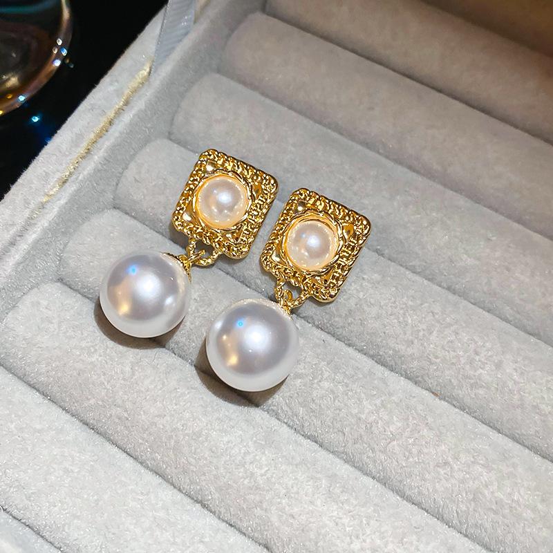 Pendientes de perlas artificiales vintage de estilo antiguo con aguja de plata, pendientes de nicho para mujer, pendientes que combinan con todo, pendientes elegantes de lujo de alta gama.