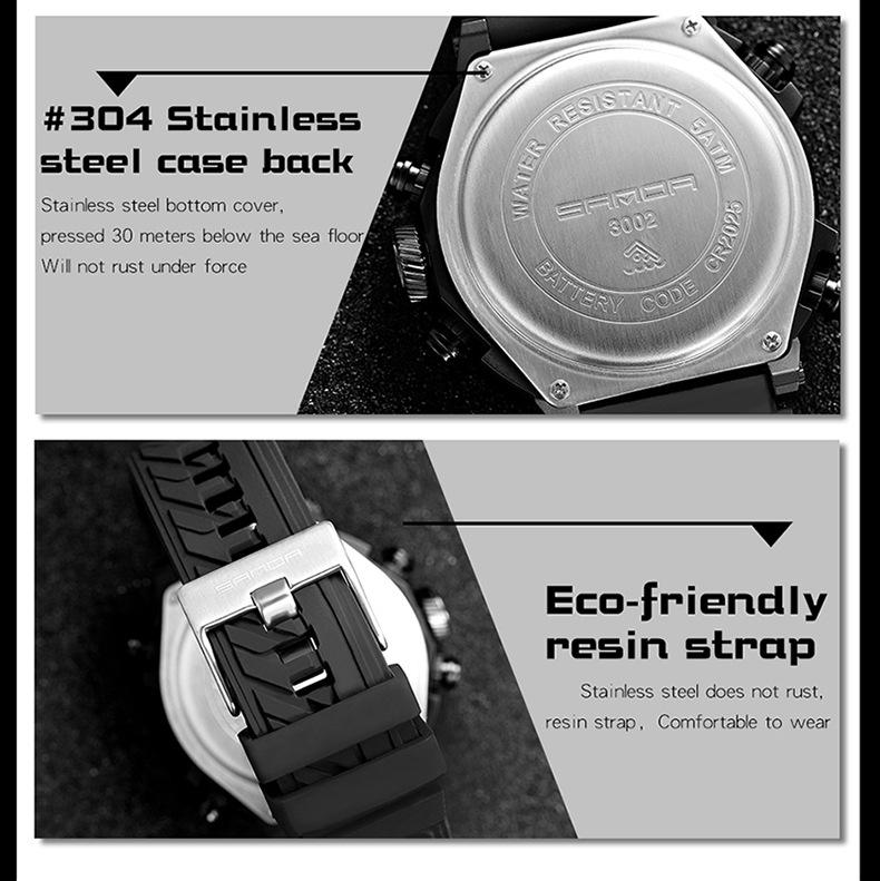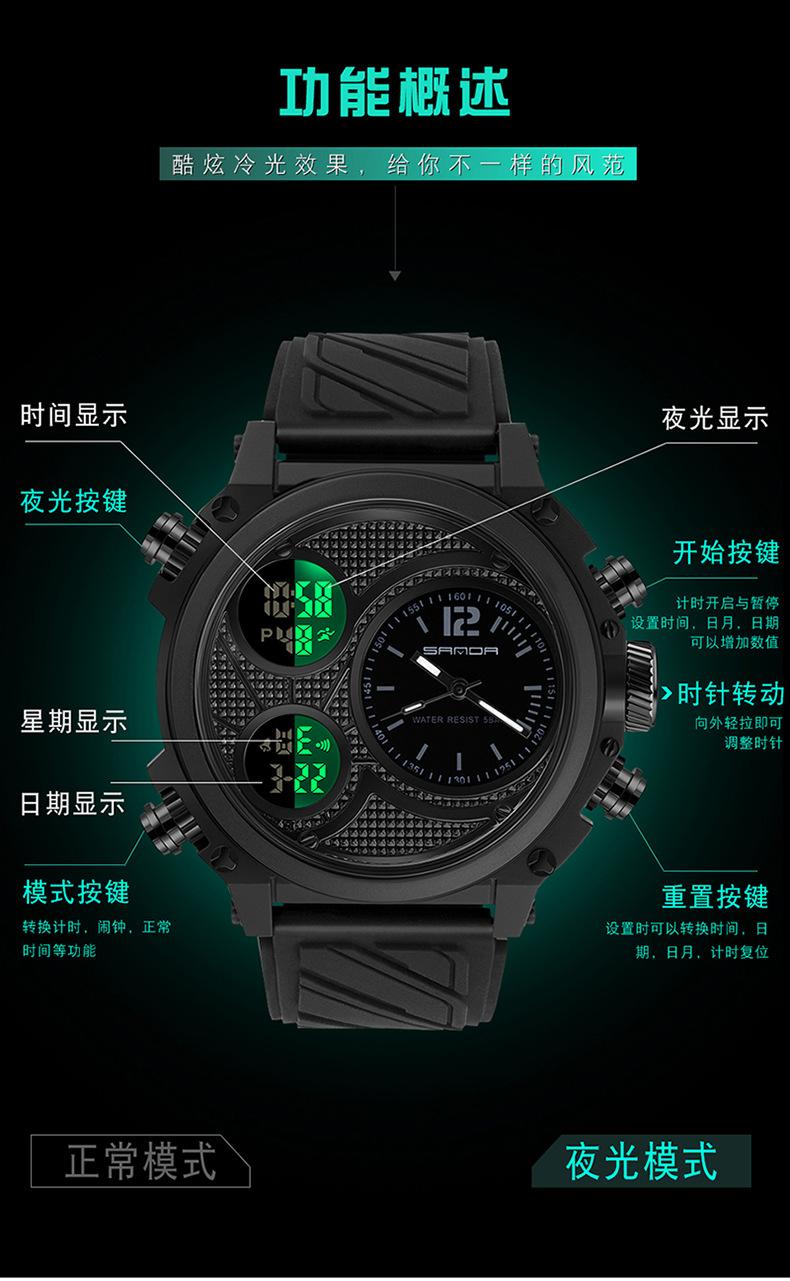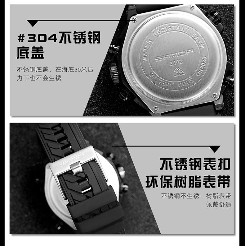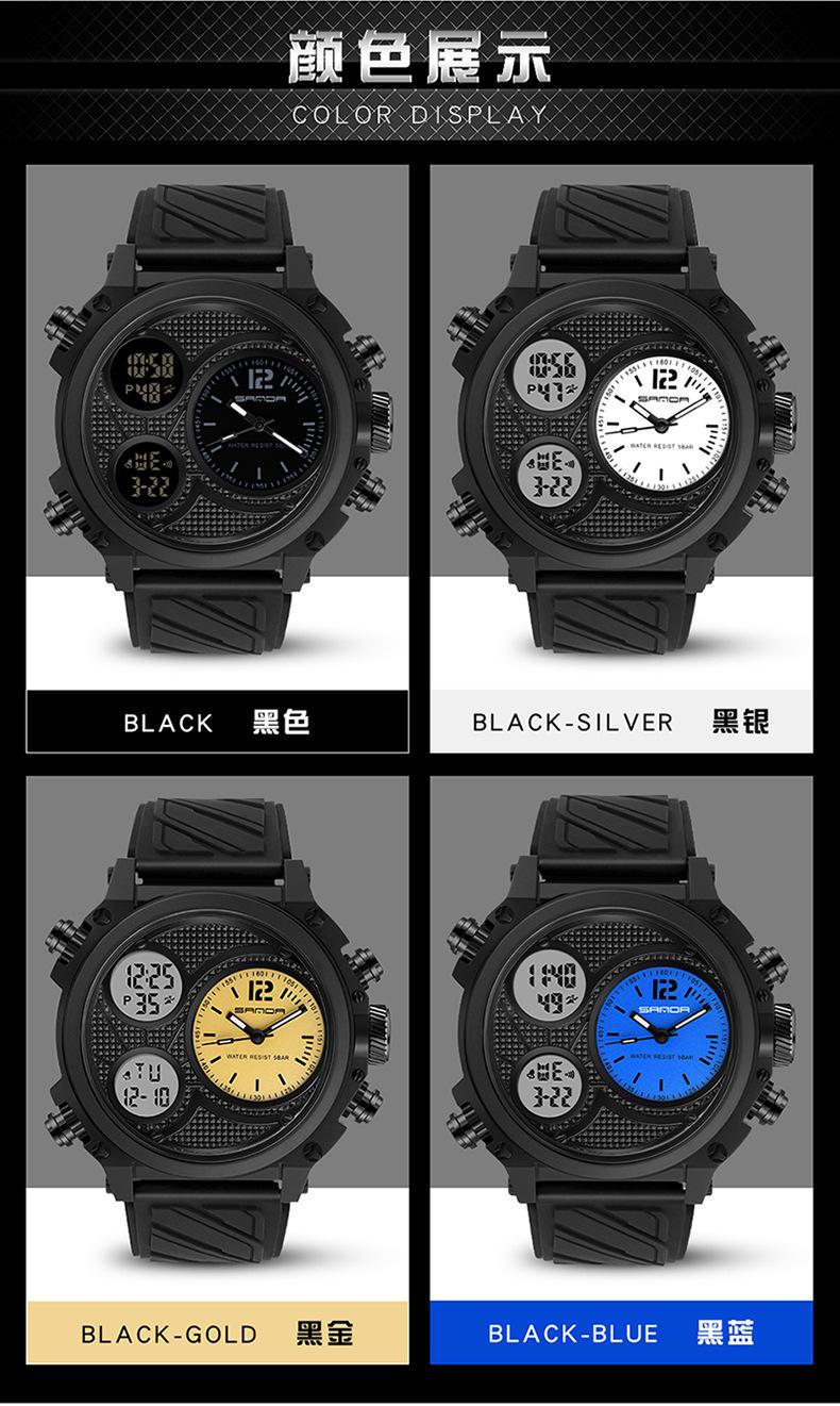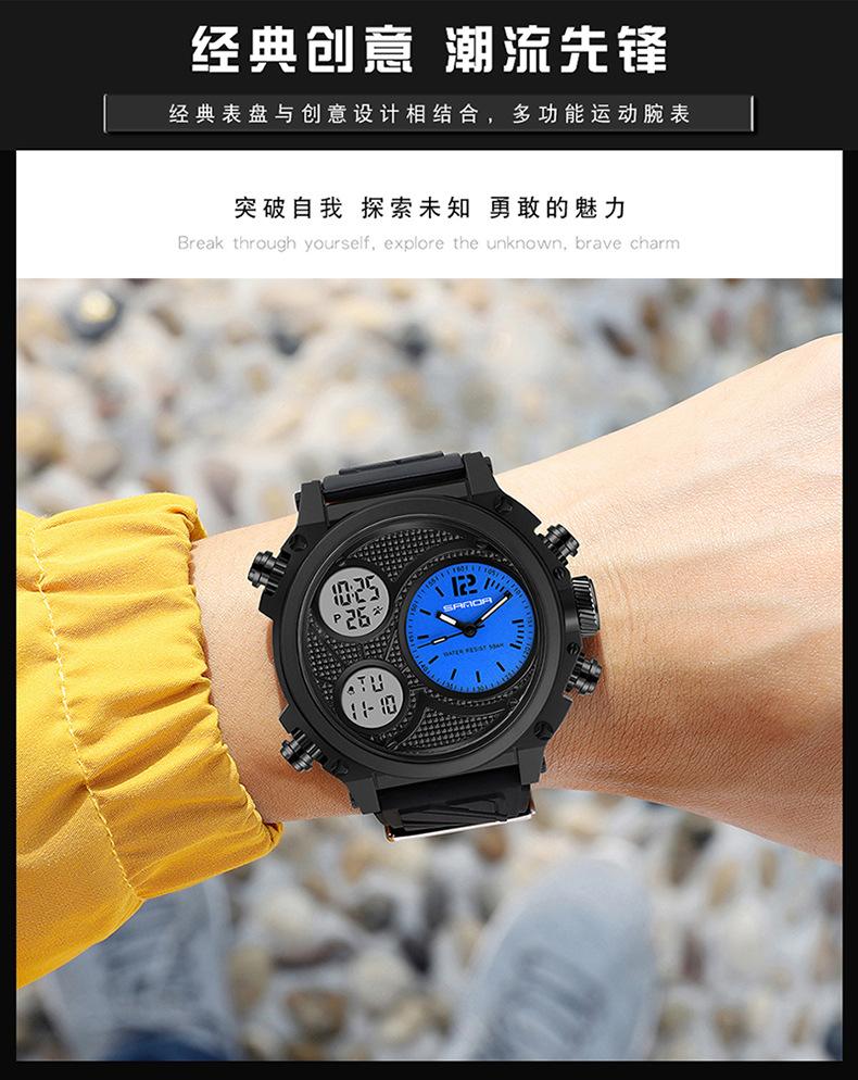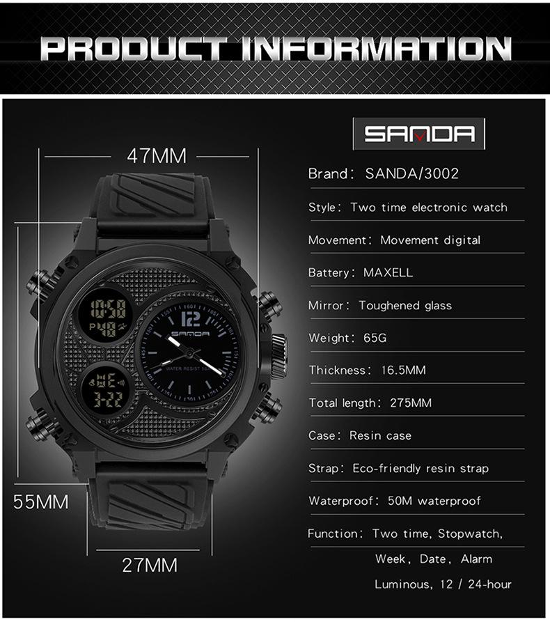 Reloj deportivo Sanda Sanda para hombre, estudiante, exterior, luminoso, resistente al agua, juvenil, con doble pantalla, electrónico, 3002
