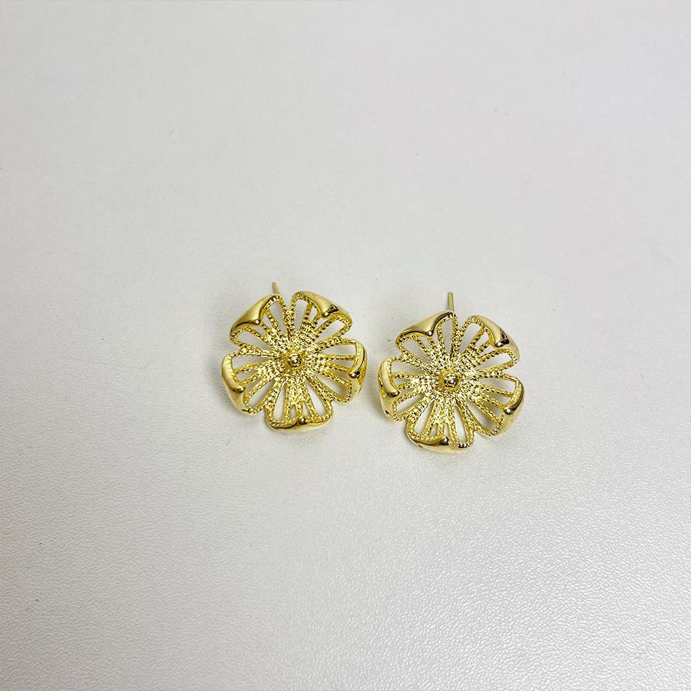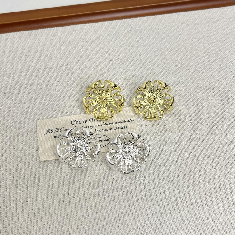 Compra Pendientes de flores de metal hueco retro de nicho, ligeros, de lujo, de alta gama, combinables con todo, pendientes sencillos de moda para mujer para desplazamientos diarios. al por mayor en Joom.pro