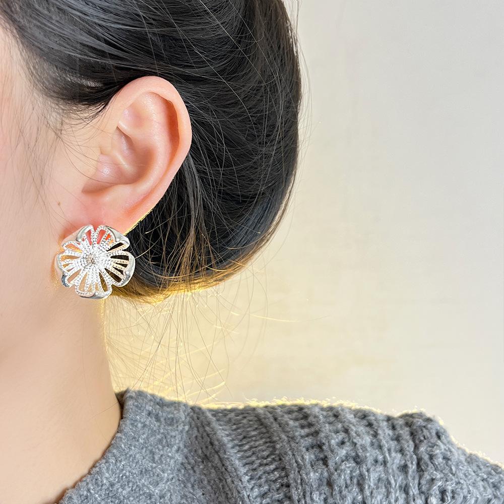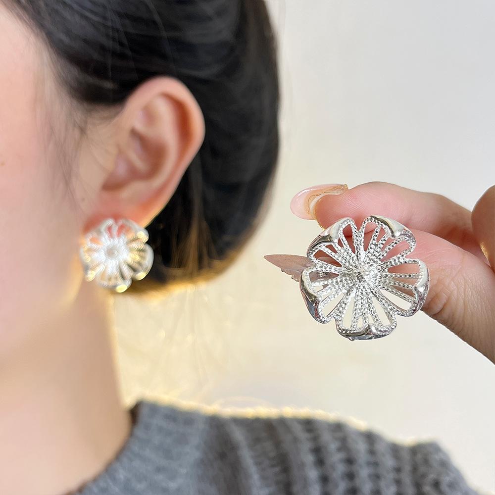 Pendientes de flores de metal hueco retro de nicho, ligeros, de lujo, de alta gama, combinables con todo, pendientes sencillos de moda para mujer para desplazamientos diarios.