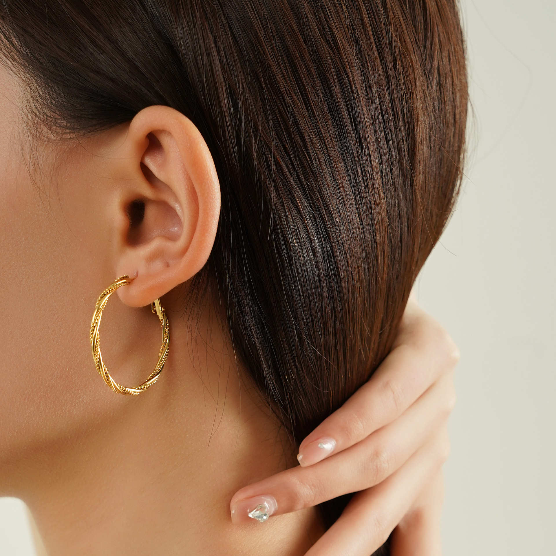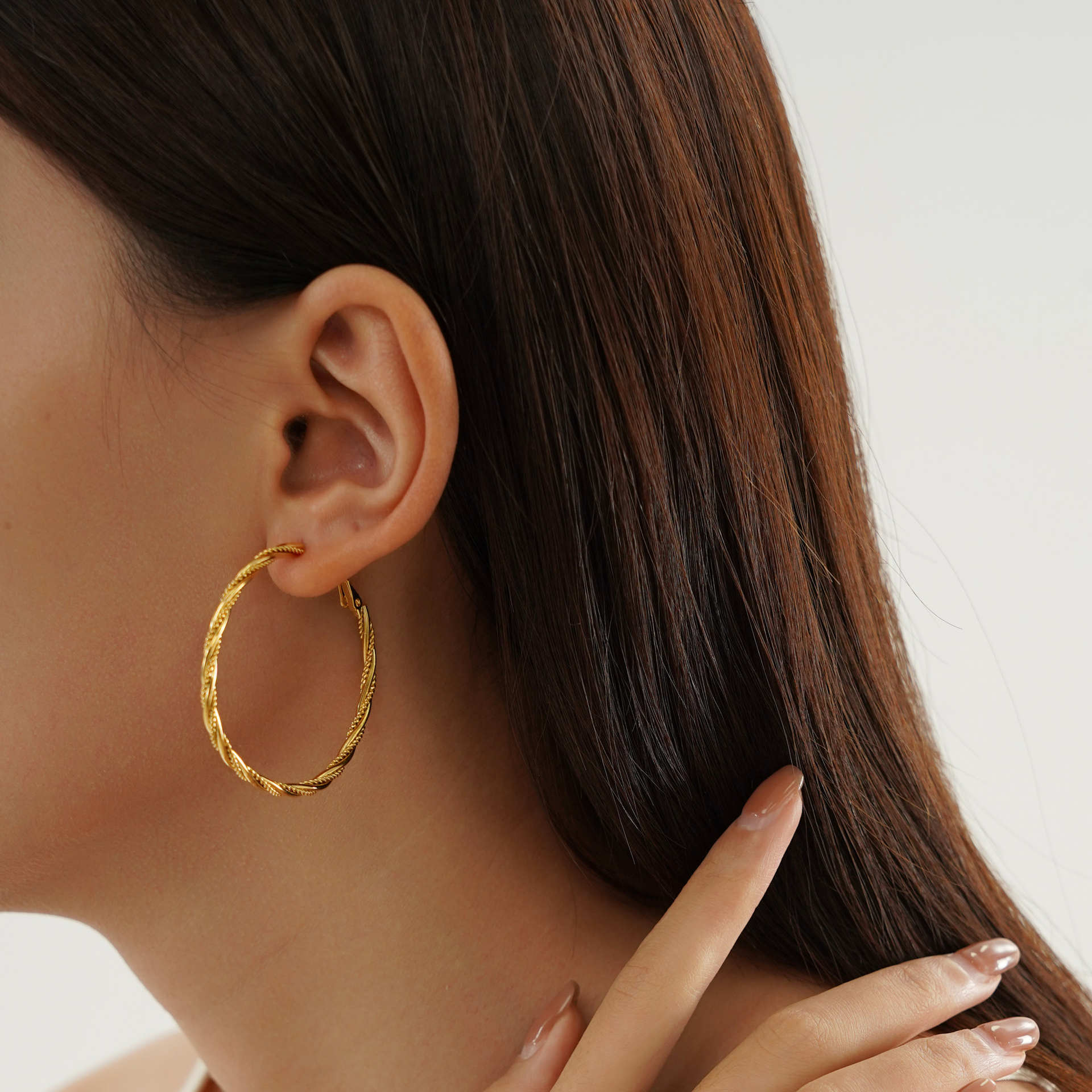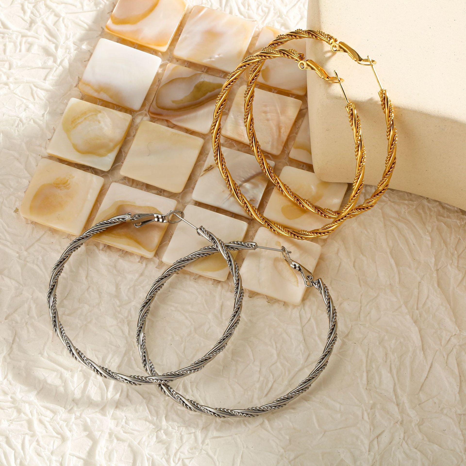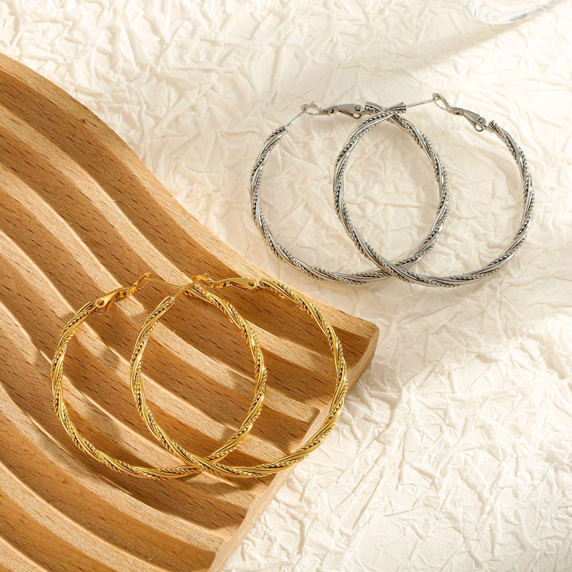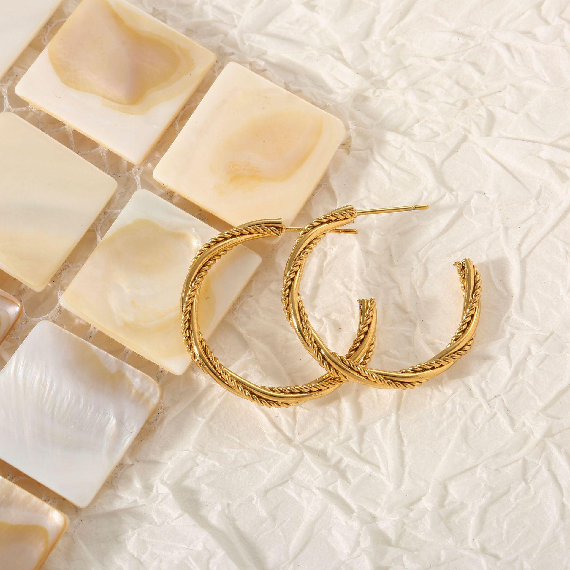 Pendientes de alambre trenzado de acero de titanio con forma de C, de acero inoxidable, con nicho en Europa y América, venta al por mayor, con geometría irregular de viento frío.