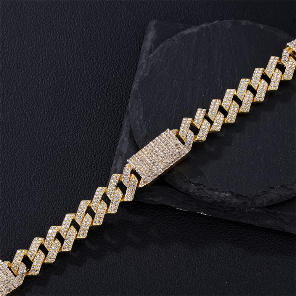 Collar cubano dorado de hip hop europeo y americano para hombre, con doble hilera de diamantes y circonitas de 15 mm, personalizado y moderno.
