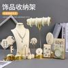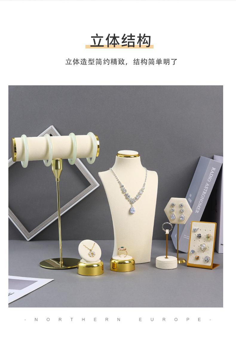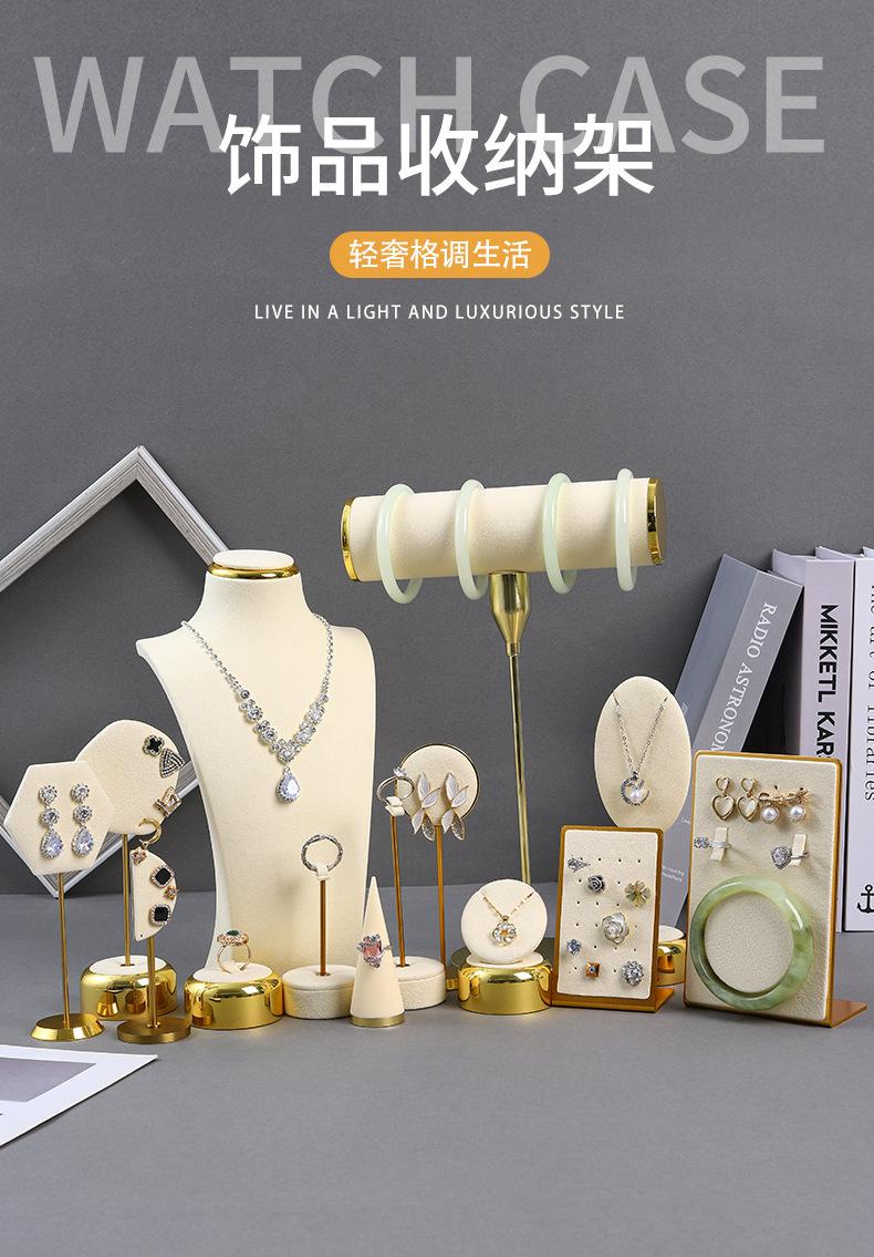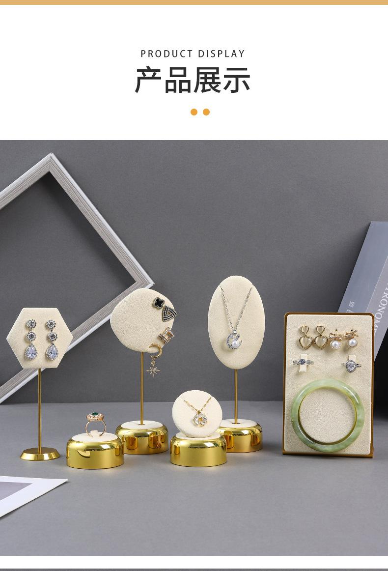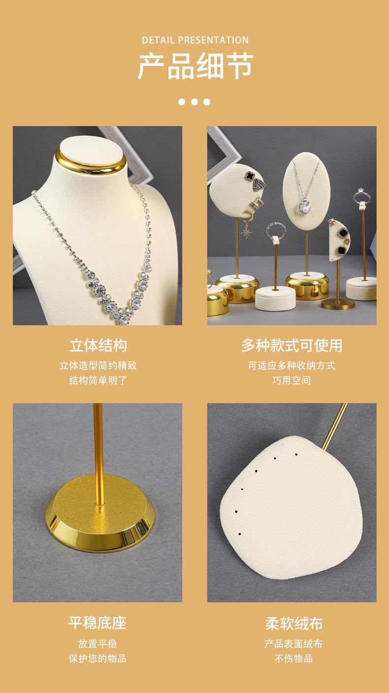 Estante de joyería a juego en stock, de metal blanco, de gamuza, para anillos, collares, pulseras, colgantes, accesorios de joyería.