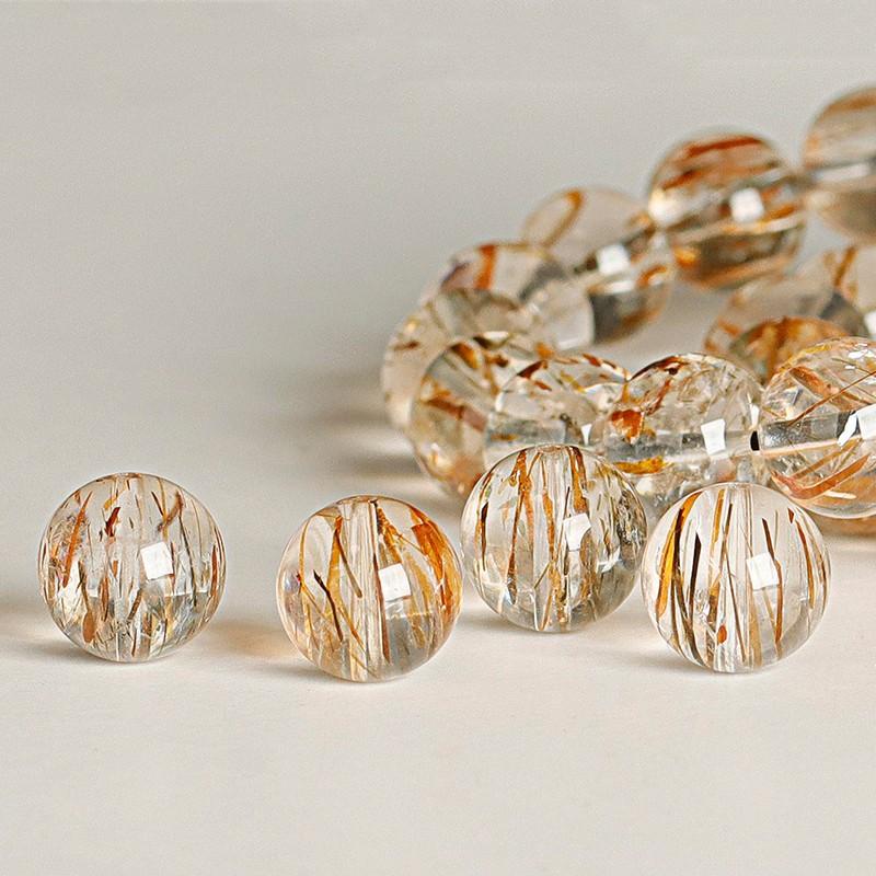 Cristal Cuentas Redondas Super Siete Oro Negro Natural Pulsera de Cristal para la Espalda de Mujer Cristal para el Cabello Cuentas Multi-Tesoro de Cristal Hechas a Mano DIY