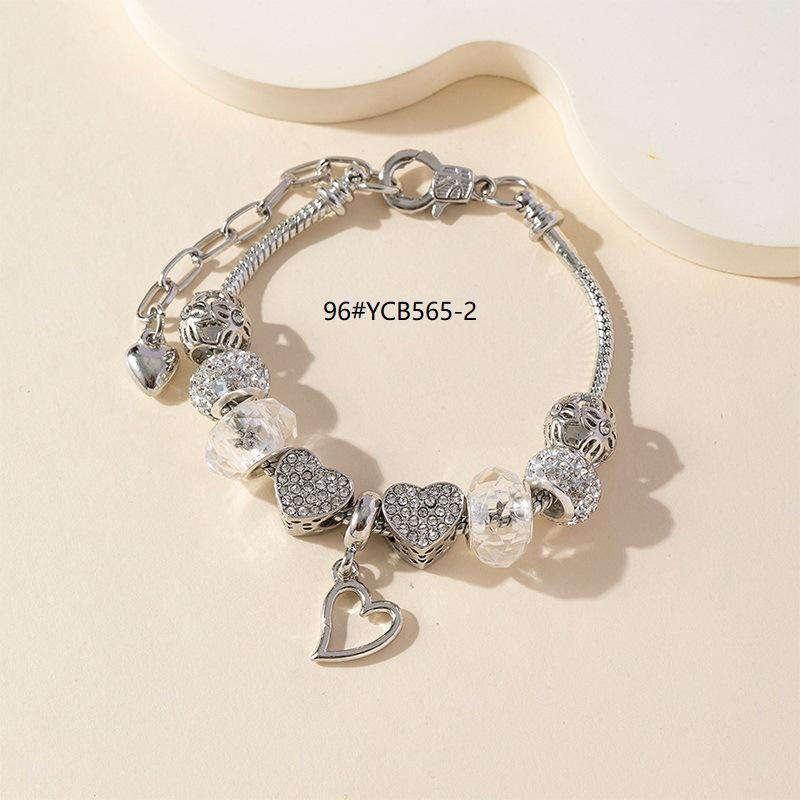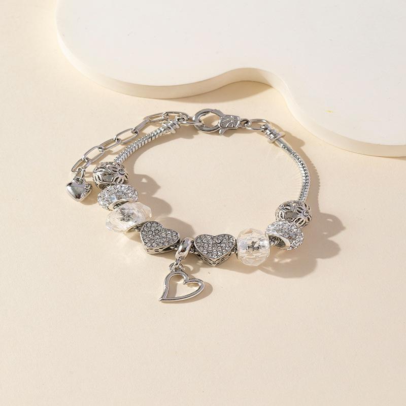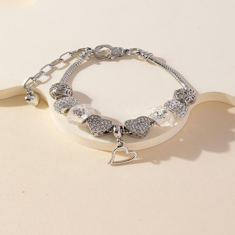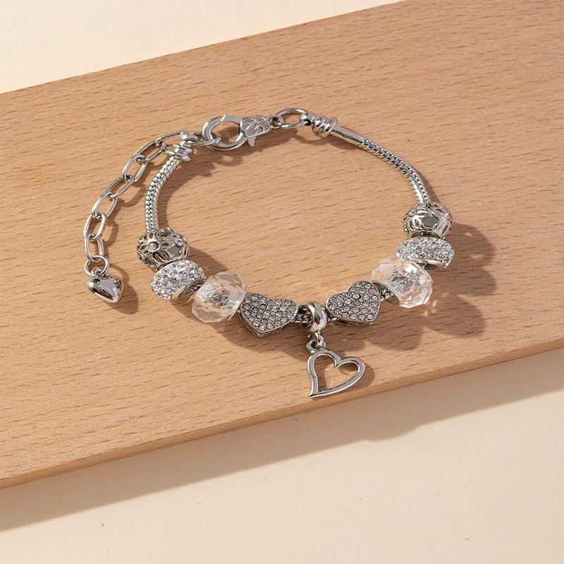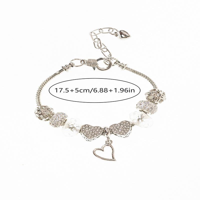 Pulsera Panjia Dora DIY con cuentas transfronterizas, colgante en forma de corazón con bolas de diamante, cuentas de cristal, pulsera de cobre con diamantes adhesivos de amor