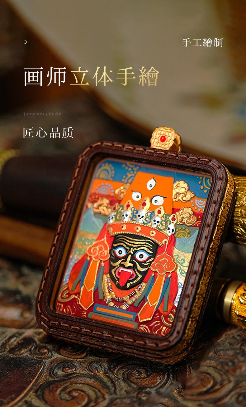 Thangka pintado a mano Colgante Huang Cai Gran Hombre del Cielo Negro Manjusri Madre Verde Farmacéutico Xizang Zakilam Quinto Maestro Limpia Thangka