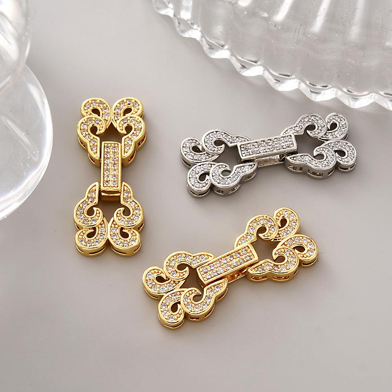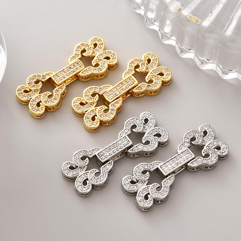 Cierre de Collar de Perlas con Baño de Cobre y Conservación de Color 18K, Cierre de Bobina Manual de Zirconio, Cierre de Conexión, Hebilla, Cadena de Lana, Accesorios DIY