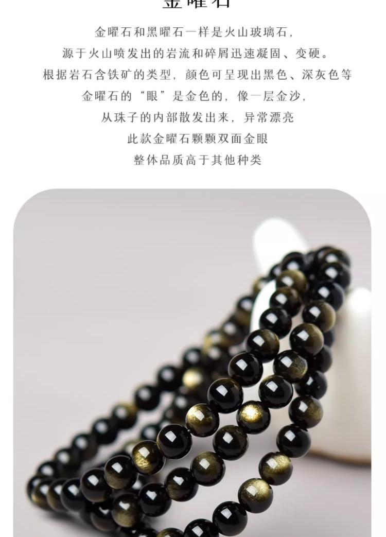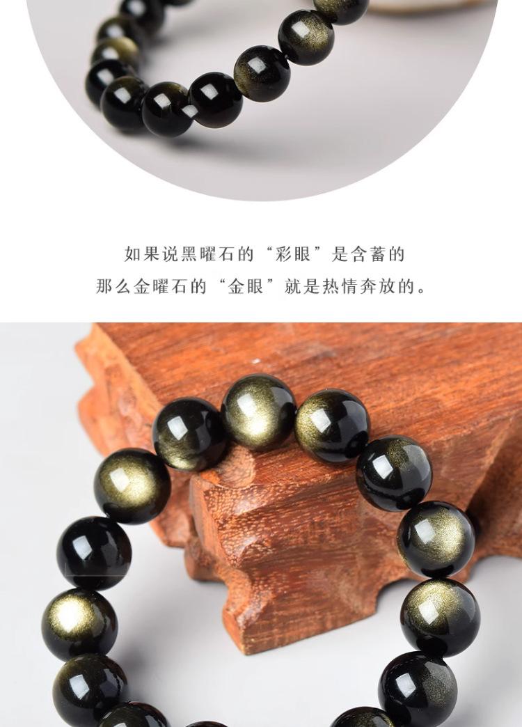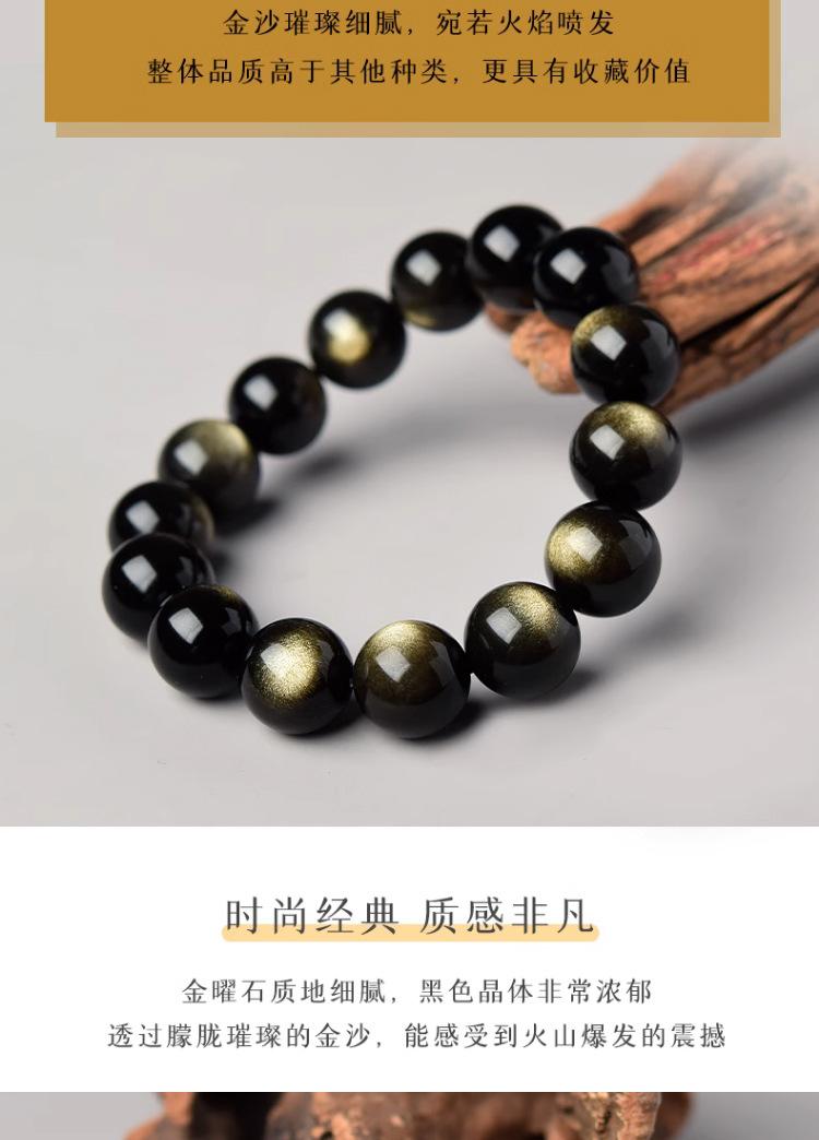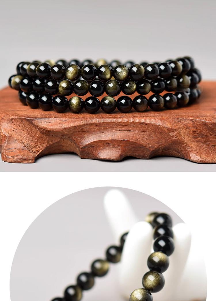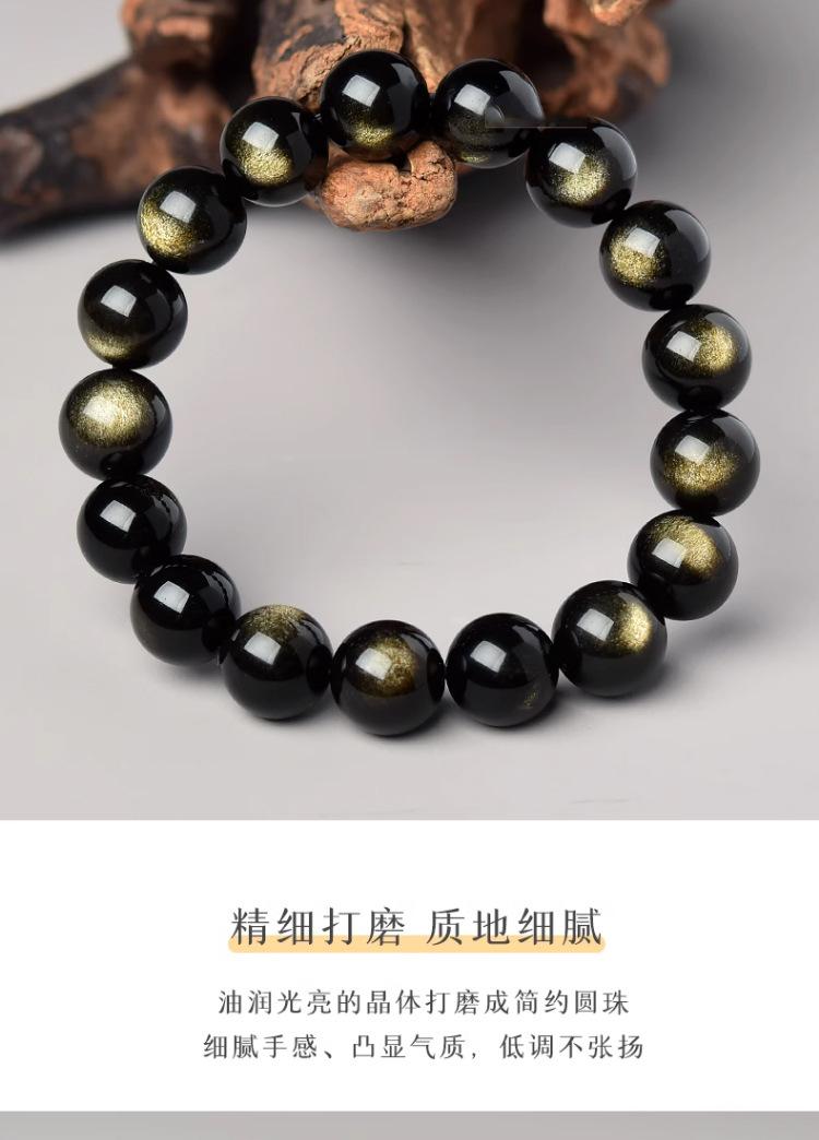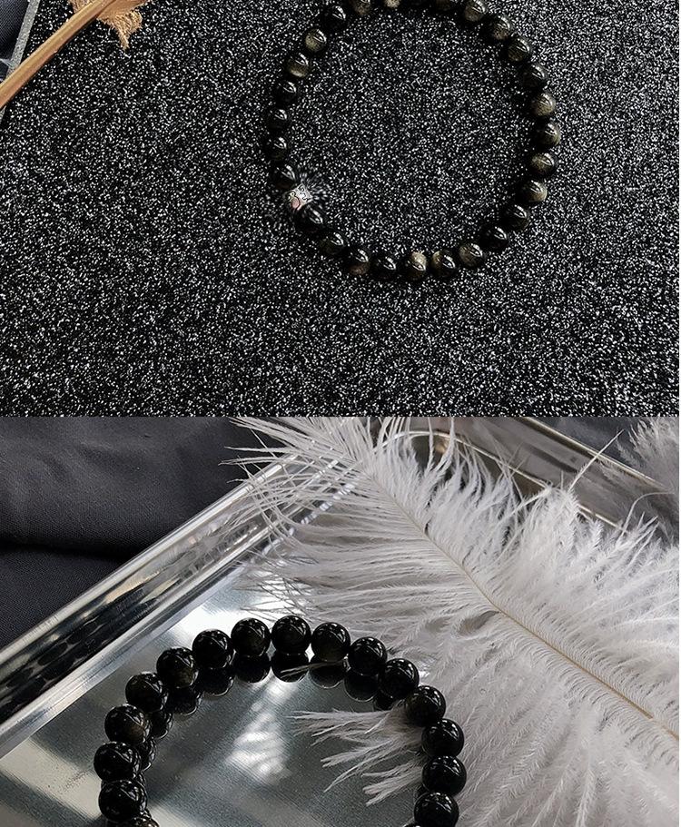Pulsera de Obsidiana Natural para Hombre y Mujer Pareja Pulsera de Obsidiana Dorada Pulsera de Cristal Negro 6/8mm