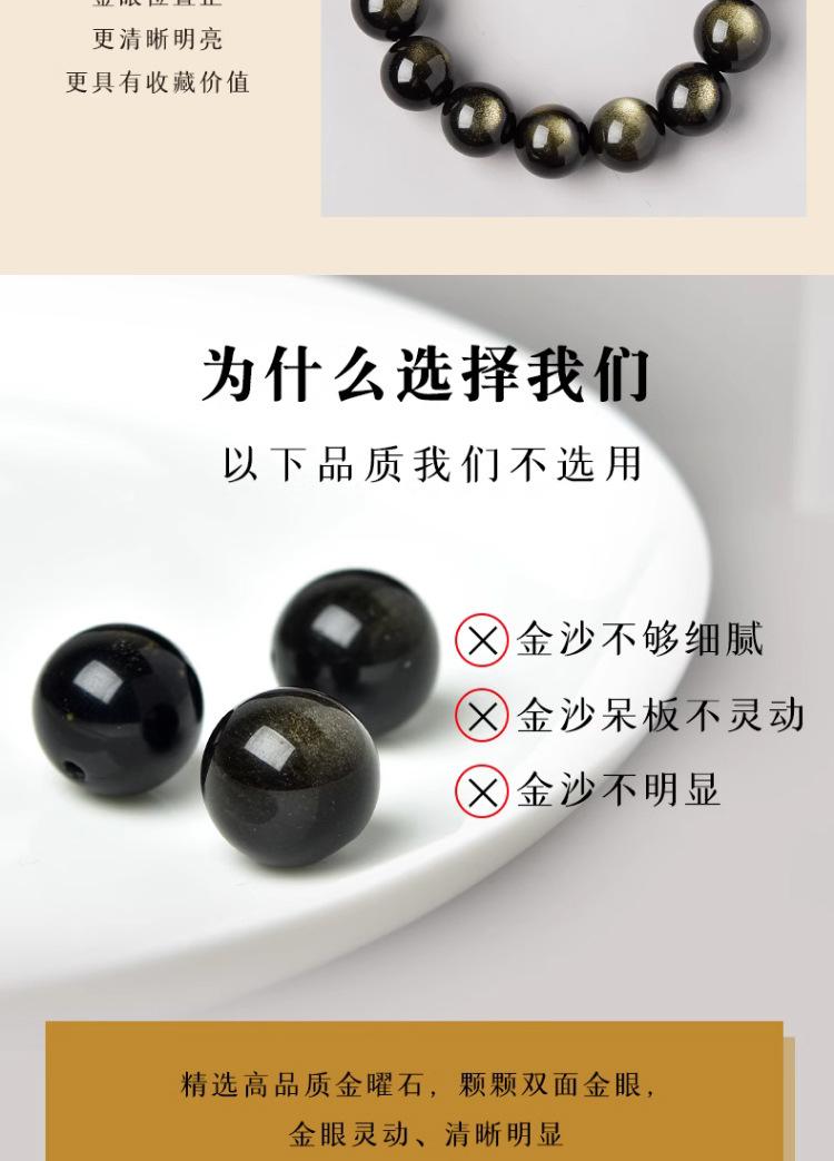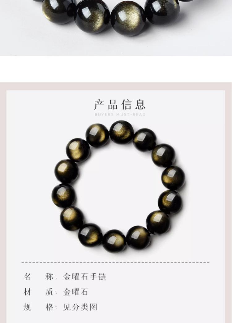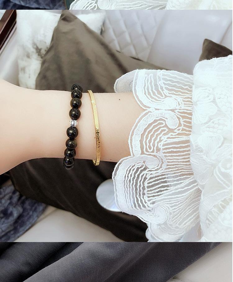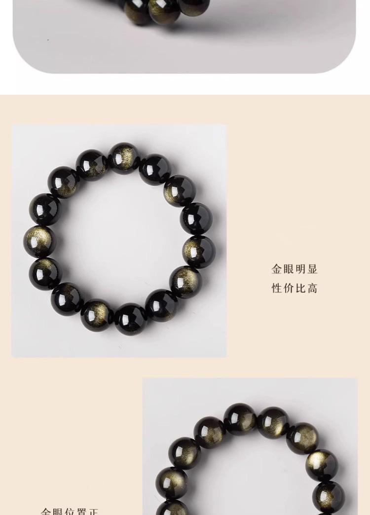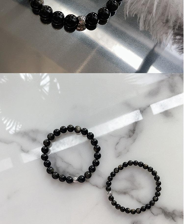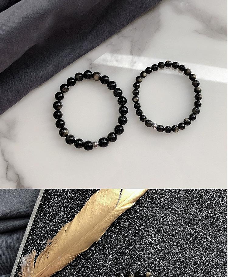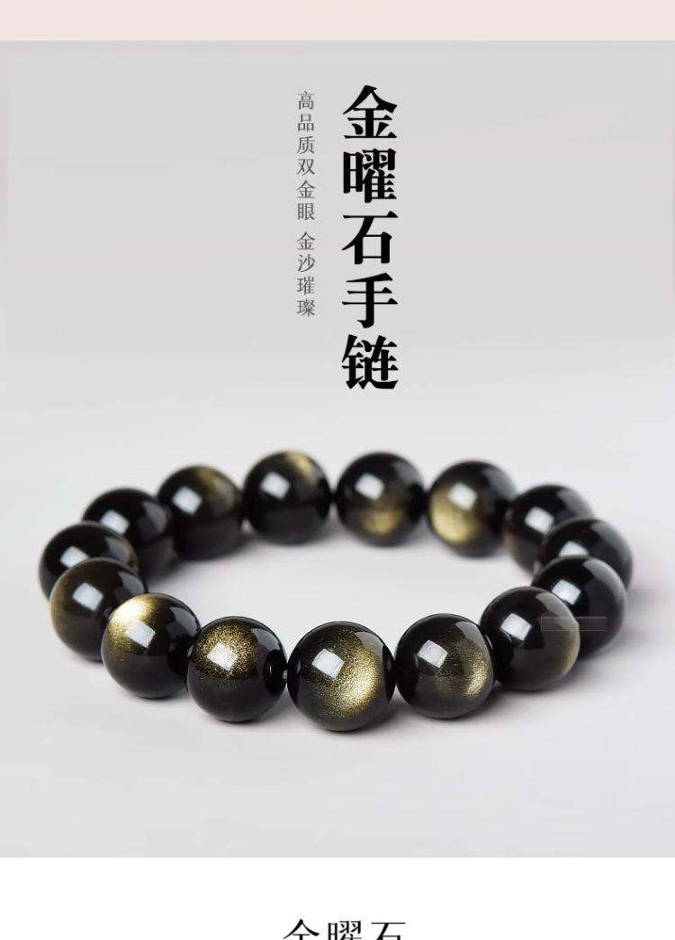 Pulsera de Obsidiana Natural para Hombre y Mujer Pareja Pulsera de Obsidiana Dorada Pulsera de Cristal Negro 6/8mm