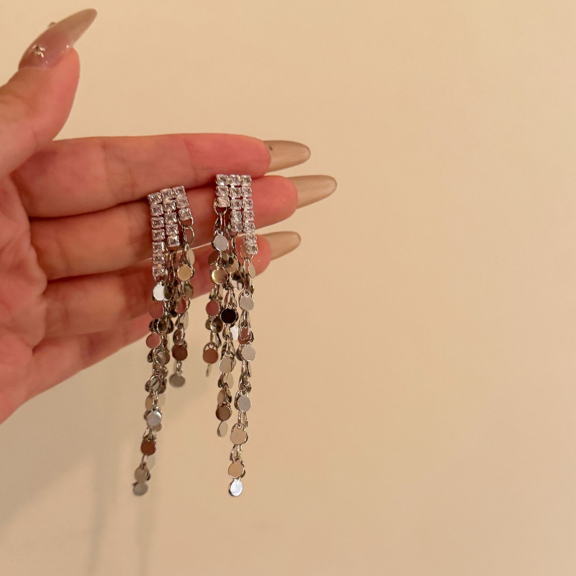Pendientes de borla redonda de circonita con aguja de plata, pendientes de temperamento exagerado de moda europea y americana, pendientes ligeros de lujo de alta gama para mujer al por mayor