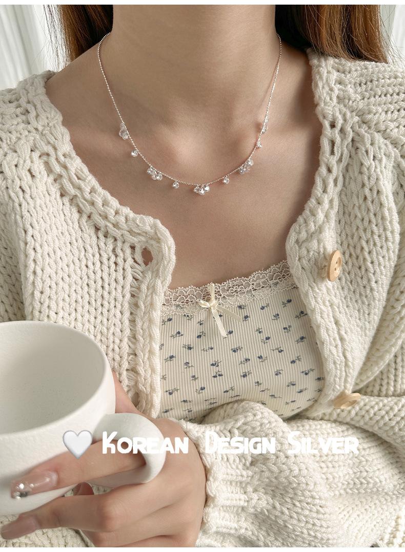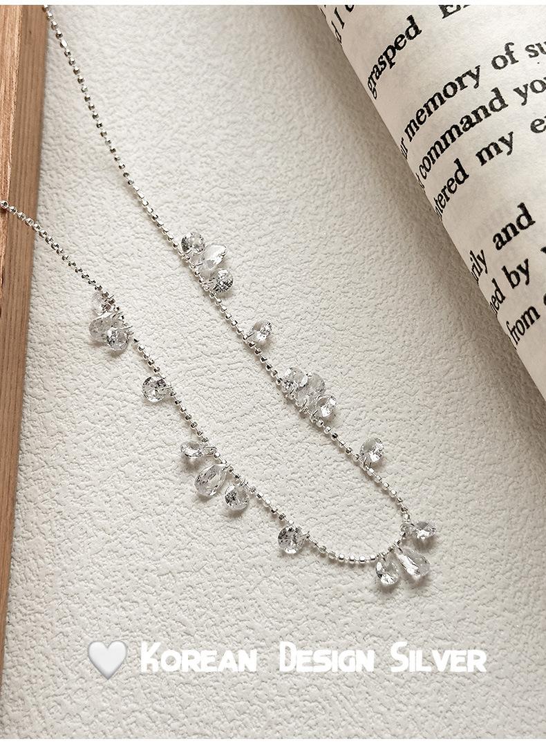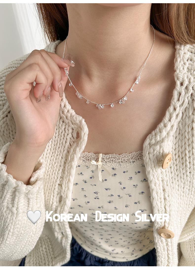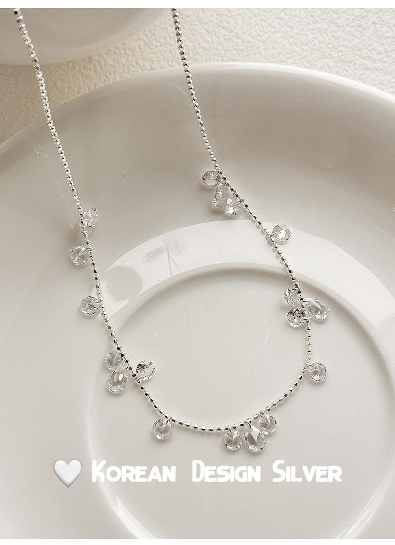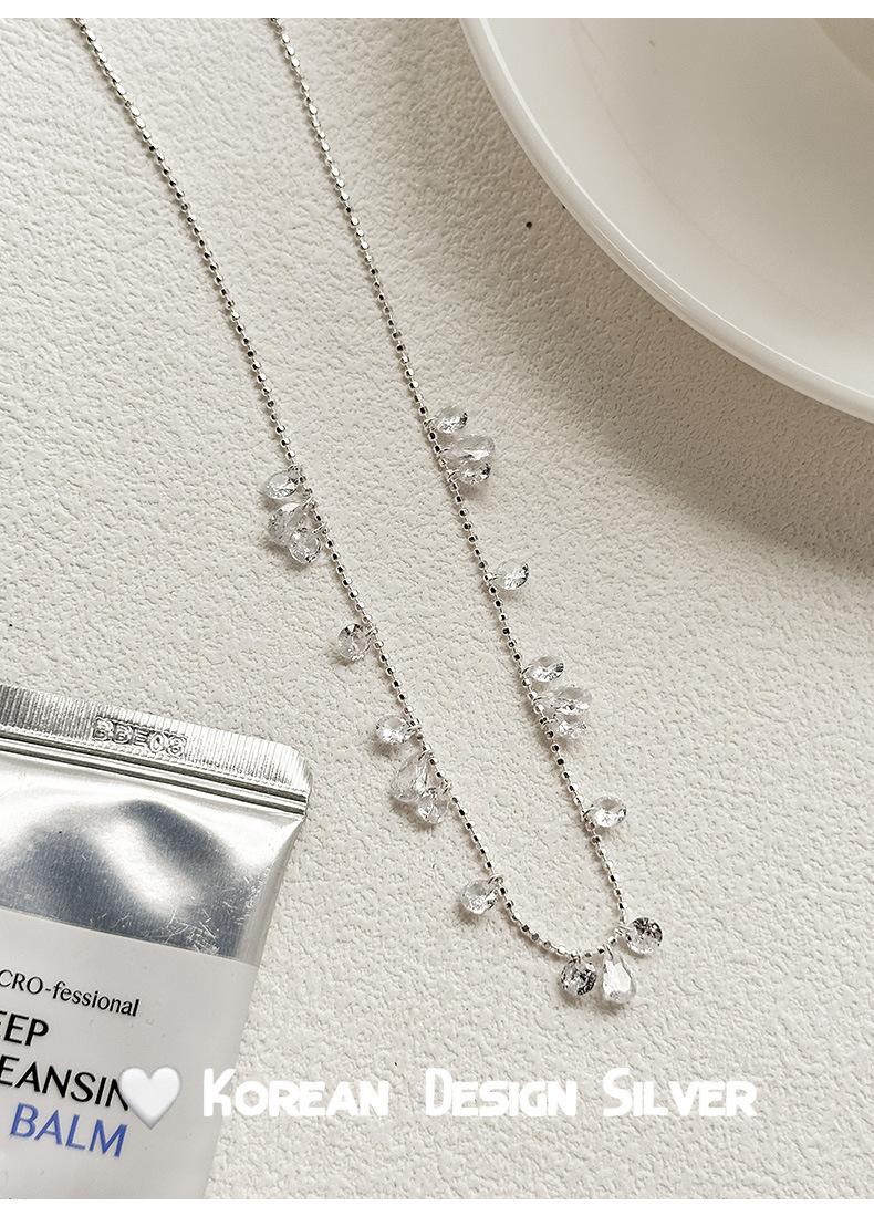 Collar con colgante de gota de agua y circonita redonda en plata de ley S925 para mujer, diseño elegante y sencillo, con cuentas redondas y cadena para clavícula.