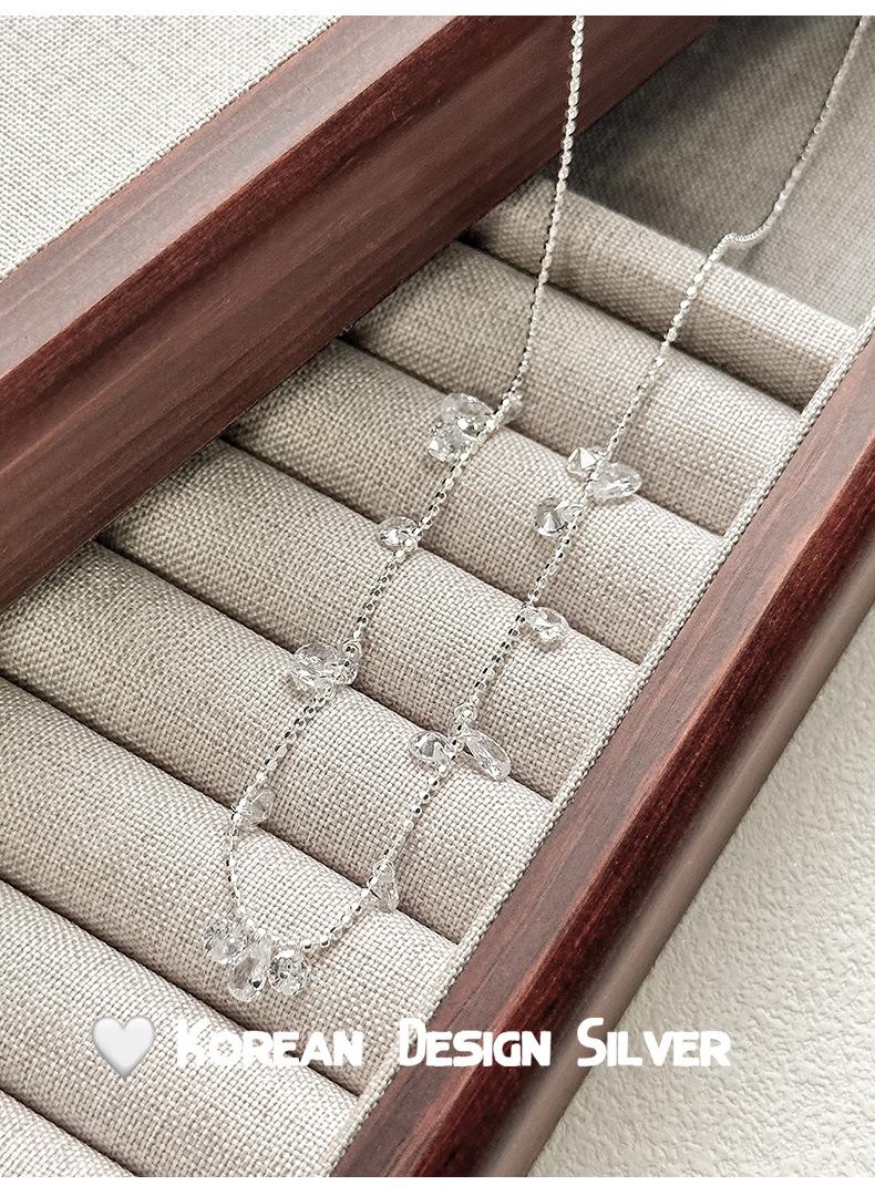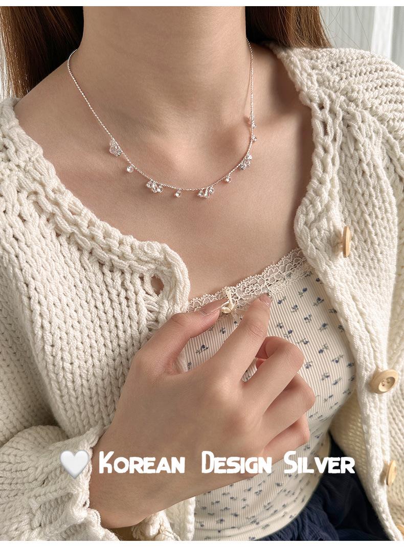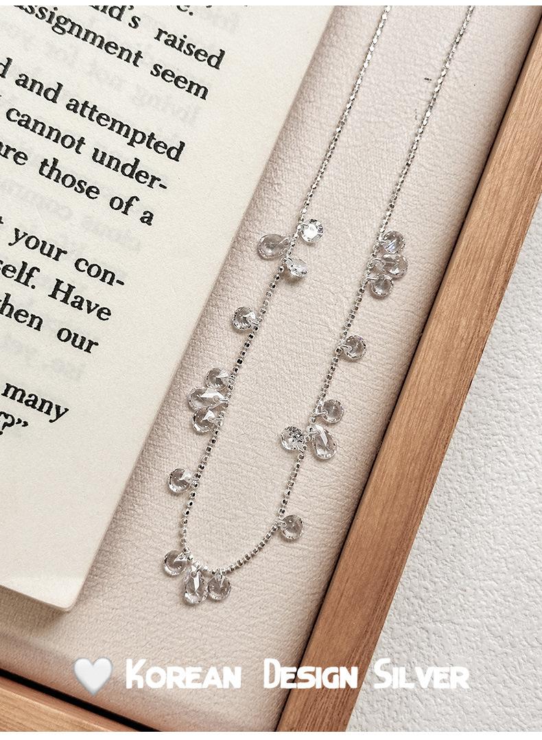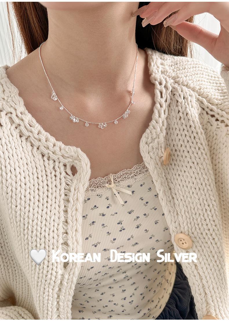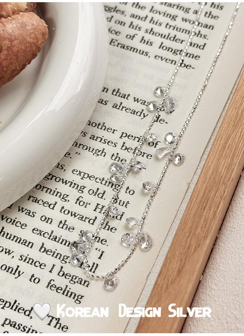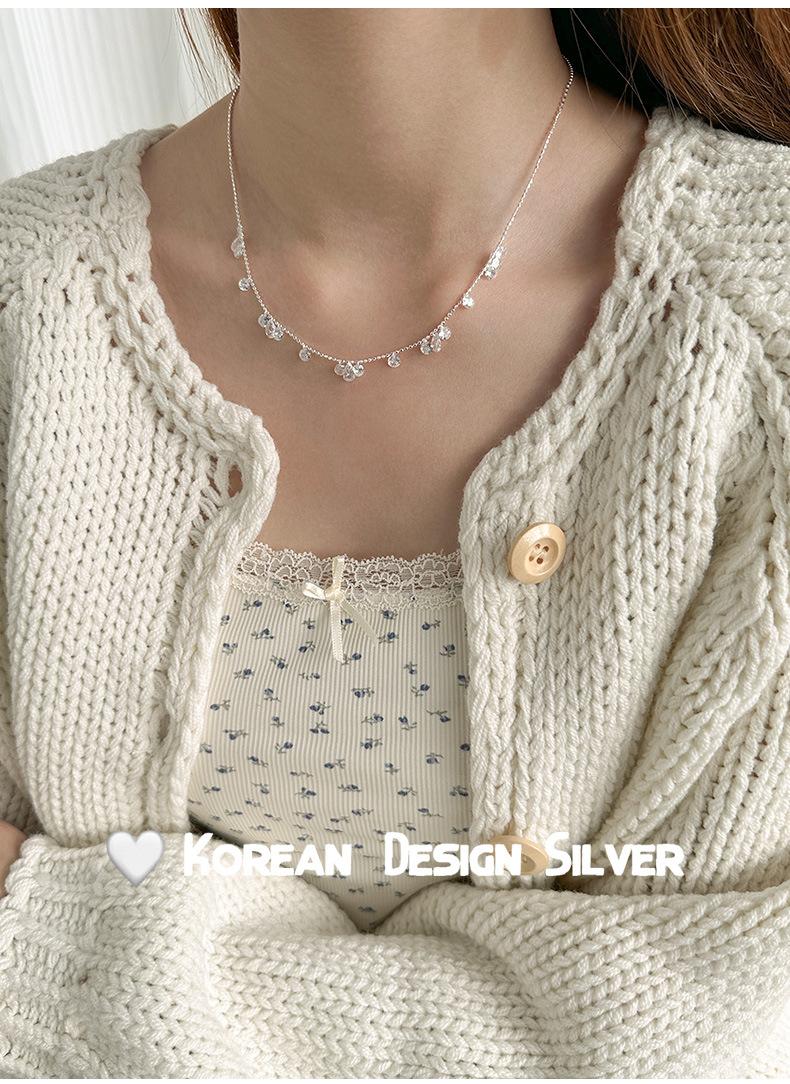 Collar con colgante de gota de agua y circonita redonda en plata de ley S925 para mujer, diseño elegante y sencillo, con cuentas redondas y cadena para clavícula.