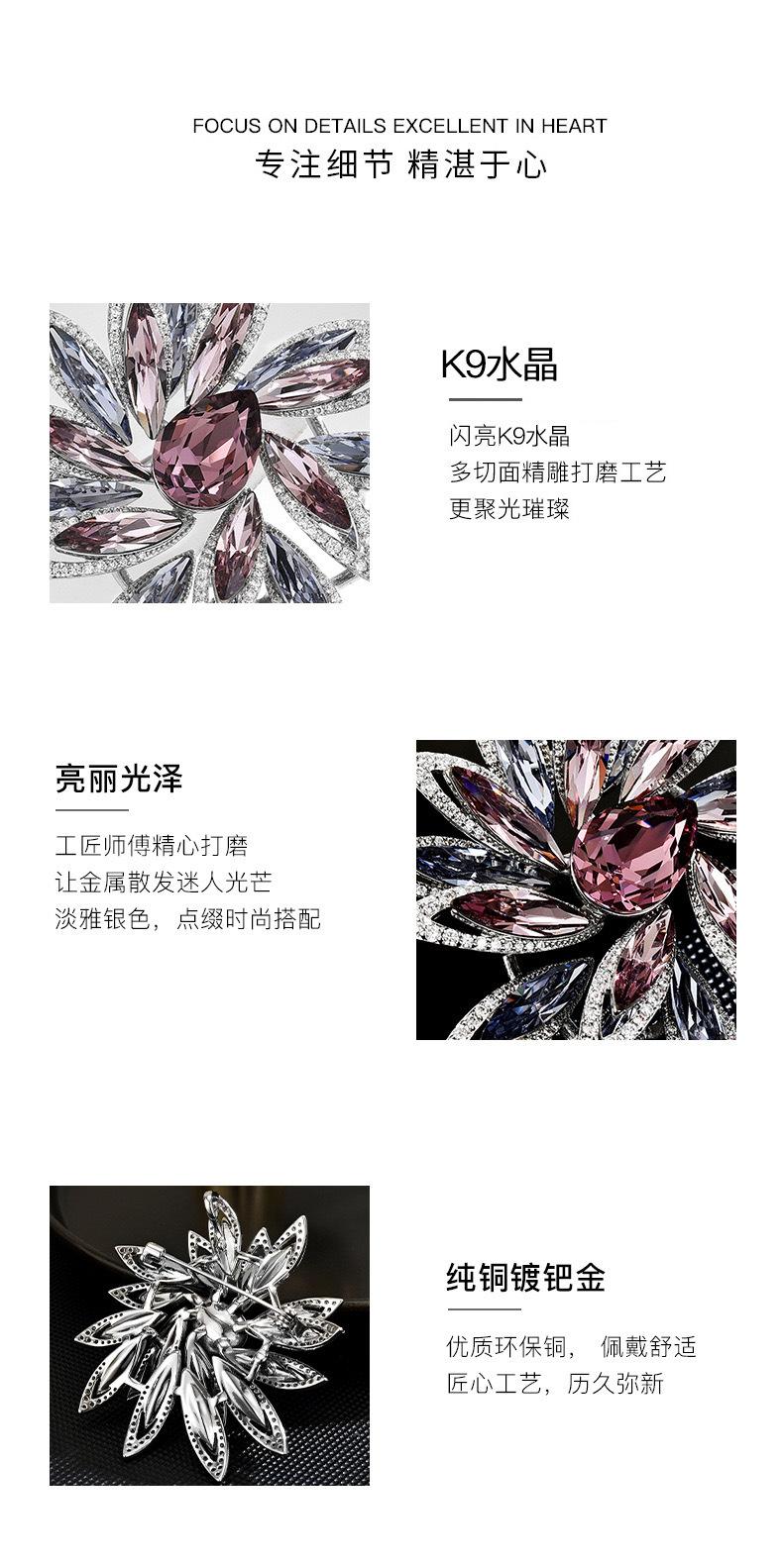 Broche de Cristal de Diseño de Alta Gama a la Moda Broche de Girasol Retro de Lujo Cristal Degradado Rojo y Azul Accesorios para Abrigo