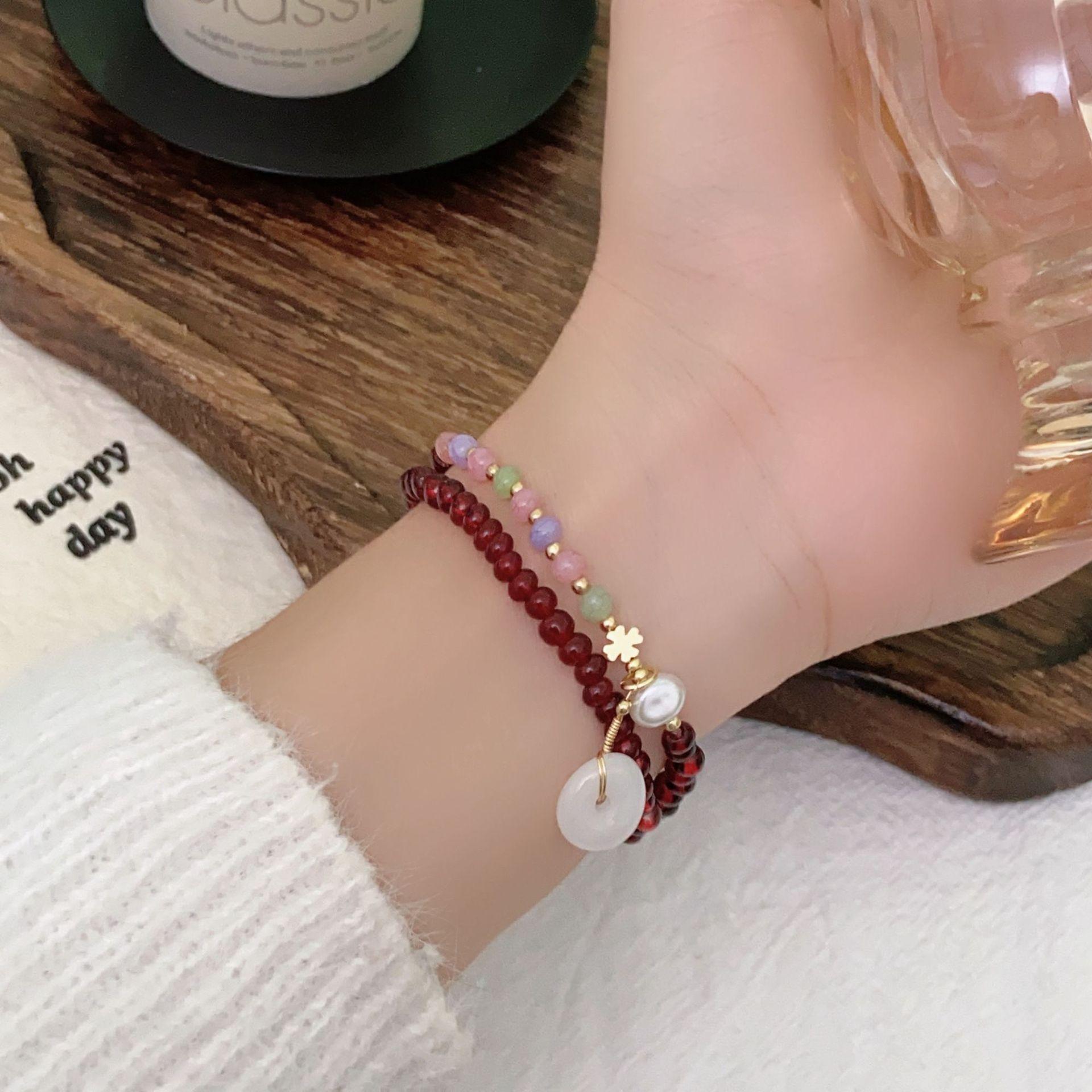 Nueva pulsera china retro con cuentas de granate, diseño de nicho, pulsera de piedra natural de imitación, accesorios de alta gama para mujer.