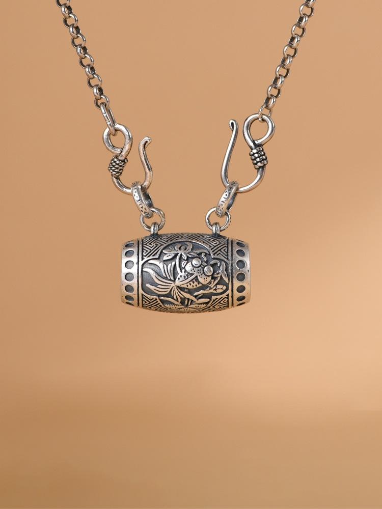 Rey del Ciervo Dorado Pie Plata Antigua Pasado de Moda Pez Dorado Ceja Ceja Moneda Antigua Candado de Plata Juego de Anillos Binaurales Colgante de Cadena Adorno para Mujer
