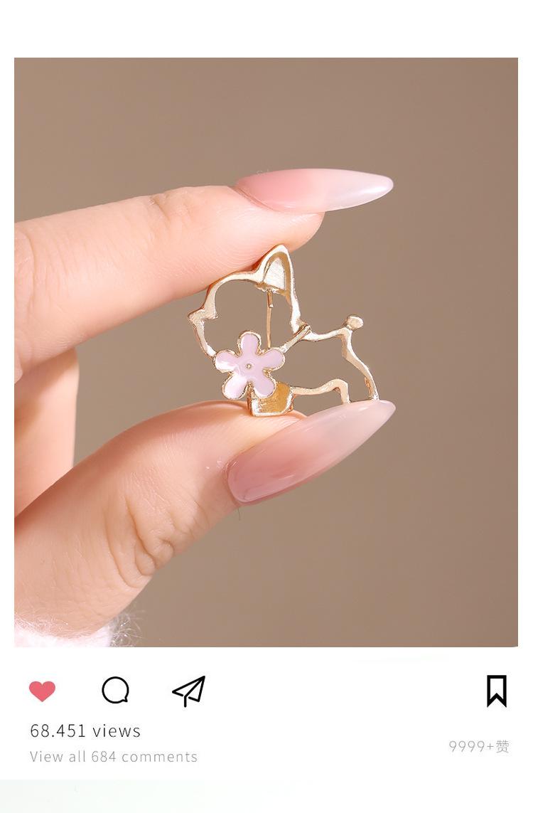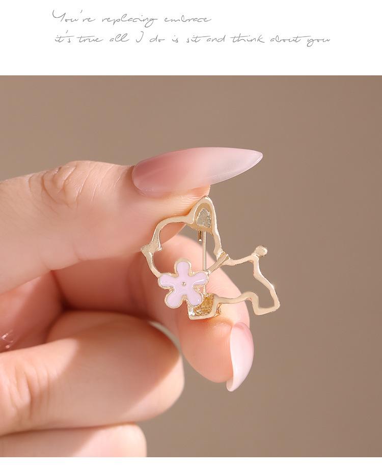 Broche de flor de cerezo dorada con diseño de cachorro antideslumbrante para mujer, accesorio de alta gama para traje de mujer, pequeños accesorios.