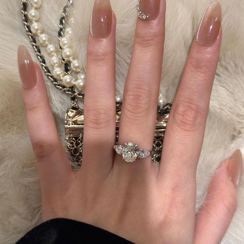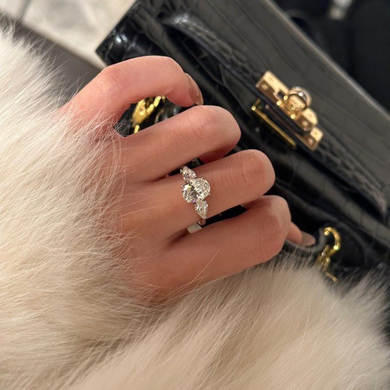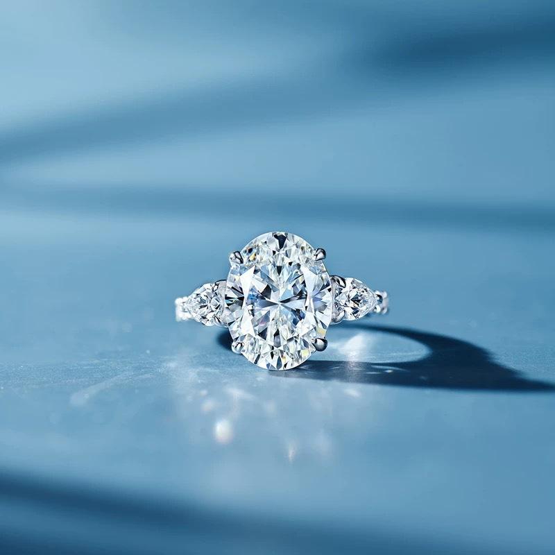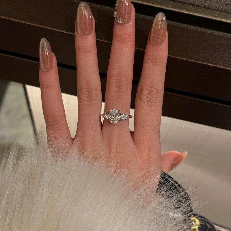 Compra Anillo ovalado de tres piedras crudas con forma de huevo de paloma para mujer, ligero, de lujo, de alta gama, para bodas, propuesta de matrimonio, anillo de diamantes de imitación. al por mayor en Joom.pro